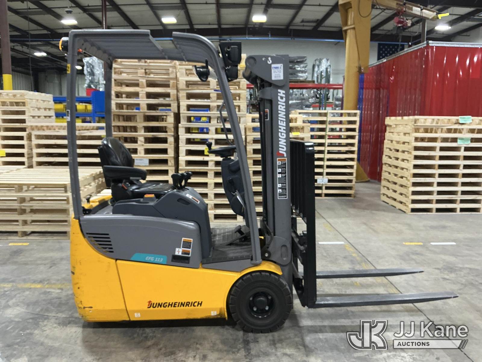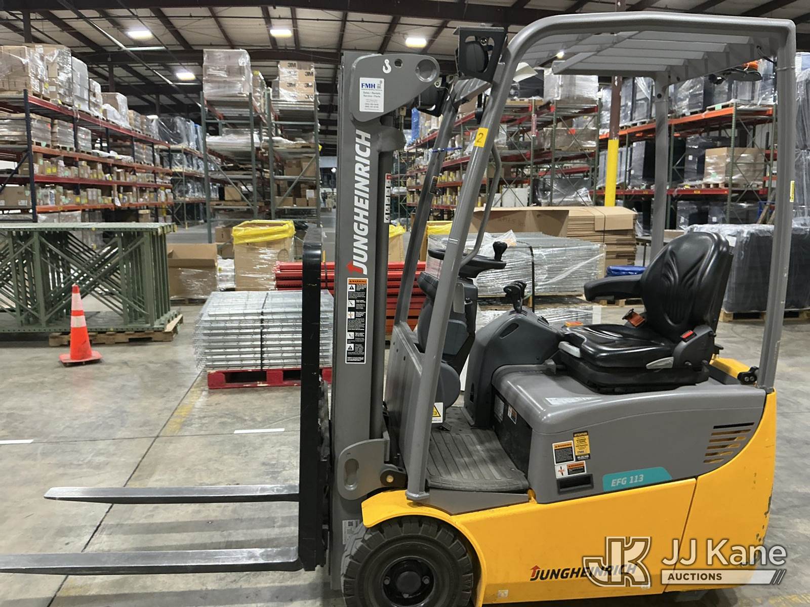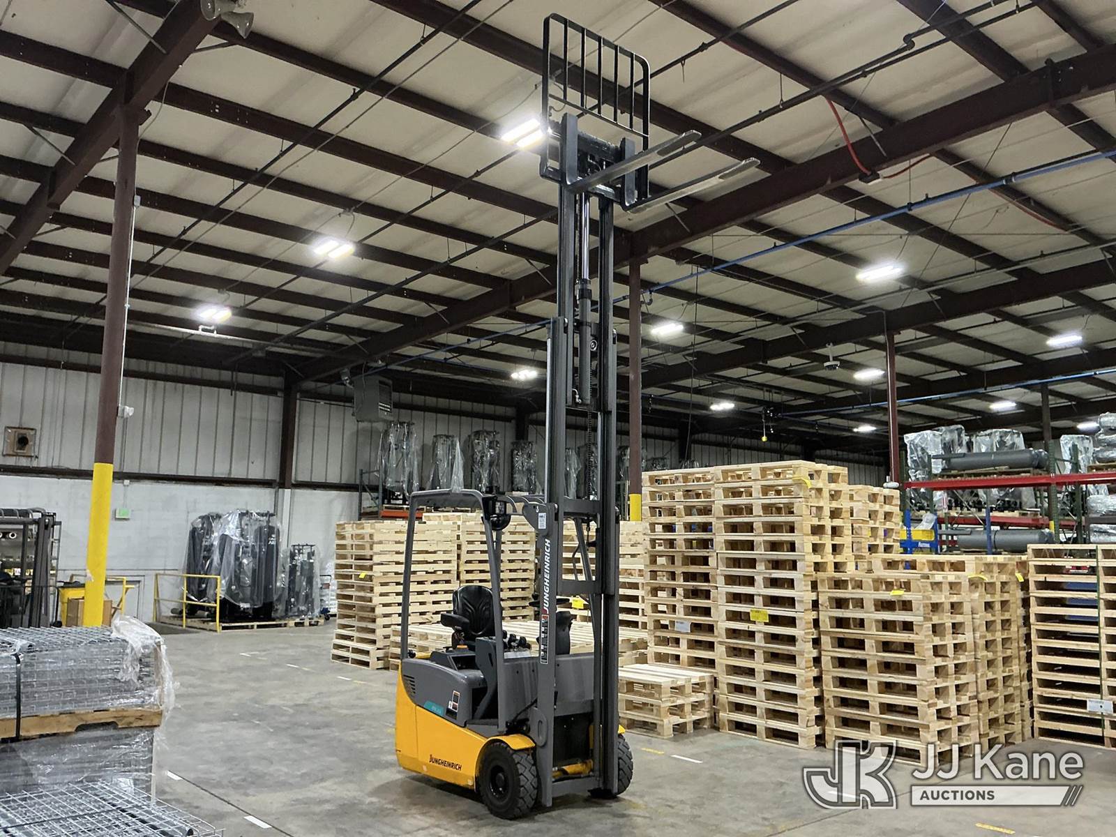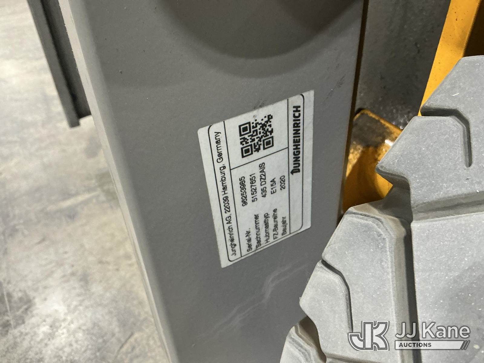 2020 Jungheinrich EFG113 Solid Tired Forklift, s/n FN621640, electric, with 2640lb Lift Capacity, Two Tier Mast, ROPS, charger included, (Runs, Moves & Operates) (Hyd Leak From Underneath) (Reads 1,185 hours) NOTE: This unit is being sold AS IS/WHERE IS via Timed Auction and is located in Broomfield, CO. (Buyer is responsible for removal. Assistance by consignor or JJ Kane Auctions is not assured.)