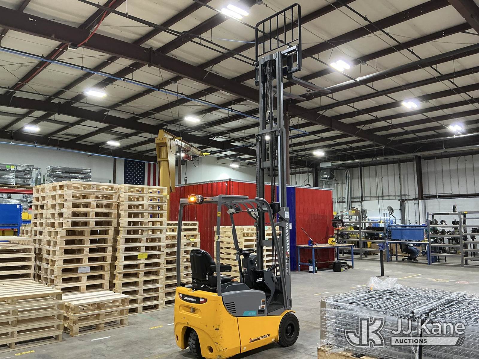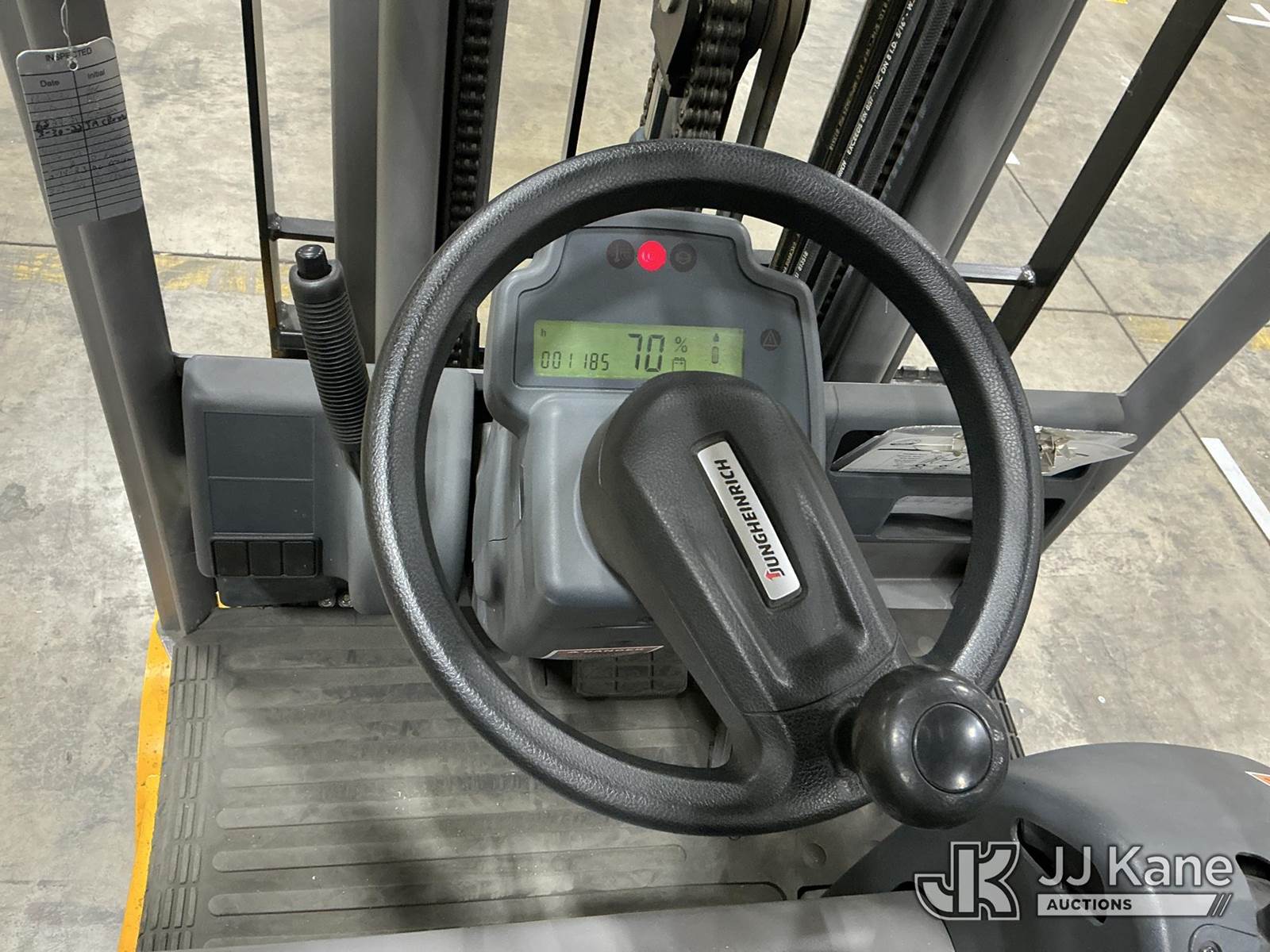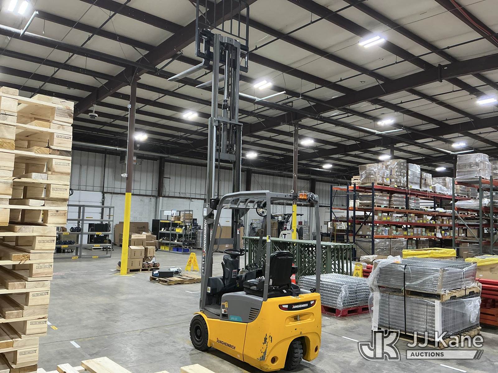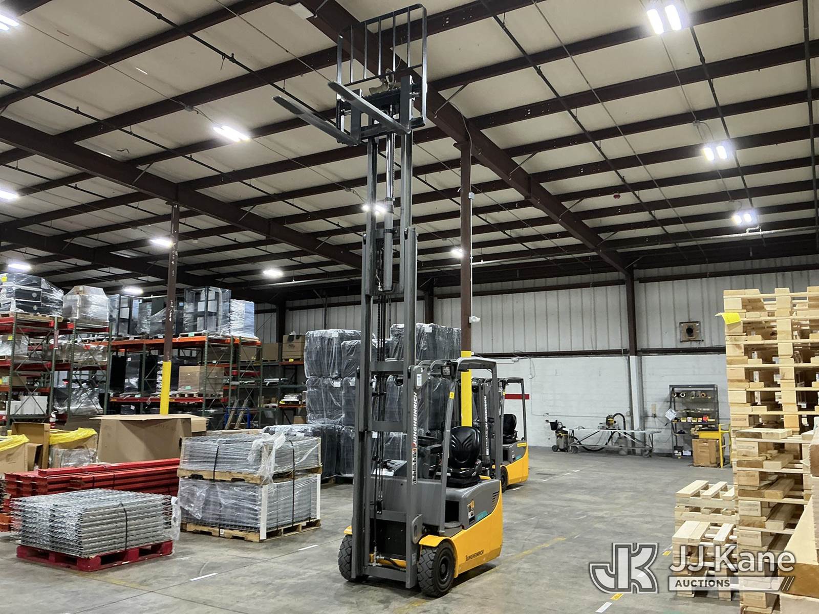 2020 Jungheinrich EFG113 Solid Tired Forklift, s/n FN621640, electric, with 2640lb Lift Capacity, Two Tier Mast, ROPS, charger included, (Runs, Moves & Operates) (Hyd Leak From Underneath) (Reads 1,185 hours) NOTE: This unit is being sold AS IS/WHERE IS via Timed Auction and is located in Broomfield, CO. (Buyer is responsible for removal. Assistance by consignor or JJ Kane Auctions is not assured.)