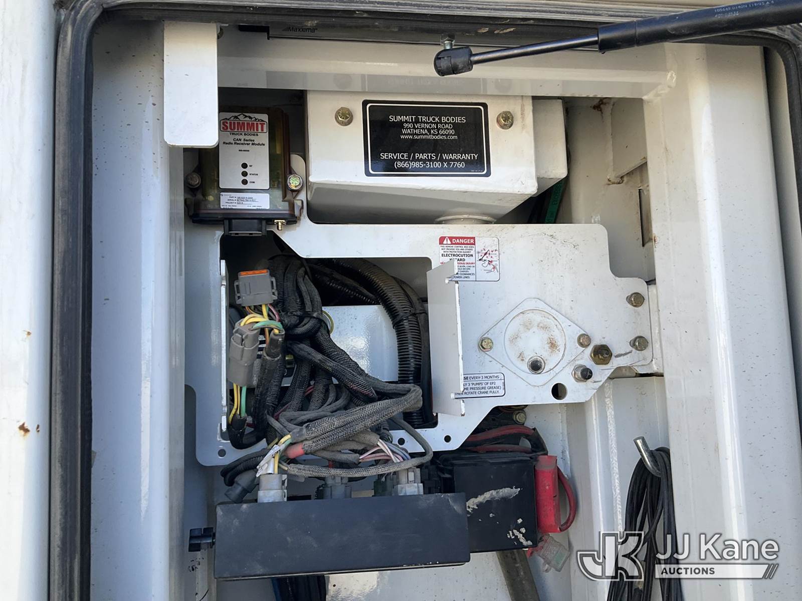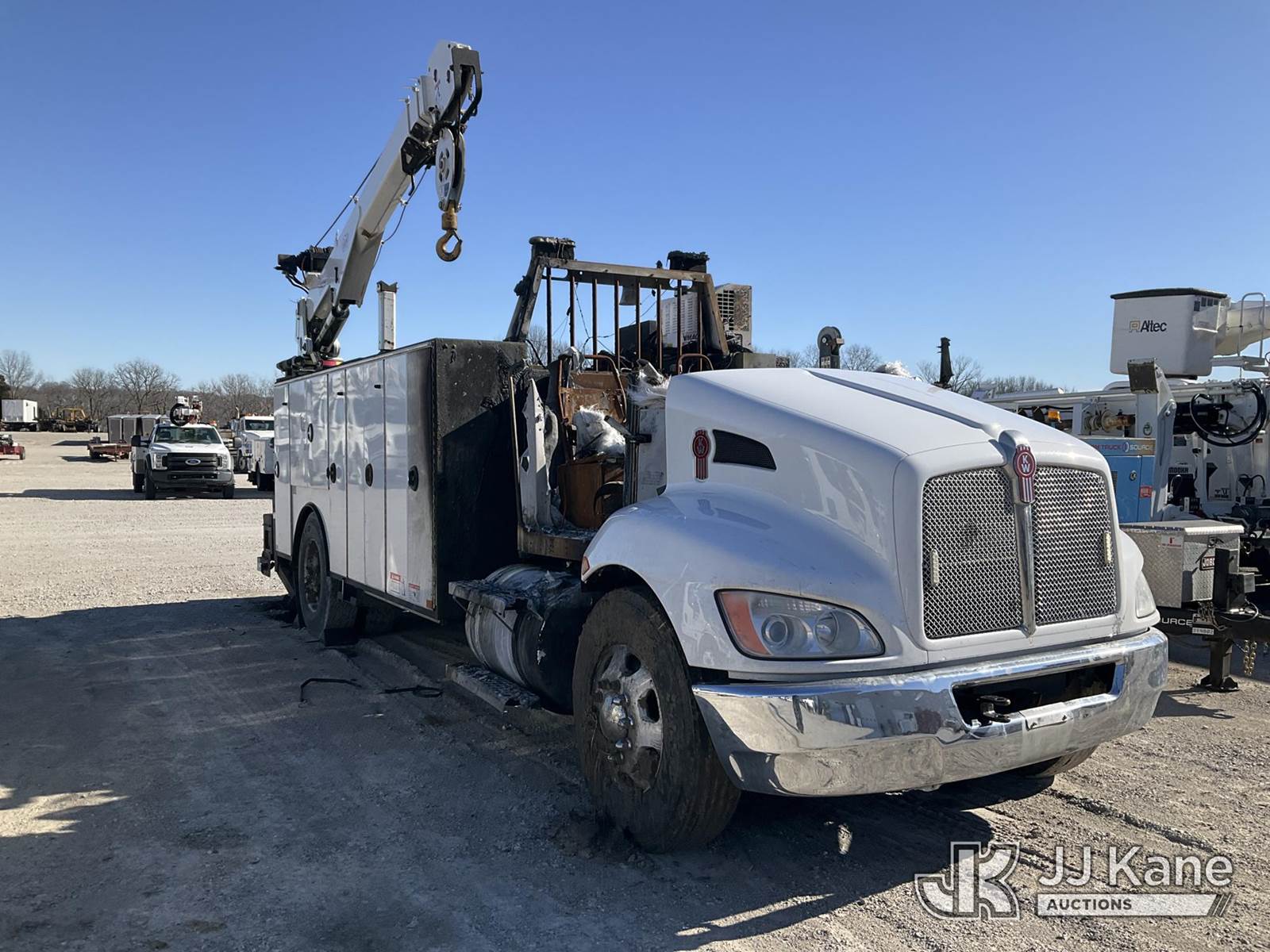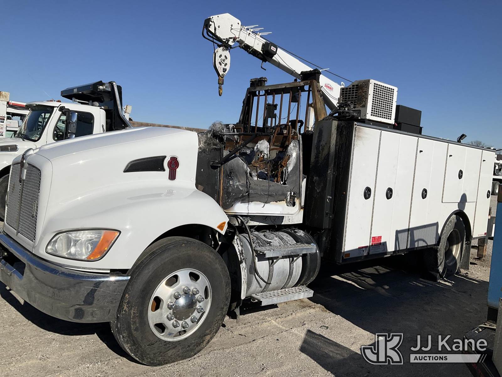 2020 Kenworth T370 Mechanics Service Truck, Cummins 4X2, diesel, with 2020 Summit 10 Series 14' Mechanics body with 10,000 lb. Summit Crane 10629 & VMAC H40 hydraulic air compressor Body Serial # STE9684, True Mileage Unknown (Not Running, Condition Unknown) (Has Fire Damage, Totaled, Mileage Unknown) This is a Titled Item NOTE: This unit is being sold AS IS/WHERE IS via Timed Auction and is located in Parkville, MO. For more information & removal arrangements please contact Ricky McPherson @ 816-610-2250. (Buyer is responsible for removal. Assistance by consignor or JJ Kane Auctions is not assured.)