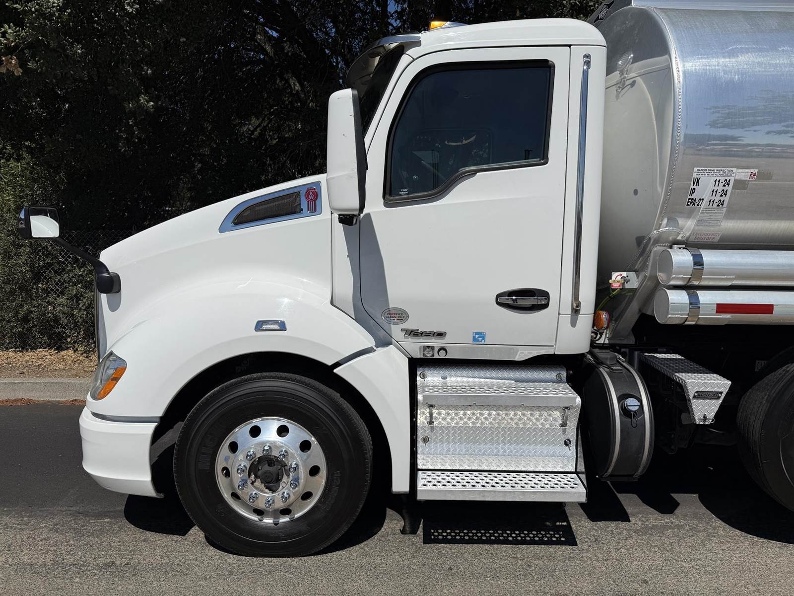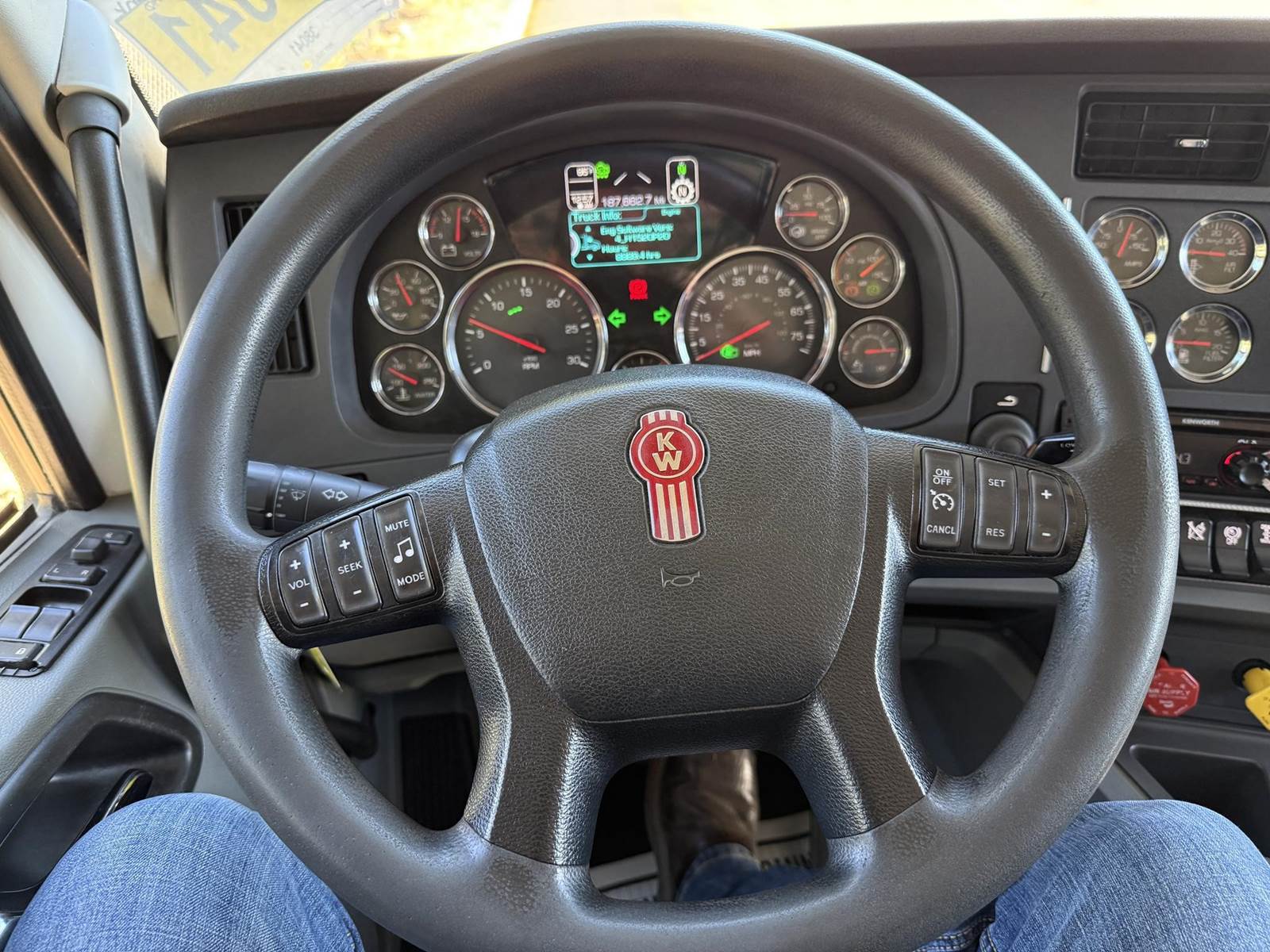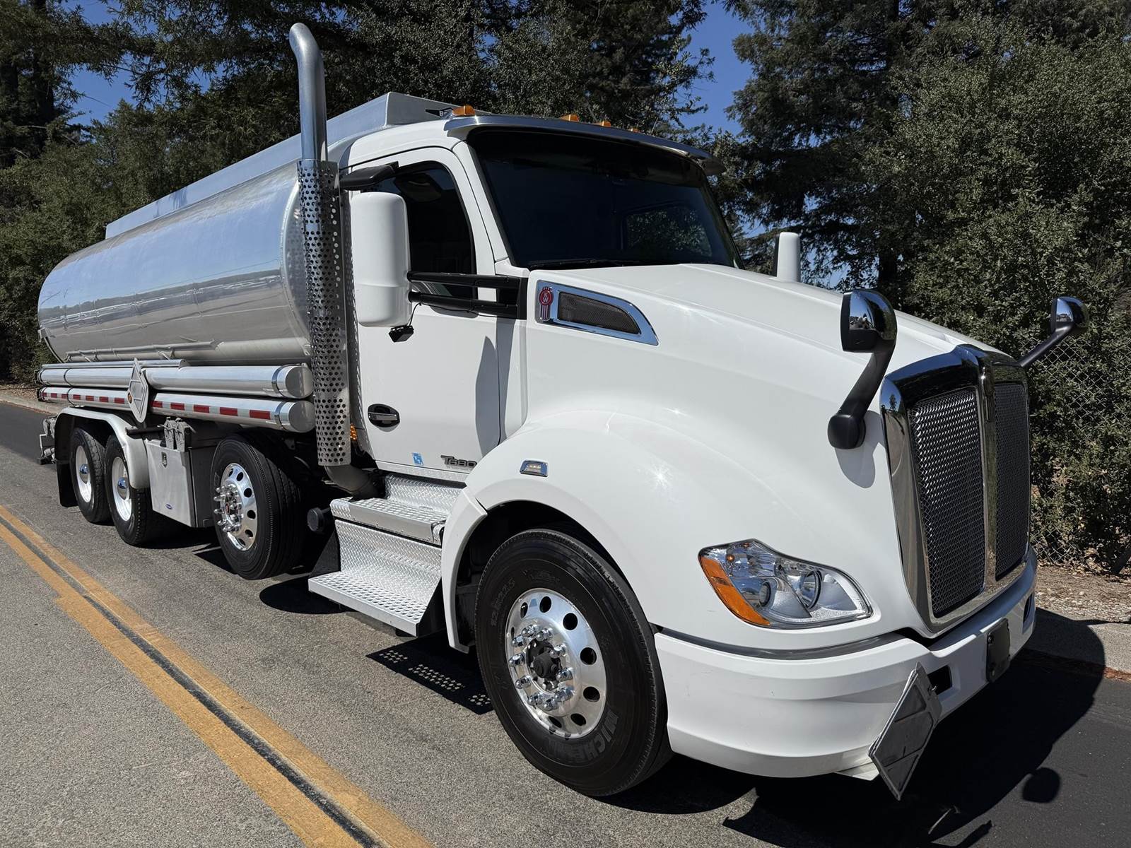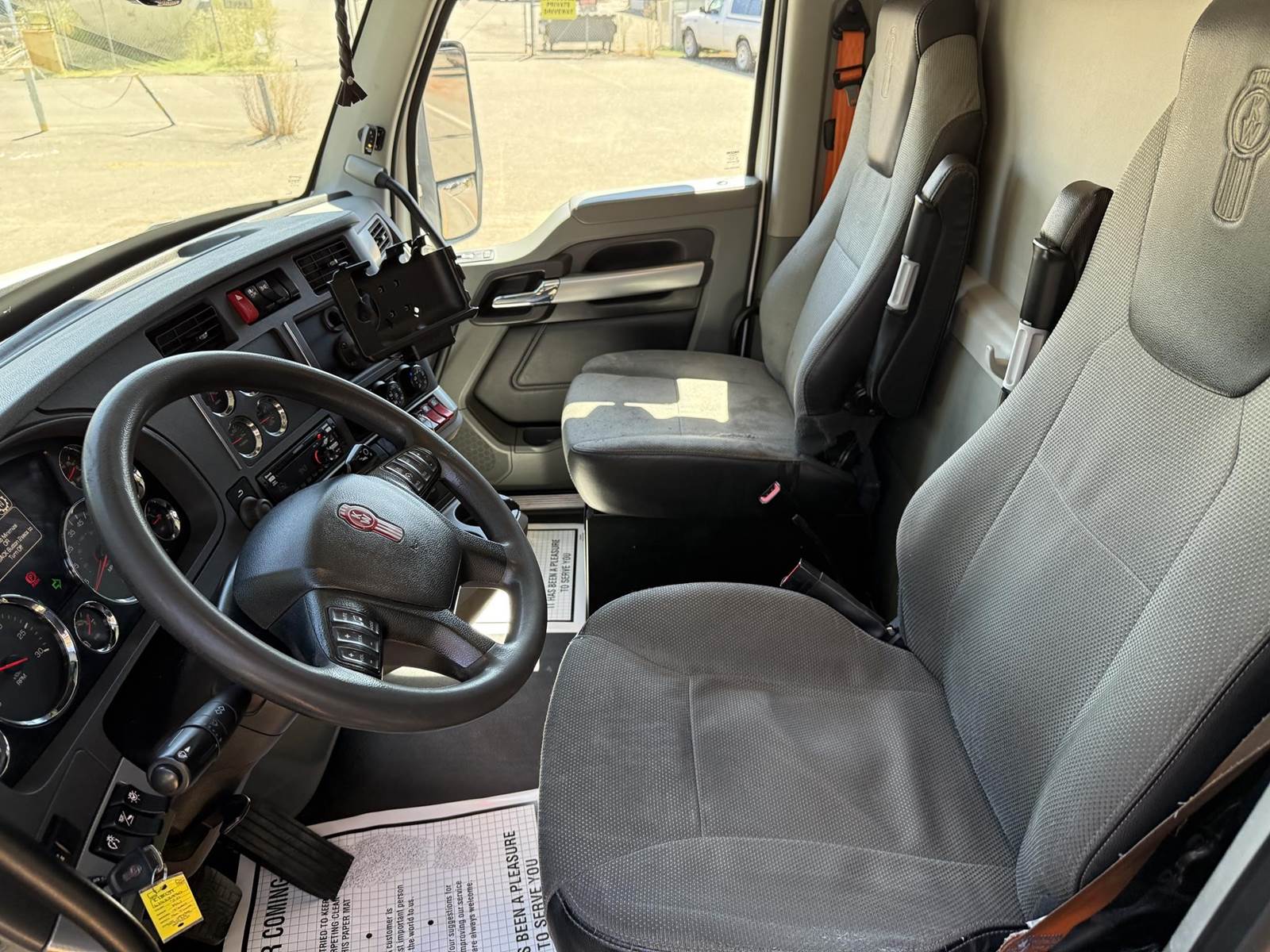 MX 11 (430 HP), Engine Brake, Paccar PO-16F112C Automatic Transmission, Meritor MP40-14X3 36,000# Dual Drive Rear Axles (4.11 Ratio), 8,500# Air Lift Axle, Kenworth 8-Bag Air Ride Suspension w/ Dash Deflate Switch, 14,600# Steer Axle w/ Power Steering, 445/50R22.5 Super Single Drive Tires, 275/80R22.5 Air Lift Tires, 11R22.5 Steer Tires, All Aluminum Wheels, Disc Brakes, L/H Aluminum Battery Box w/ Steps under Driver Side Door, Battery Disconnect Switch, L/H Frame Mounted DEF Tank, L/H Frame Mounted Chain Hanger, L/H Aluminum Frame Mounted Fuel Tank, L/H & R/H Hood Mounted Spot Mirrors, Single R/H Upright Chrome Exhaust w/ DPF, R/H Aluminum Frame Mounted Tool Box, Painted Visor, Air Ride Day Cab, Full Aluminum Fenders over Drive Axles, DOT Rear Bumper w/ Pintle Hitch, Glad Hands & 7-Way Plug, Air Ride Seat, Tilt & Tele Steering Column, Gauge Package, Power Door Locks, Power Windows, Power Mirrors, Heated Mirrors, A/C, Cruise Control, Kenworth AM/FM Radio w/ CD Player......