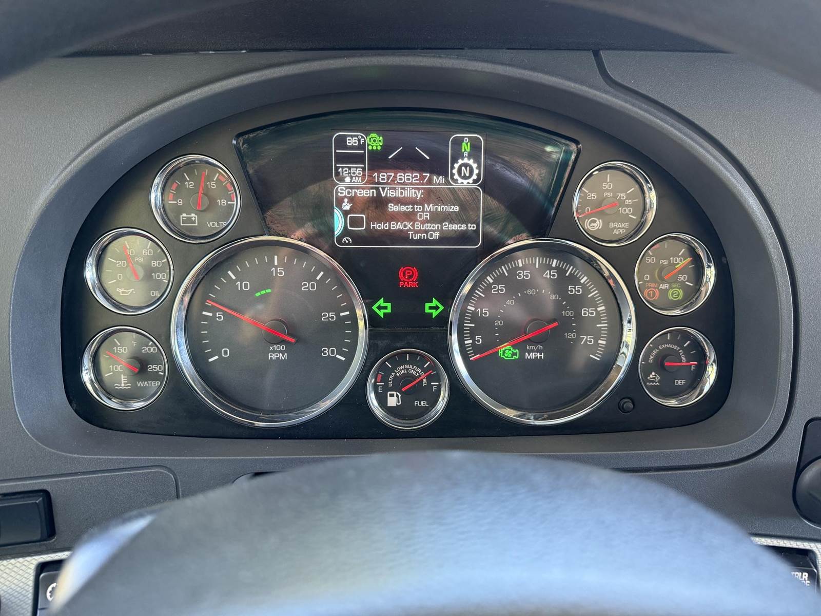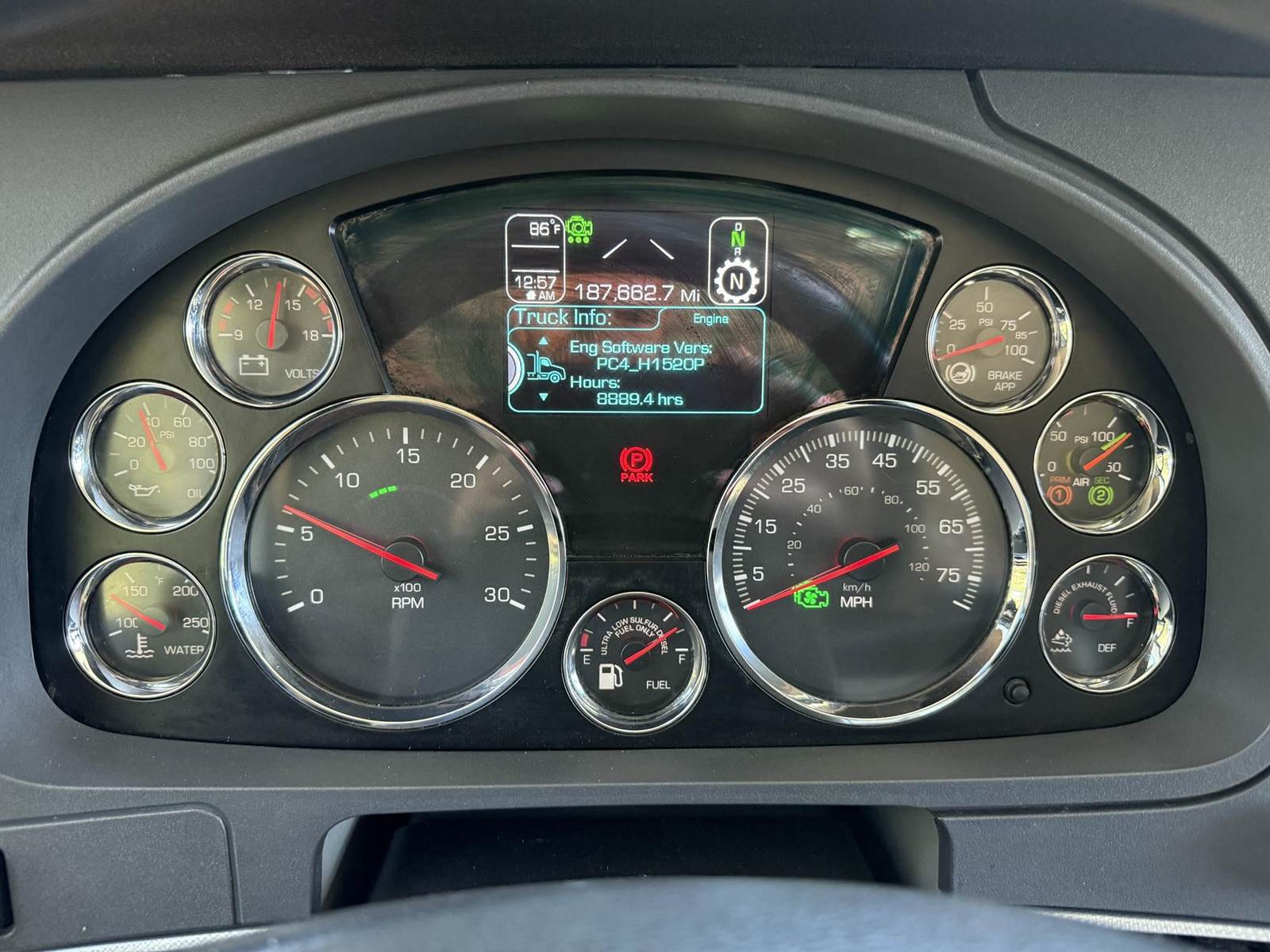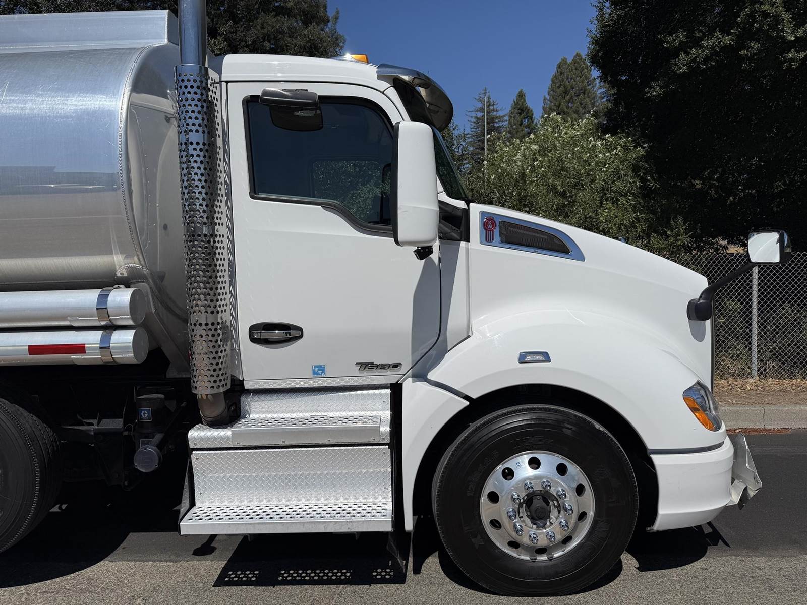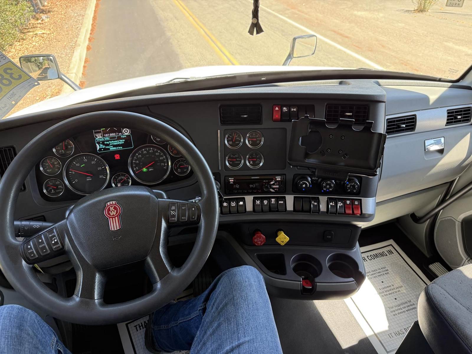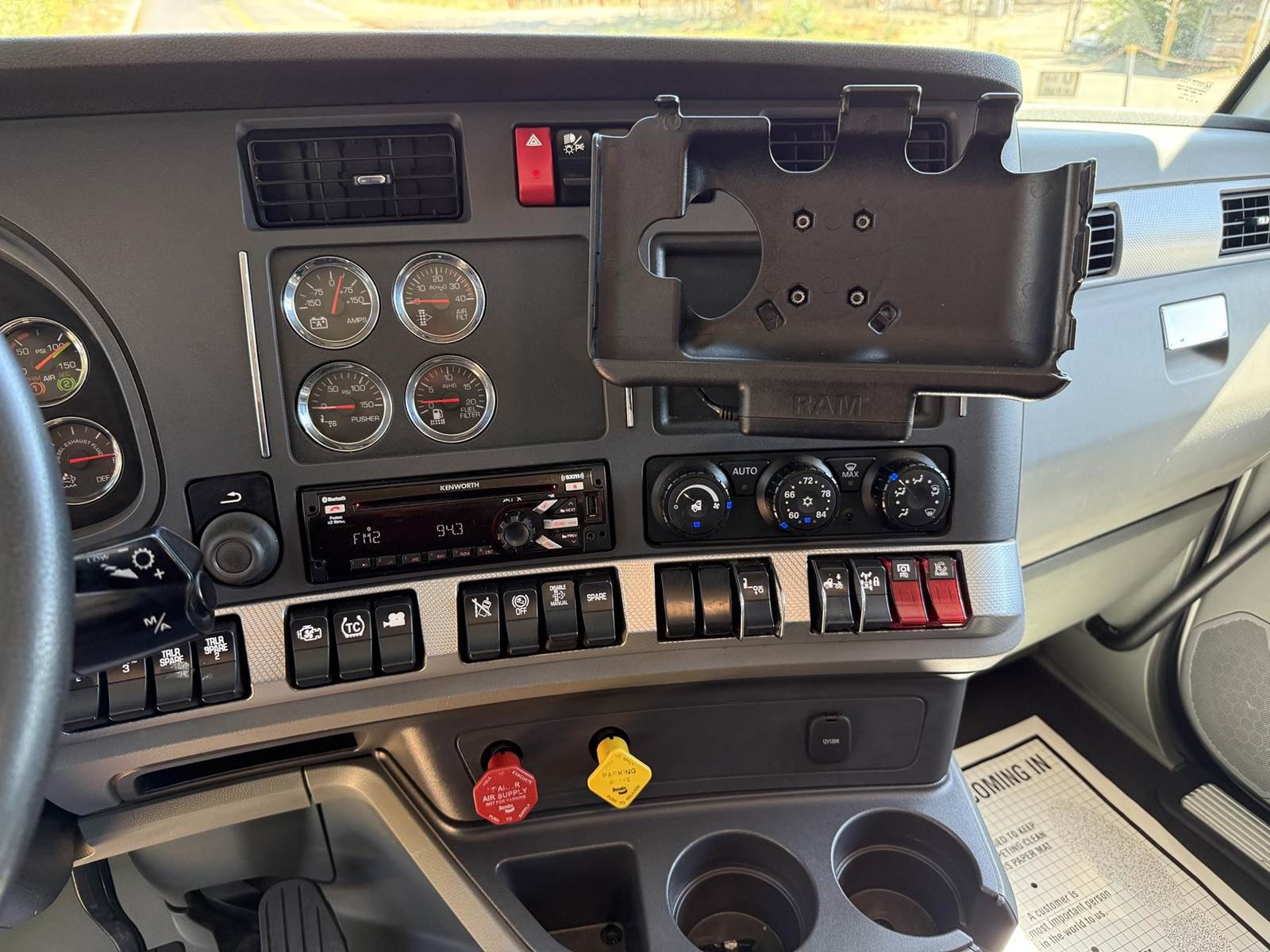 MX 11 (430 HP), Engine Brake, Paccar PO-16F112C Automatic Transmission, Meritor MP40-14X3 36,000# Dual Drive Rear Axles (4.11 Ratio), 8,500# Air Lift Axle, Kenworth 8-Bag Air Ride Suspension w/ Dash Deflate Switch, 14,600# Steer Axle w/ Power Steering, 445/50R22.5 Super Single Drive Tires, 275/80R22.5 Air Lift Tires, 11R22.5 Steer Tires, All Aluminum Wheels, Disc Brakes, L/H Aluminum Battery Box w/ Steps under Driver Side Door, Battery Disconnect Switch, L/H Frame Mounted DEF Tank, L/H Frame Mounted Chain Hanger, L/H Aluminum Frame Mounted Fuel Tank, L/H & R/H Hood Mounted Spot Mirrors, Single R/H Upright Chrome Exhaust w/ DPF, R/H Aluminum Frame Mounted Tool Box, Painted Visor, Air Ride Day Cab, Full Aluminum Fenders over Drive Axles, DOT Rear Bumper w/ Pintle Hitch, Glad Hands & 7-Way Plug, Air Ride Seat, Tilt & Tele Steering Column, Gauge Package, Power Door Locks, Power Windows, Power Mirrors, Heated Mirrors, A/C, Cruise Control, Kenworth AM/FM Radio w/ CD Player......