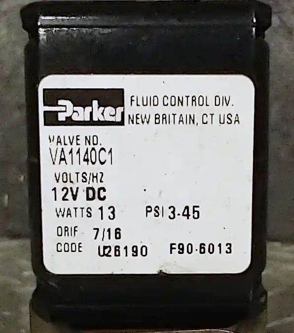 Paccar, Parker DEF Pump Coolant Control Valve, DEF Pump Solenoid Valve, 12VDC - 13 Watts, Part # VA1140C1, F90-6013.