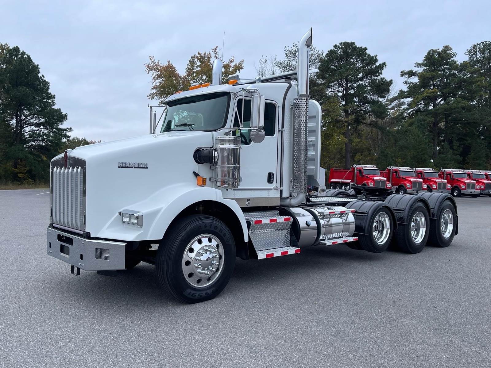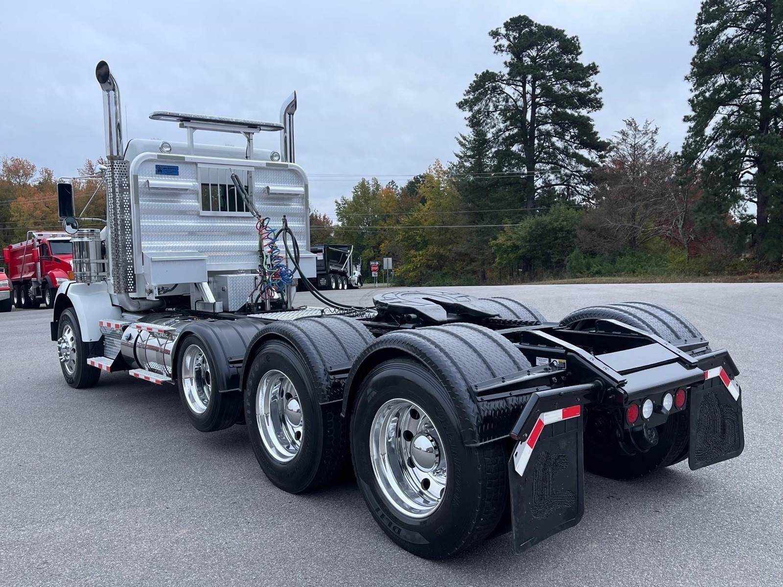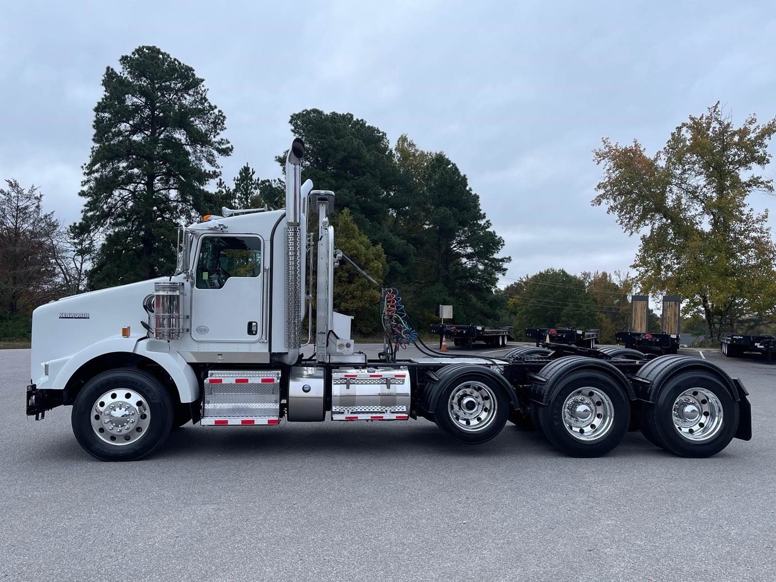 2020 Kenworth T800 Extended Cab --- Tri Axle, X15 Cummins 565 HP, Eaton-Fuller Manual 18 Speed, 4.10 Ratio, 14,320 Front Axle, 46,000 Rear Axle, 239" Wheelbase, 22' 2" Bridge, Air Ride AG460, Double Frame, 3 Stage Engine Brake, Axle & Differential, Air Slide 5th Wheel, Dual Line Wetline, All Aluminum, Engine Heater Plug, Dual Stacks, Dual Stainless Steel Breathers, Aluminum Fuel Tanks, Daylite Doors, Peep Window, Air Ride Cab, High Level Interior, Chrome Gauge Package, Heated Mirrors, Cruise Control, Tilt & Telescopic Steering Wheel, AM/FM CD, Power Windows, P/L, P/S, AC, Navigation, Aluminum Headache Rack, Light Bar, Strobe Lights, Spot Light,