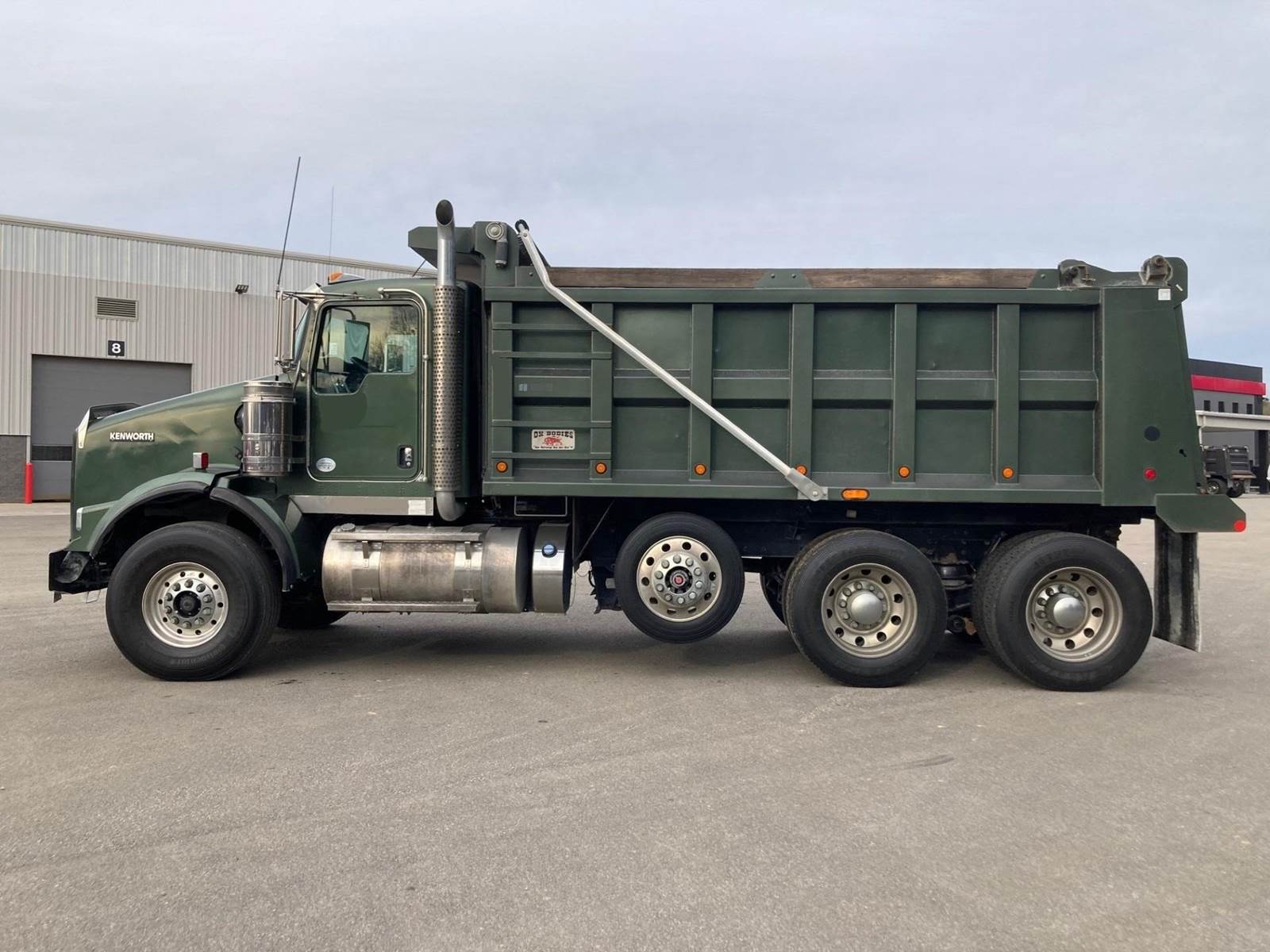 Triaxle, 16' Ox Steel Dump w/54" Sides, High Lift Gate, X15 Cummins 450 HP, 8LL, 4.10 Ratio, 3 Stage Engine Brake, Chalmers, Double Frame, 20K FA, 46K RA, 12,350 Steerable L/A, 212" WB, 19'11" Bridge, Dual P/S Boxes, Dual Exhaust Dual Stainless Breathers, Diff Lock, Electric Tarp, Air/High Lift Tailgate, P/S, A/C, AM/FM CD Bluetooth, Heated Mirrors, Cruise, Tilt/Tele Wheel, Power Locks, Mirrors, and Passenger Window, Dual High Back Seats, 110 Gallon Aluminum Fuel Tank, 425/65R22.5 Steer Tires on Aluminum Wheels, 11R24.5 Drive Tires on Aluminum Wheels Outside, Chrome Bumper