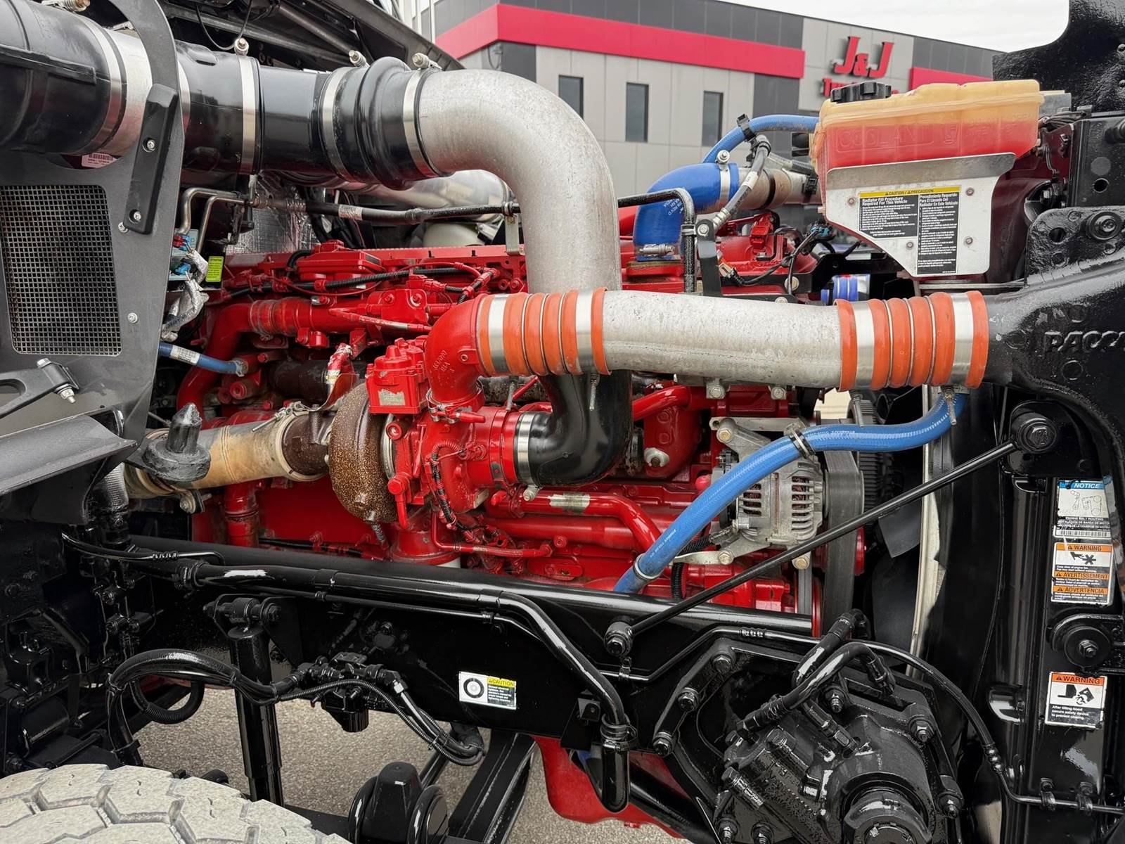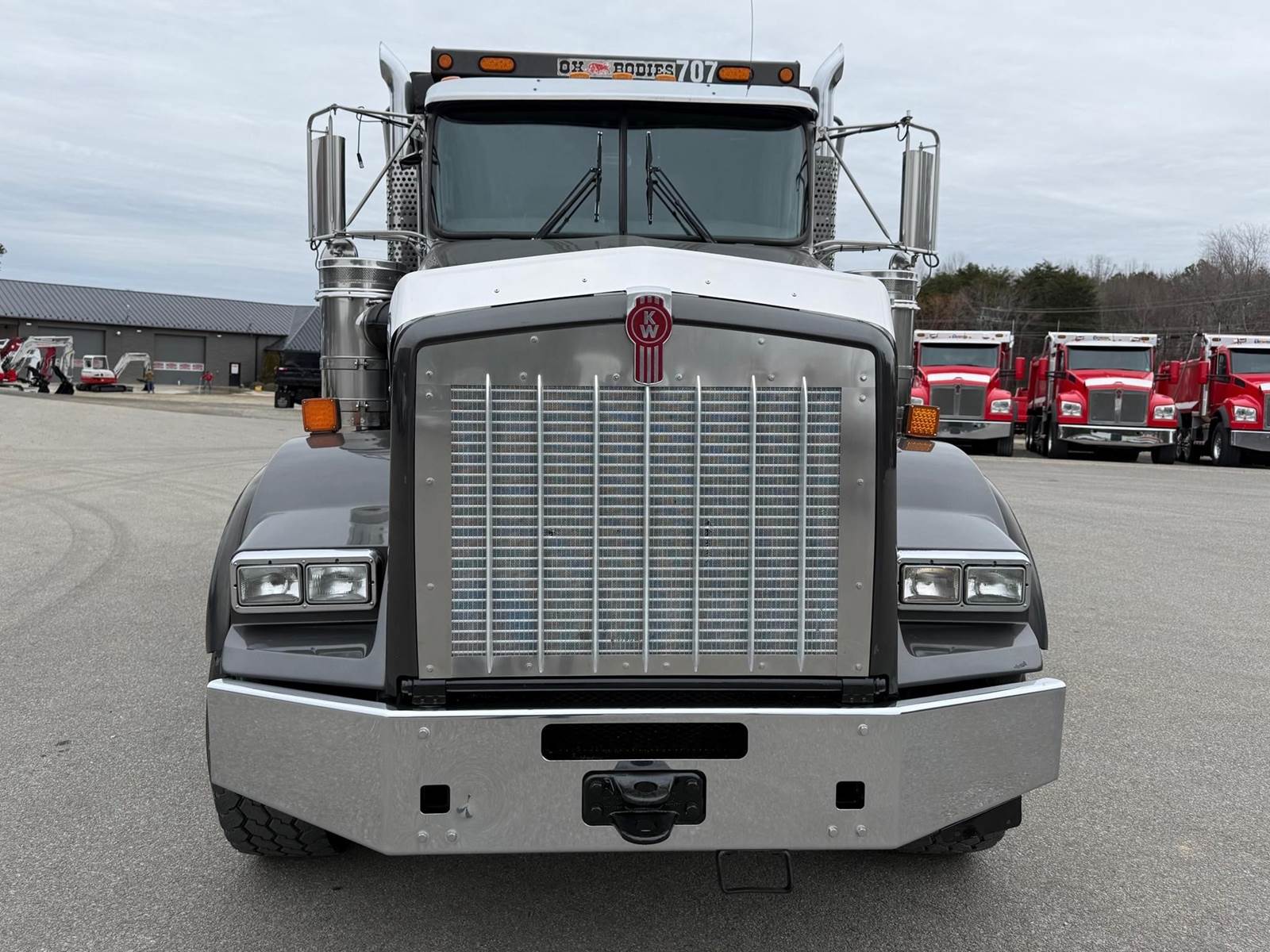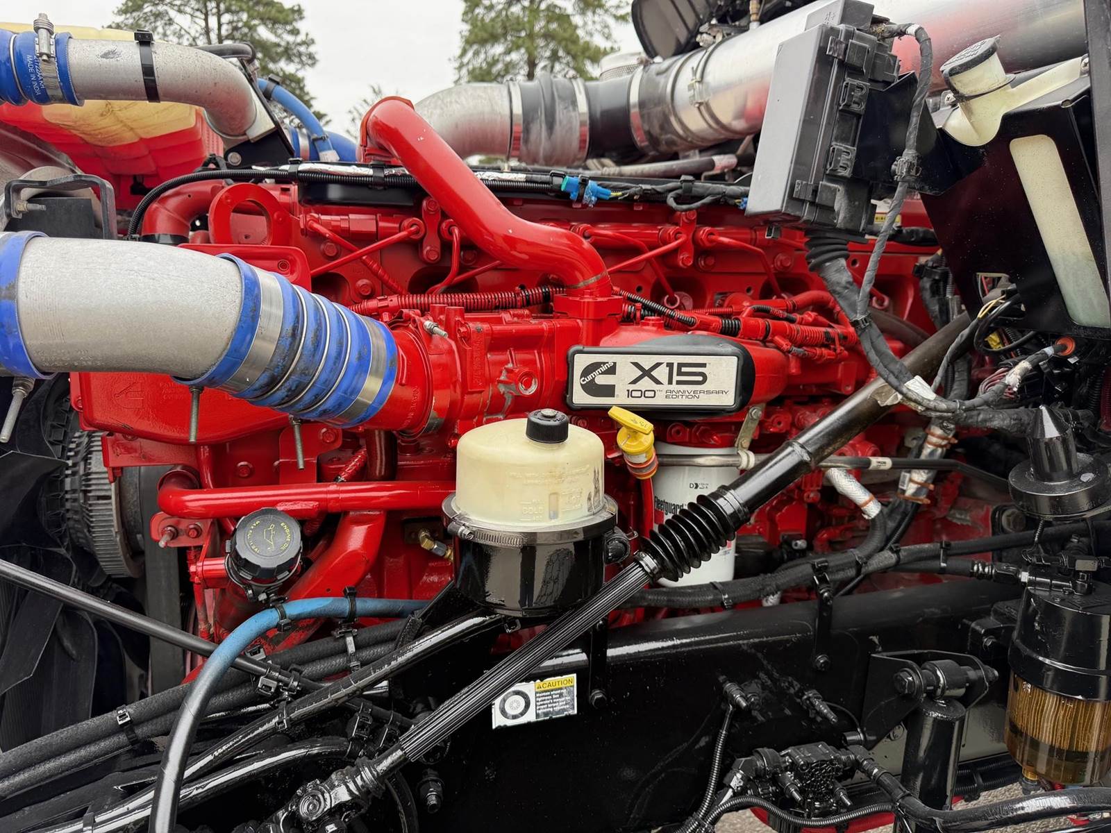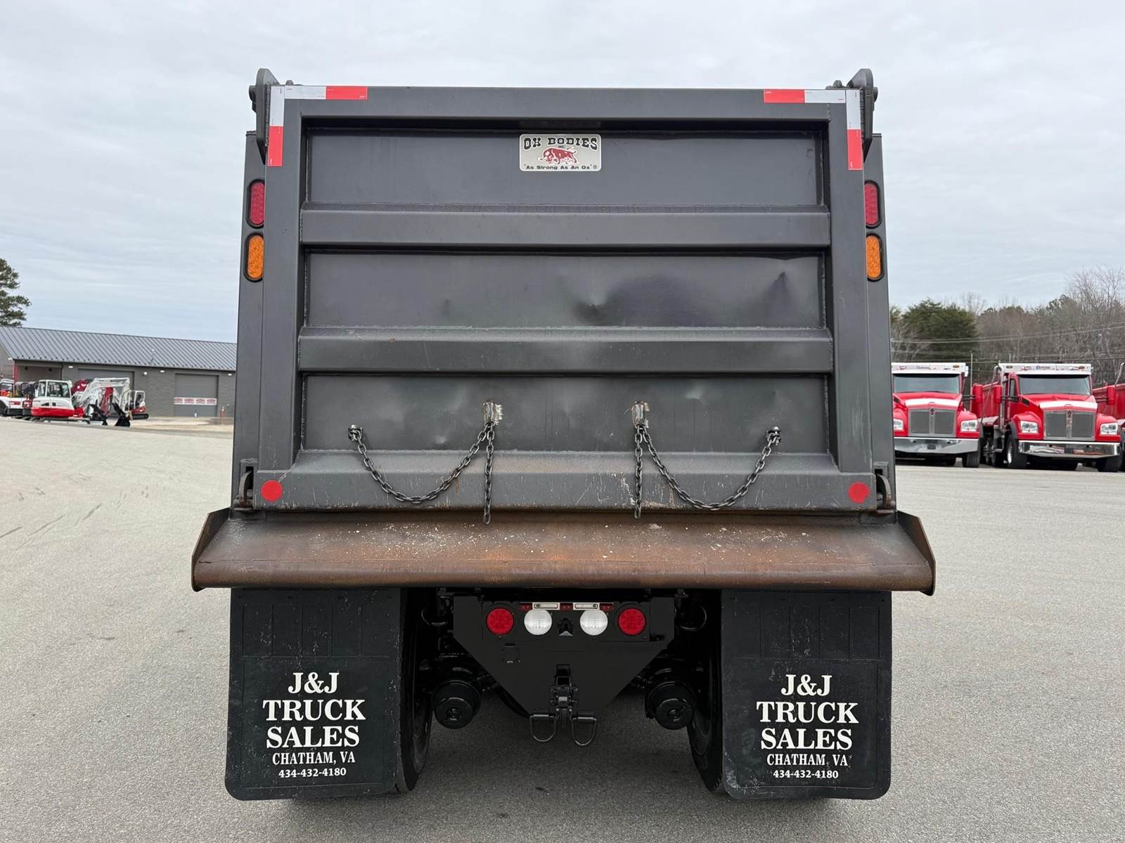 Triaxle, 16' Ox Steel Dump w/54" Sides, High Lift Gate, X15 Cummins 450 HP, 8LL, 4.10 Ratio, 3 Stage Engine Brake, Chalmers, Double Frame, 20K FA, 46K RA, 12,350 Steerable L/A, 212" WB, 19'11" Bridge, Dual P/S Boxes, Dual Exhaust Dual Stainless Breathers, Diff Lock, Electric Tarp, Air/High Lift Tailgate, P/S, A/C, AM/FM CD Bluetooth, Heated Mirrors, Cruise, Tilt/Tele Wheel, Power Locks, Mirrors, and Passenger Window, Dual High Back Seats, 110 Gallon Aluminum Fuel Tank, 425/65R22.5 Steer Tires on Aluminum Wheels, 11R24.5 Drive Tires on Aluminum Wheels Outside, Chrome Bumper