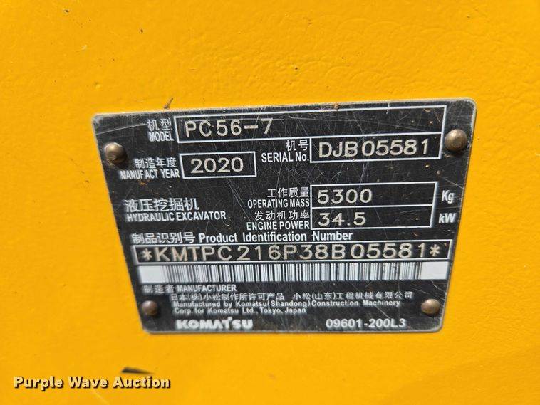 2020 Komatsu PC56-7 mini excavator