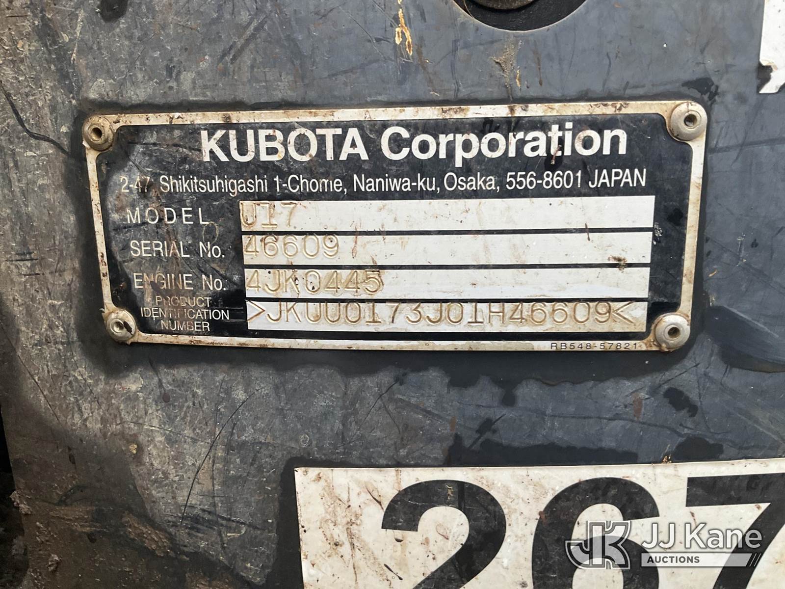 2020 Kubota U17 Mini Hydraulic Excavator, s/n JKUU0173J01H46609, Kubota Hydraulic Drive, diesel, with 18 inch Digging Bucket, Backfill Blade, Rubber Tracks & ROPS, (Runs, Moves & Operates ) (Reads 1,560 hours) NOTE: This unit is being sold AS IS/WHERE IS via Timed Auction and is located in Rome, NY. Inspection & preview days for this unit are the 2 business days prior to the first day of items closing for this auction, item is located at 5835 Success Dr Rome, NY 13440 and hours of operations are 8a-4p. For pre-sale questions, please contact Ryan Jackson @ (315) 749-3790 or Ryan.Jackson@jjkane.com. (Buyer is responsible for removal. Assistance by consignor or JJ Kane Auctioneers is not assured.)