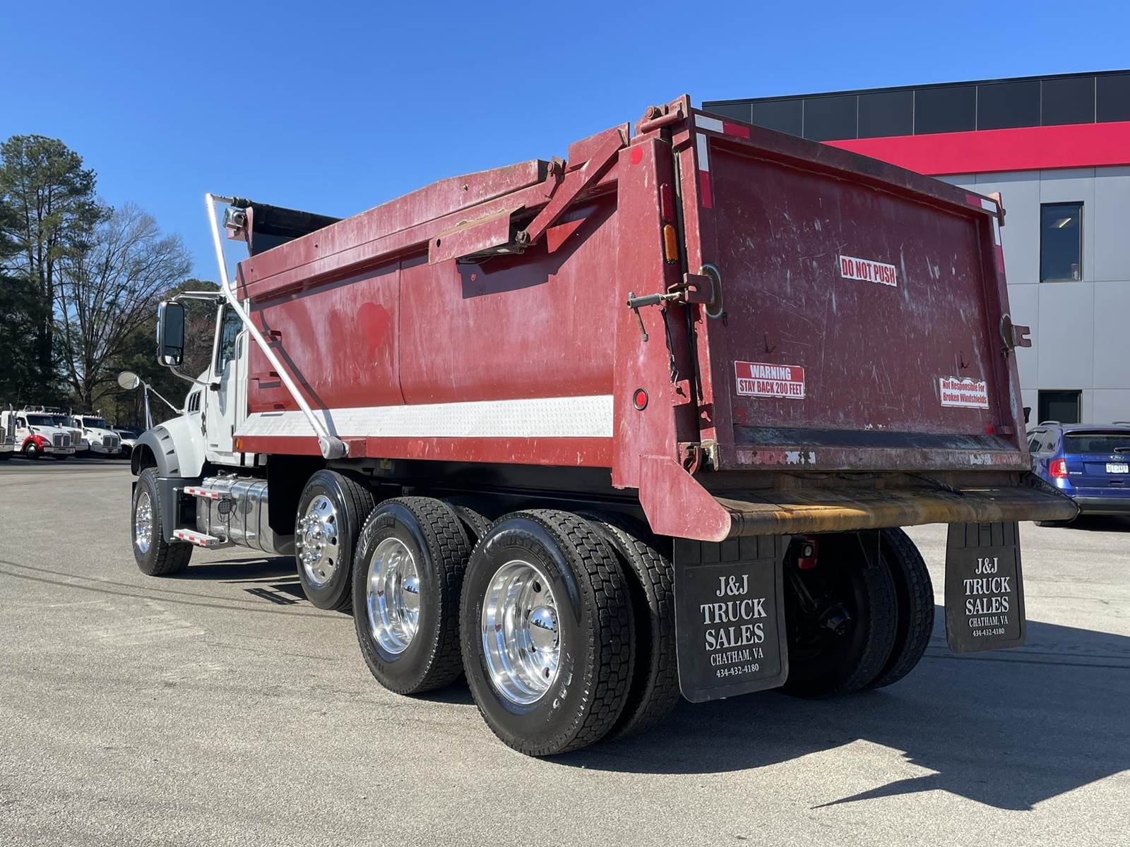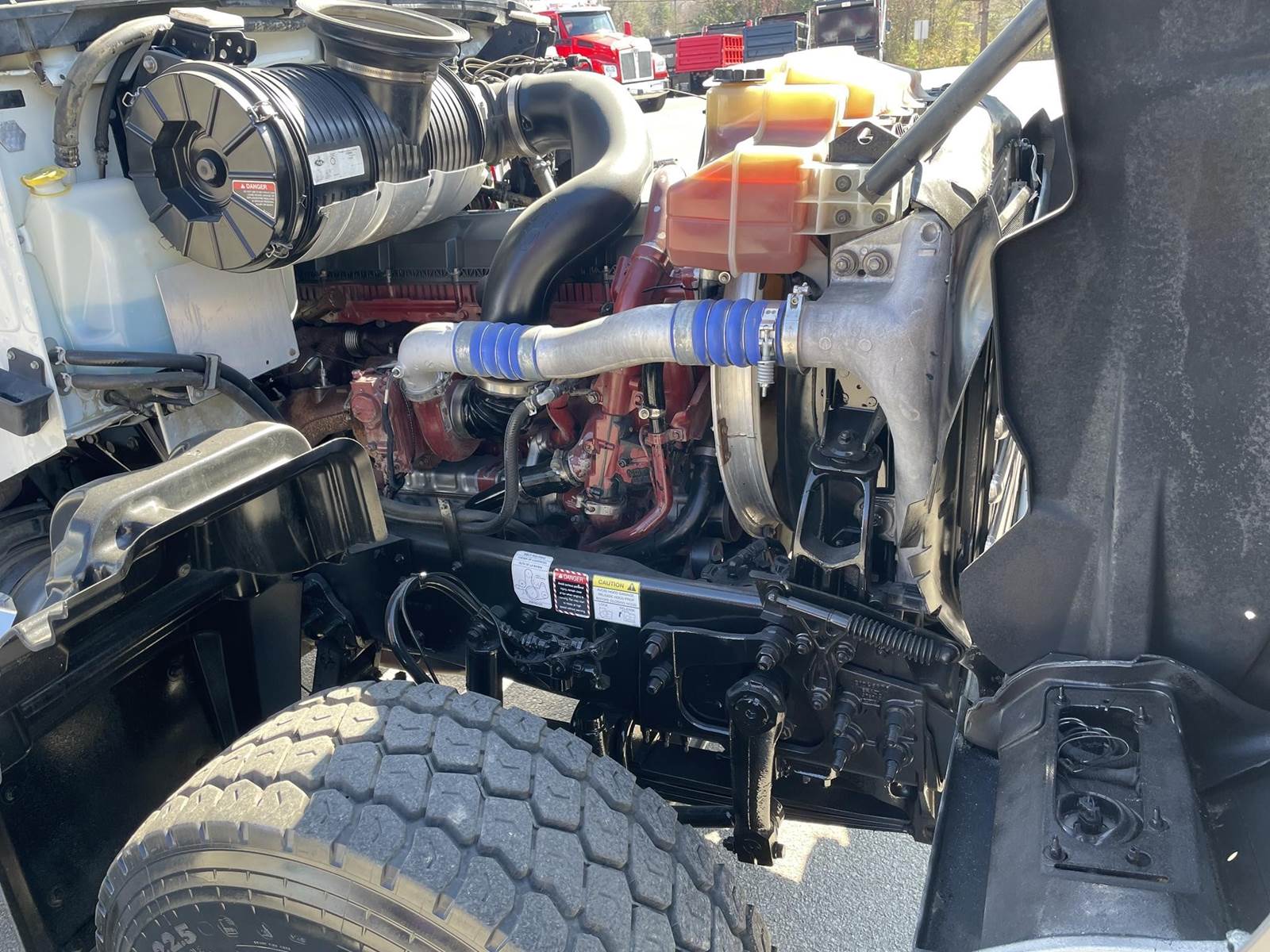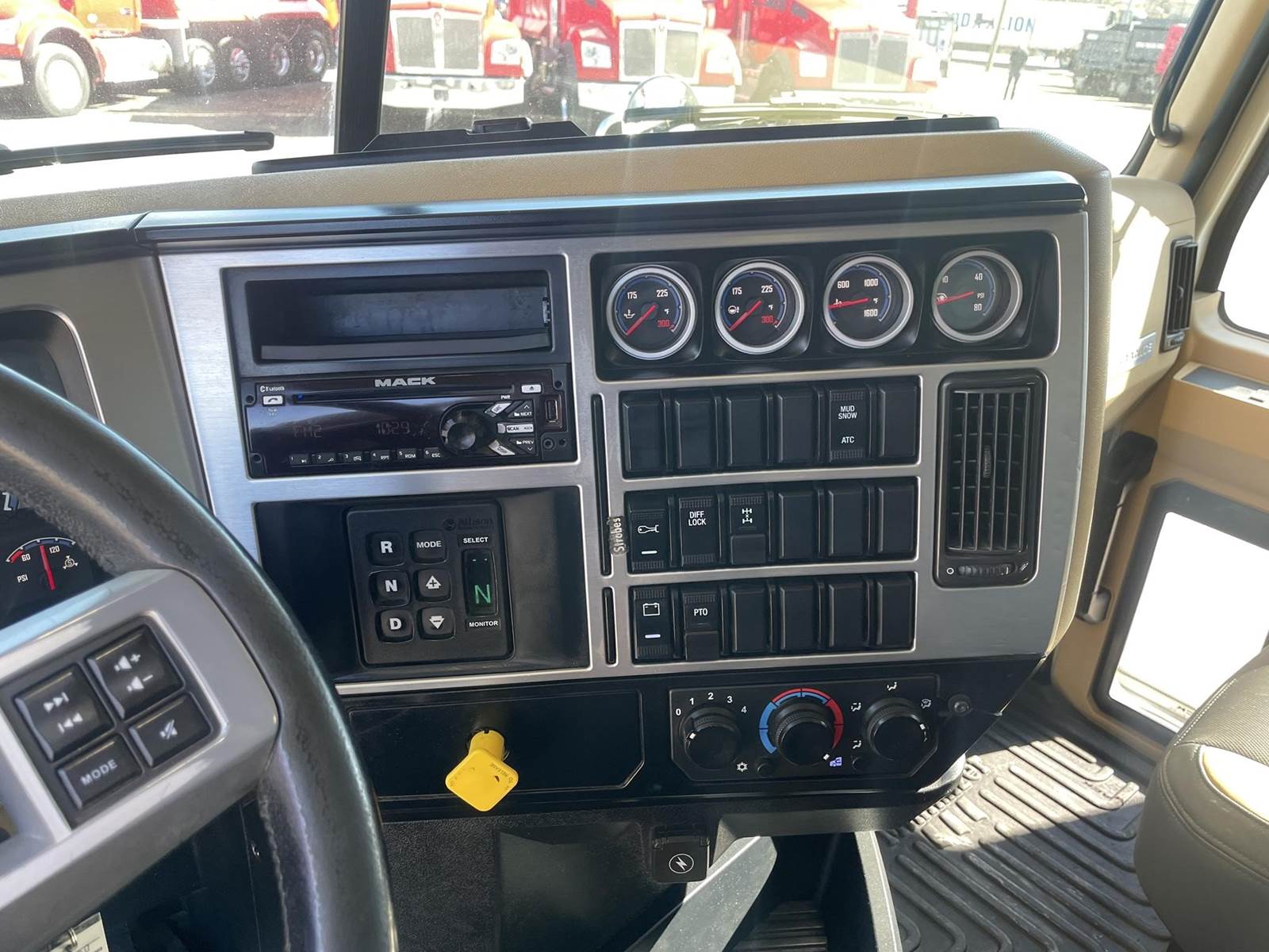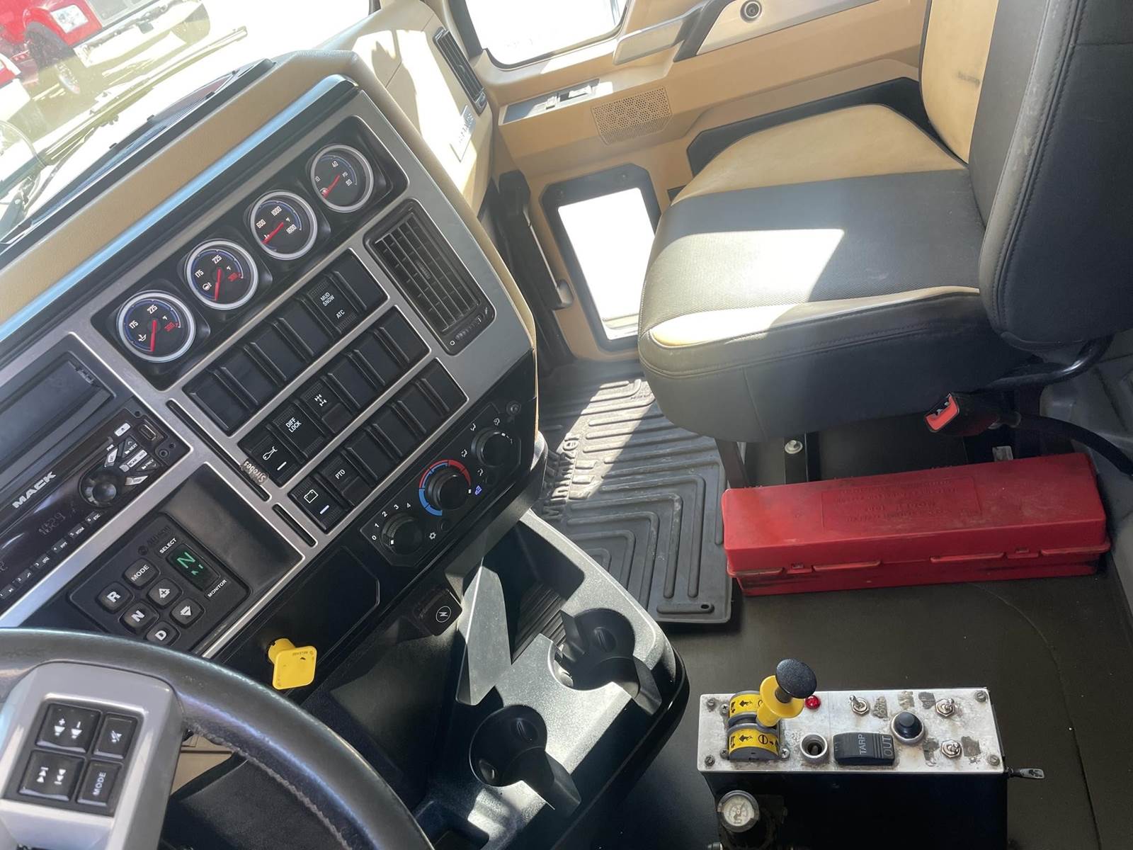 Triaxle, 17' Double A Steel Dump w/50" Sides, High Lift Gate, MP8 Mack 455 HP, Allison Automatic, 3.98 Ratio, 3 Stage Engine Brake, Camelback, Double Frame, 20K FA, 46K RA, Steerable L/A, 230" WB, 21'4" Bridge, Diff Lock, Wheel Lock, Electric Tarp, Air/High Lift Tailgate, Bed Vibrator, P/S, A/C, AM/FM CD Bluetooth, Heated Mirrors, Cruise, Tilt/Tele Wheel, Power Windows, Locks, and Mirrors, High Back Seats, 125 Gallon Aluminum Fuel Tank, 385/65R22.5 Steer Tires on Aluminum Wheels, 11R24.5 Drive Tires on All Aluminum Wheels, Chrome Bumper