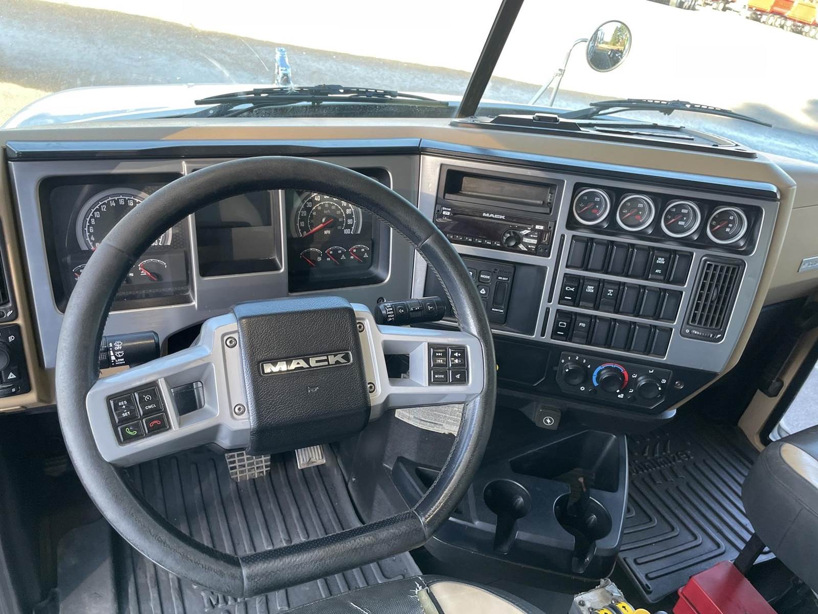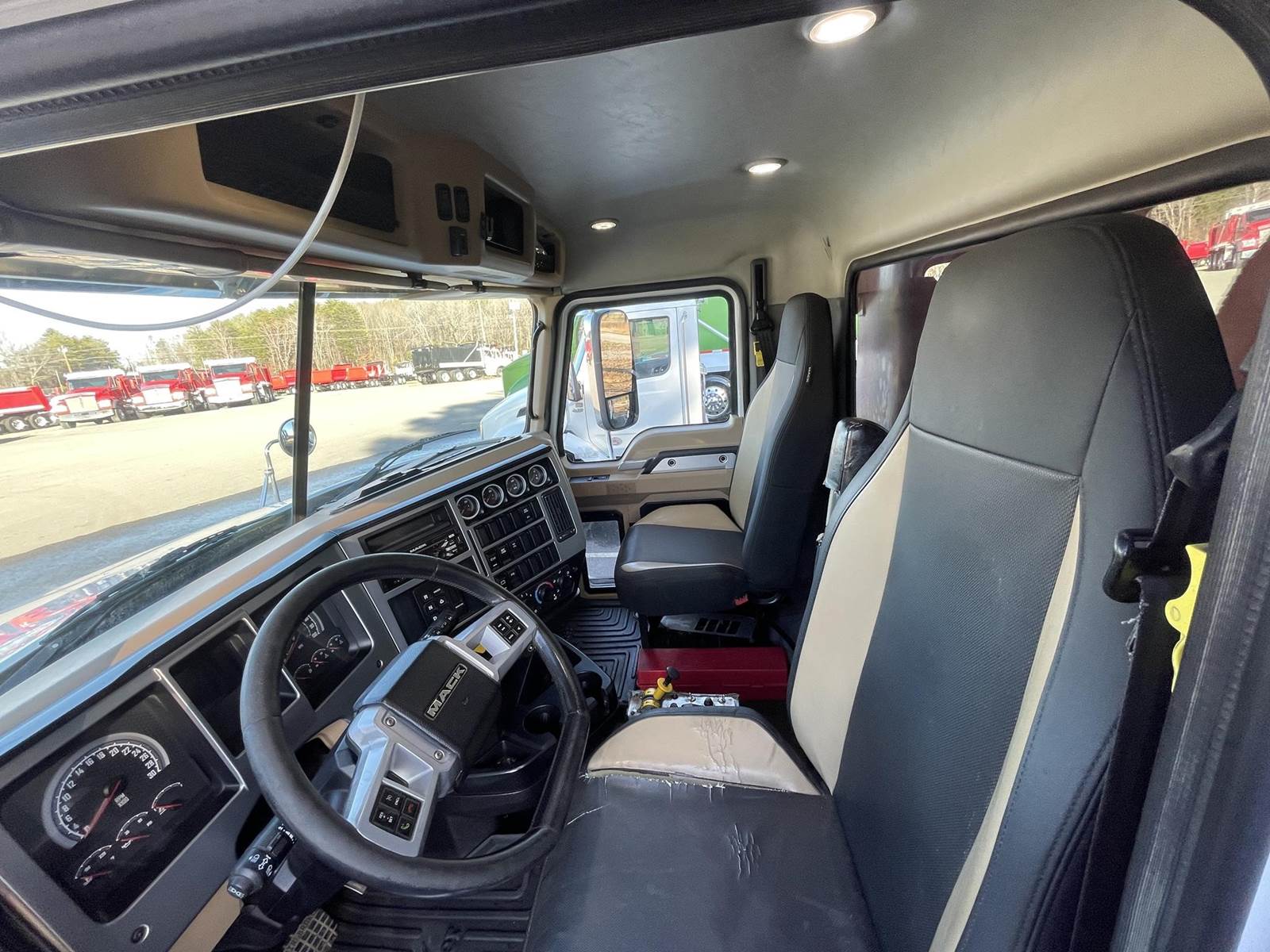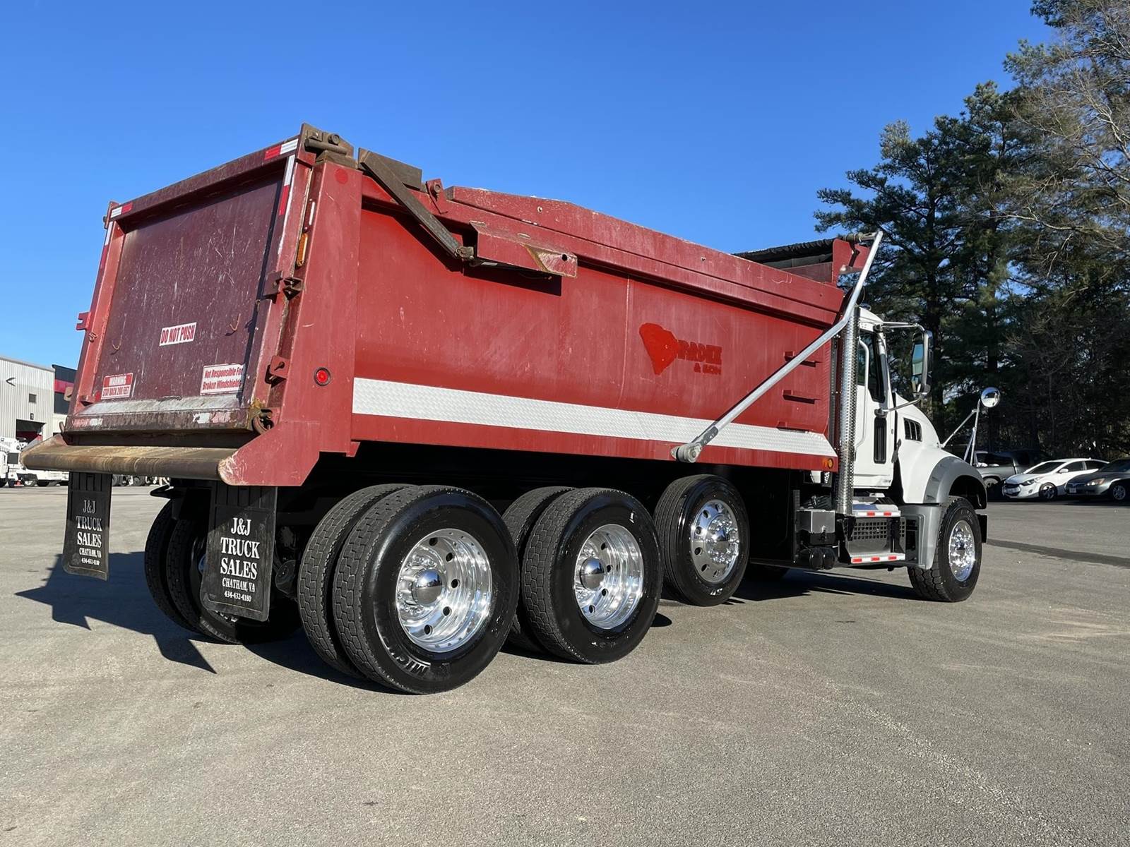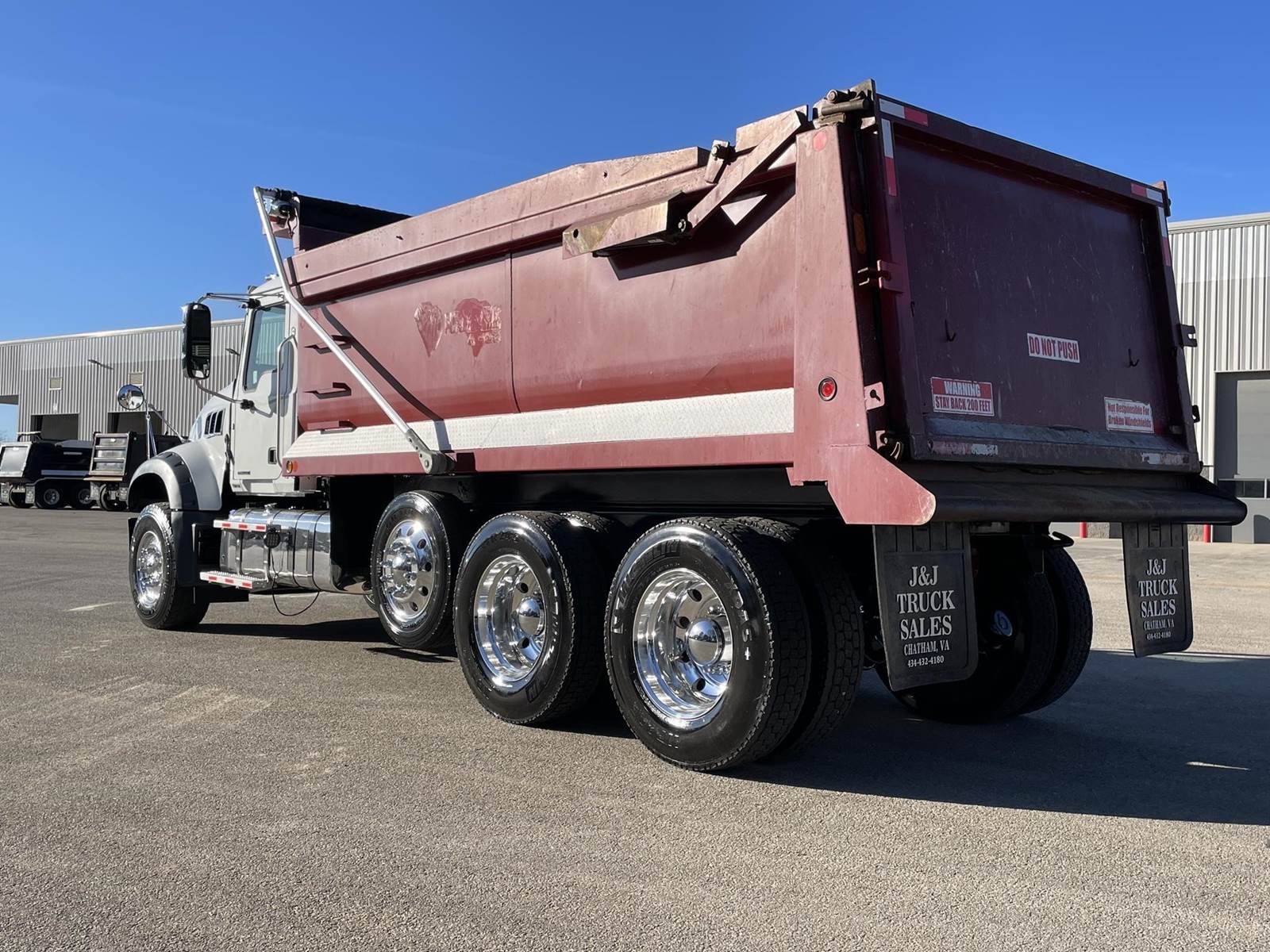 Triaxle, 17' Double A Steel Dump w/50" Sides, High Lift Gate, MP8 Mack 455 HP, Allison Automatic, 3.98 Ratio, 3 Stage Engine Brake, Camelback, Double Frame, 20K FA, 46K RA, Steerable L/A, 230" WB, 21'4" Bridge, Diff Lock, Wheel Lock, Electric Tarp, Air/High Lift Tailgate, Bed Vibrator, P/S, A/C, AM/FM CD Bluetooth, Heated Mirrors, Cruise, Tilt/Tele Wheel, Power Windows, Locks, and Mirrors, High Back Seats, 125 Gallon Aluminum Fuel Tank, 385/65R22.5 Steer Tires on Aluminum Wheels, 11R24.5 Drive Tires on All Aluminum Wheels, Chrome Bumper