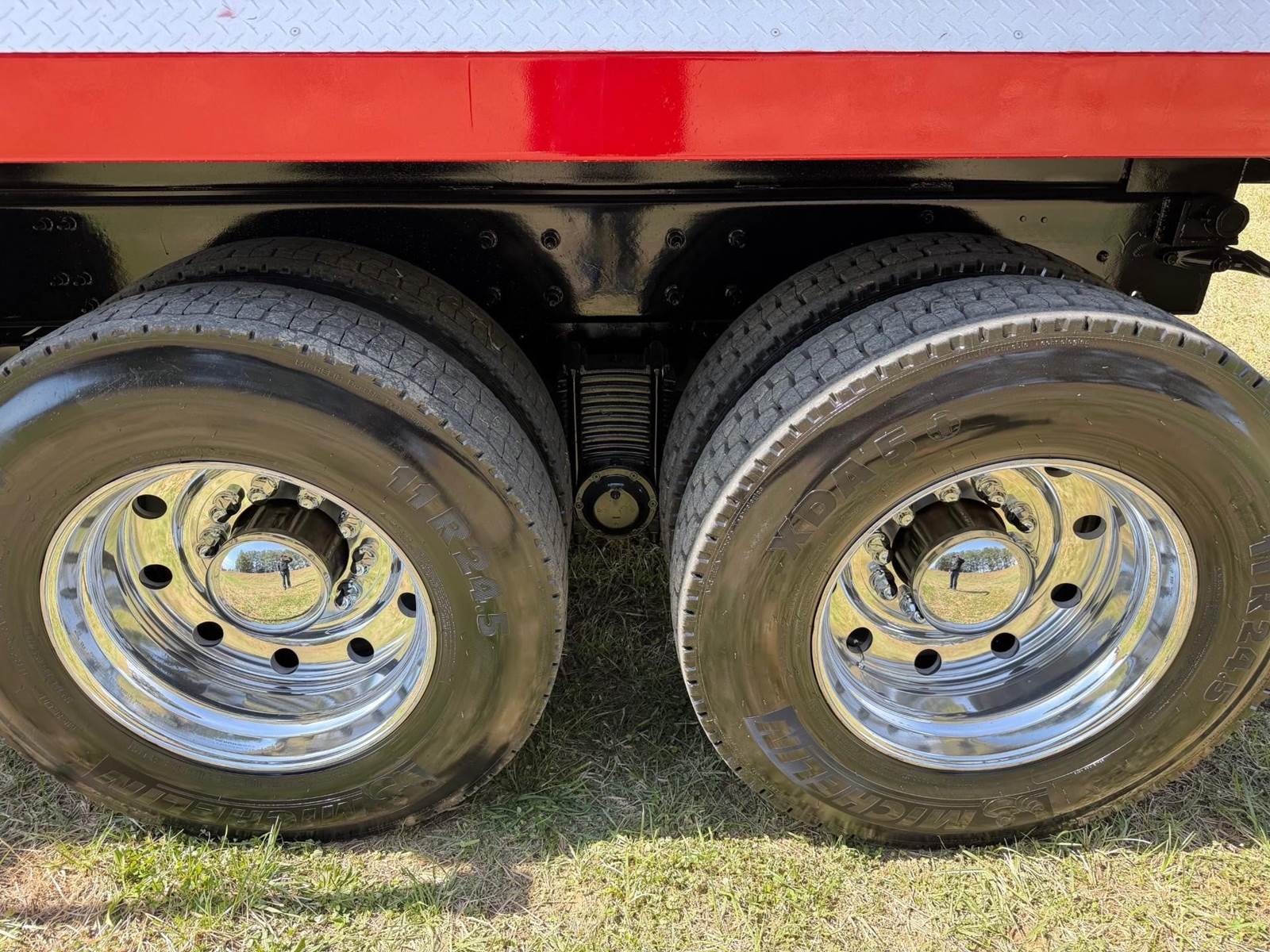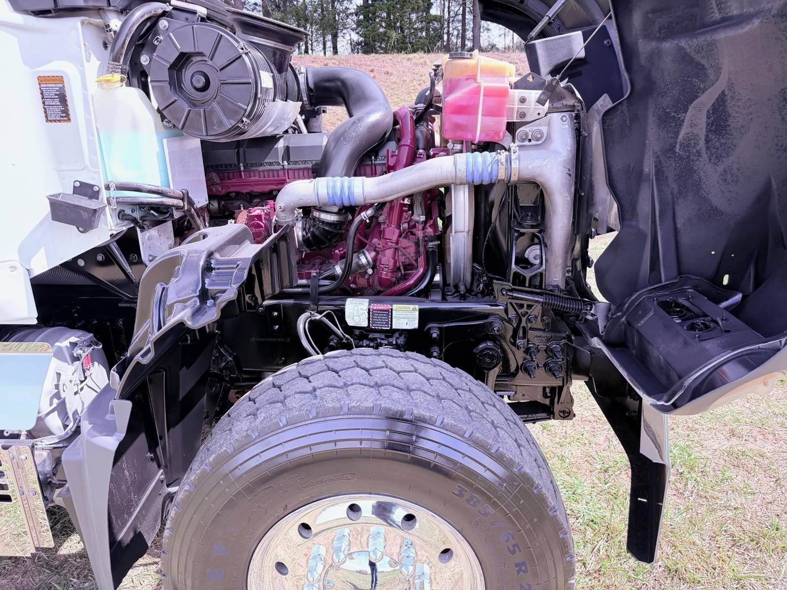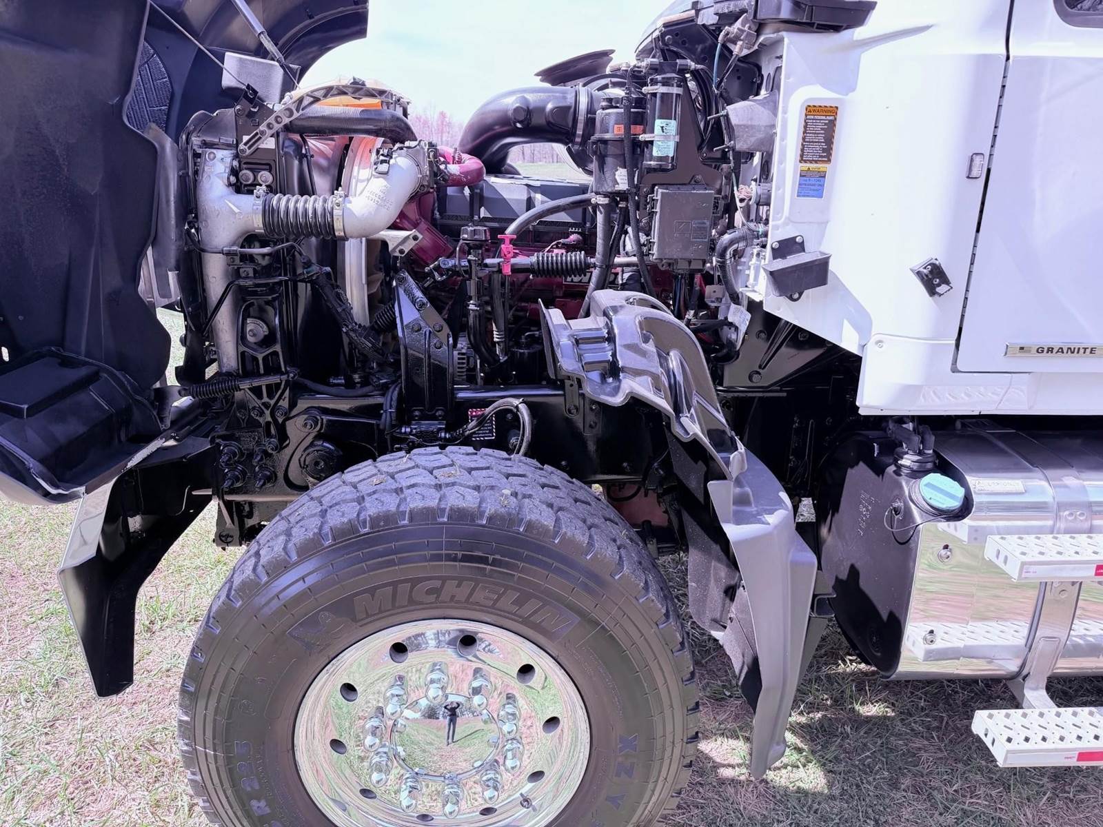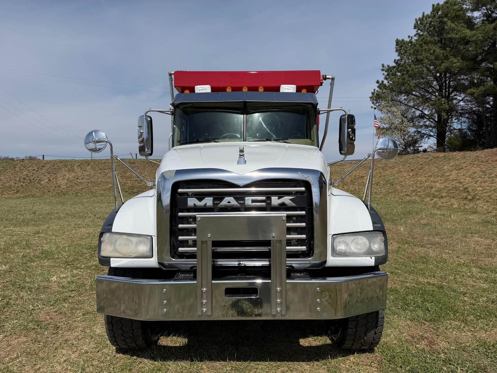 Triaxle, 17' Double A Steel Dump w/50" Sides, High Lift Gate, MP8 Mack 455 HP, Allison Automatic, 3.98 Ratio, 3 Stage Engine Brake, Camelback, Double Frame, 20K FA, 46K RA, Steerable L/A, 230" WB, 21'4" Bridge, Diff Lock, Wheel Lock, Electric Tarp, Air/High Lift Tailgate, Bed Vibrator, P/S, A/C, AM/FM CD Bluetooth, Heated Mirrors, Cruise, Tilt/Tele Wheel, Power Windows, Locks, and Mirrors, High Back Seats, 125 Gallon Aluminum Fuel Tank, 385/65R22.5 Steer Tires on Aluminum Wheels, 11R24.5 Drive Tires on All Aluminum Wheels, Chrome Bumper
