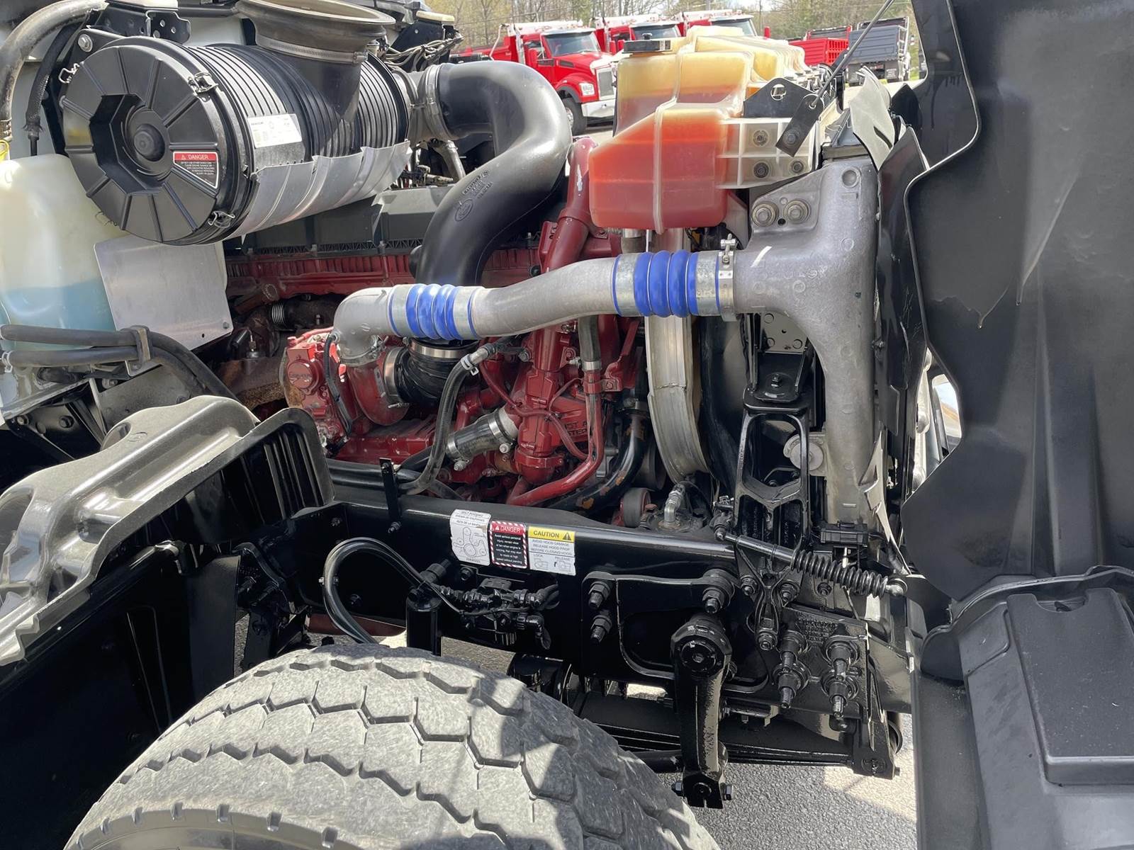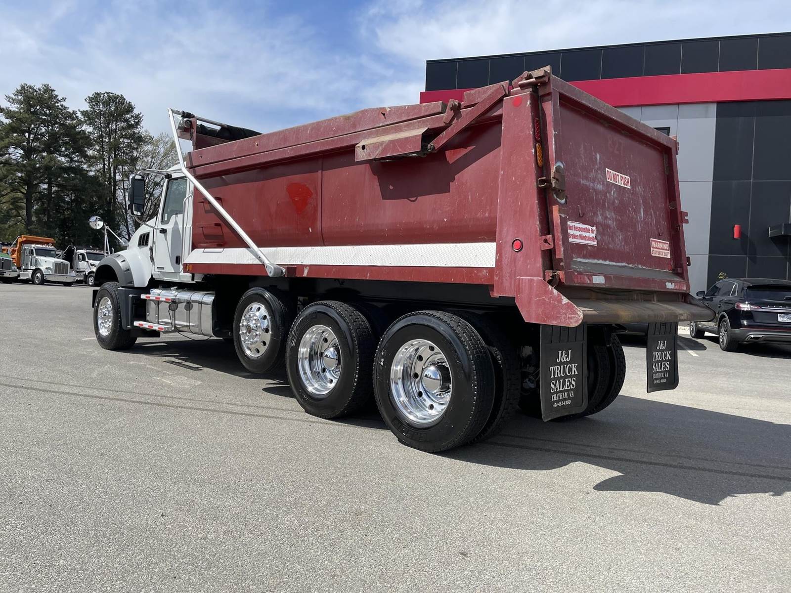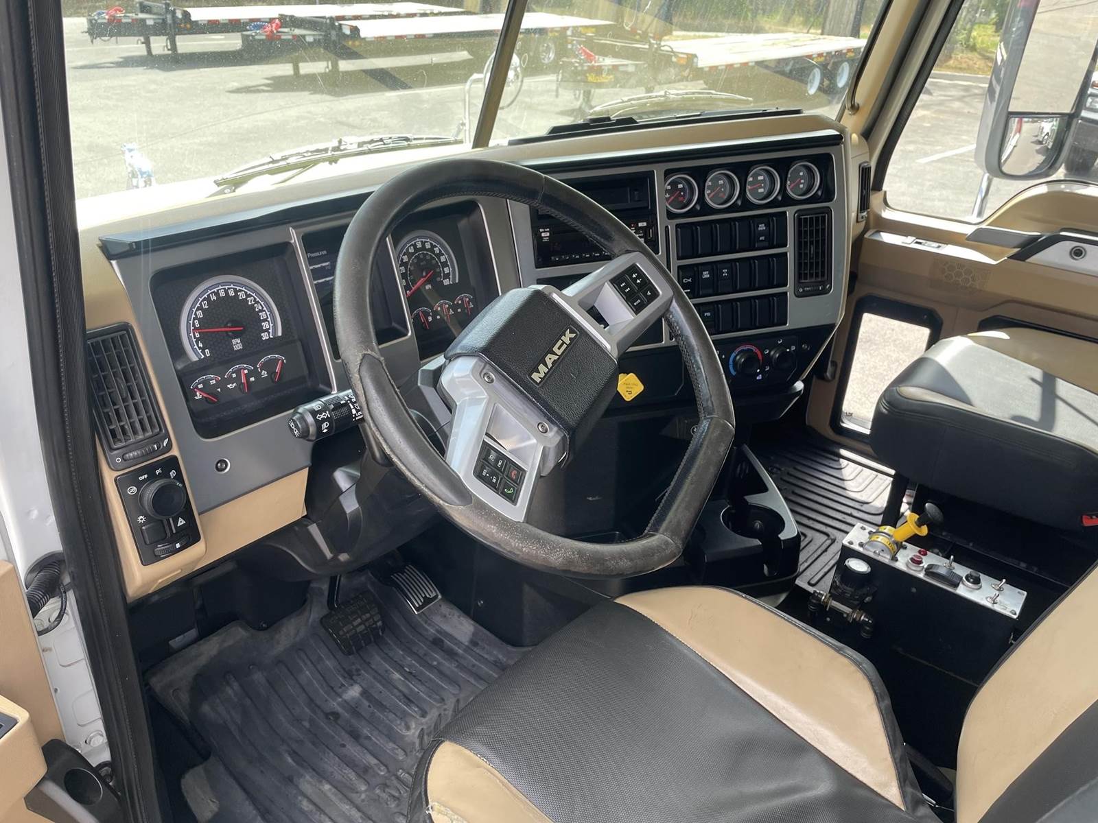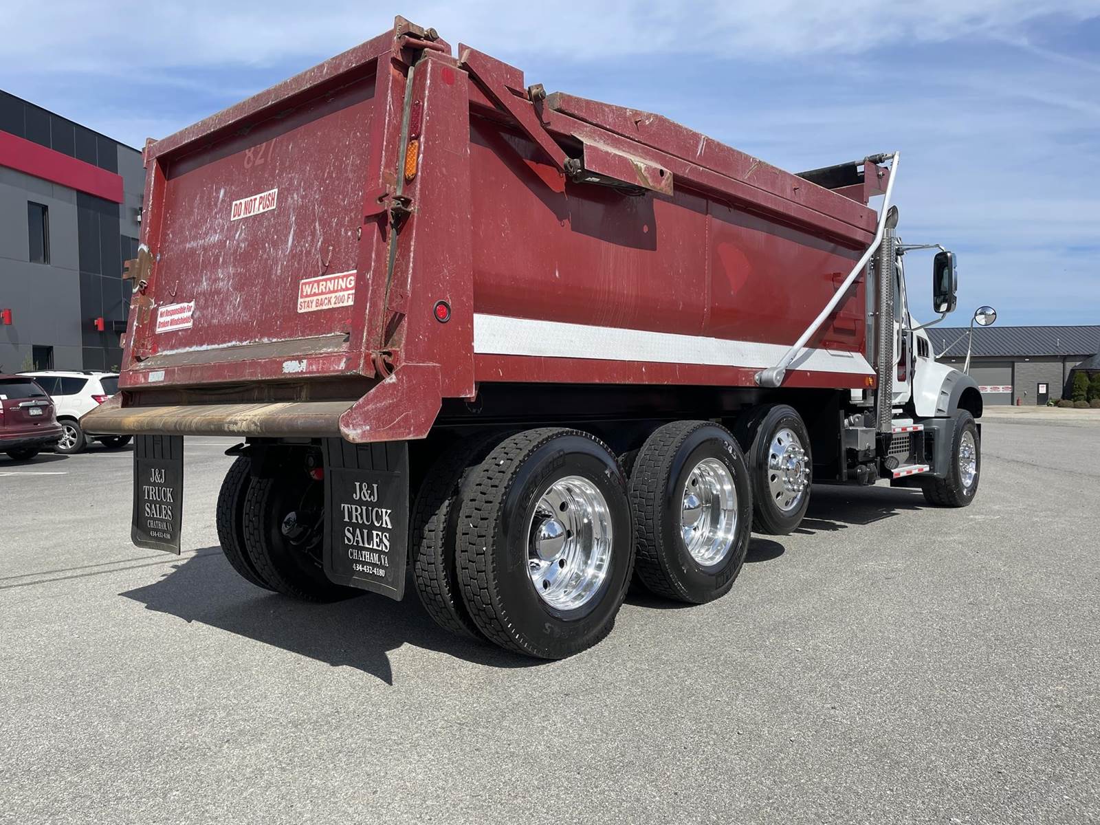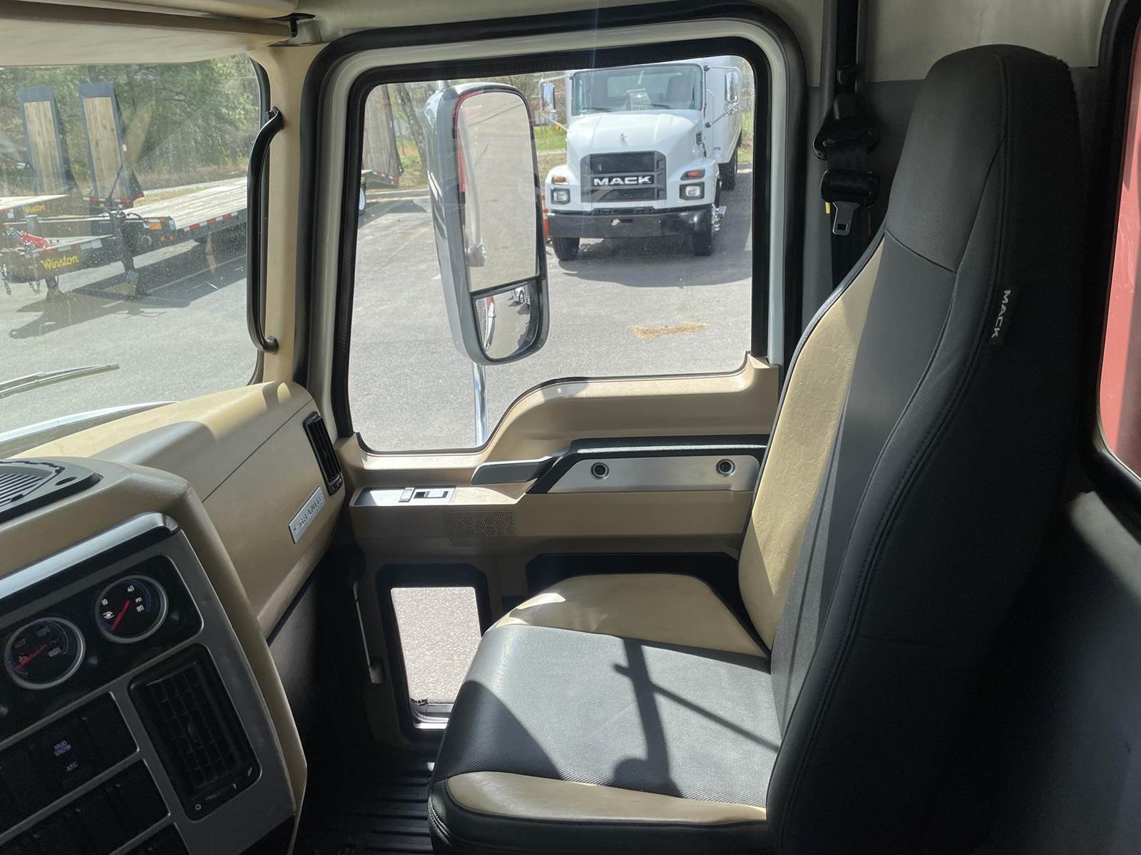 Triaxle, 17' Double A Steel Dump w/50" Sides, High Lift Gate, MP8 Mack 455 HP, Allison Automatic, 3.98 Ratio, 3 Stage Engine Brake, Camelback, Double Frame, 20K FA, 46K RA, Steerable L/A, 230" WB, 21'4" Bridge, Diff Lock, Wheel Lock, Electric Tarp, Air/High Lift Tailgate, Bed Vibrator, P/S, A/C, AM/FM CD Bluetooth, Heated Mirrors, Cruise, Tilt/Tele Wheel, Power Windows, Locks, and Mirrors, High Back Seats, 125 Gallon Aluminum Fuel Tank, 385/65R22.5 Steer Tires on Aluminum Wheels, 11R24.5 Drive Tires on All Aluminum Wheels, Chrome Bumper