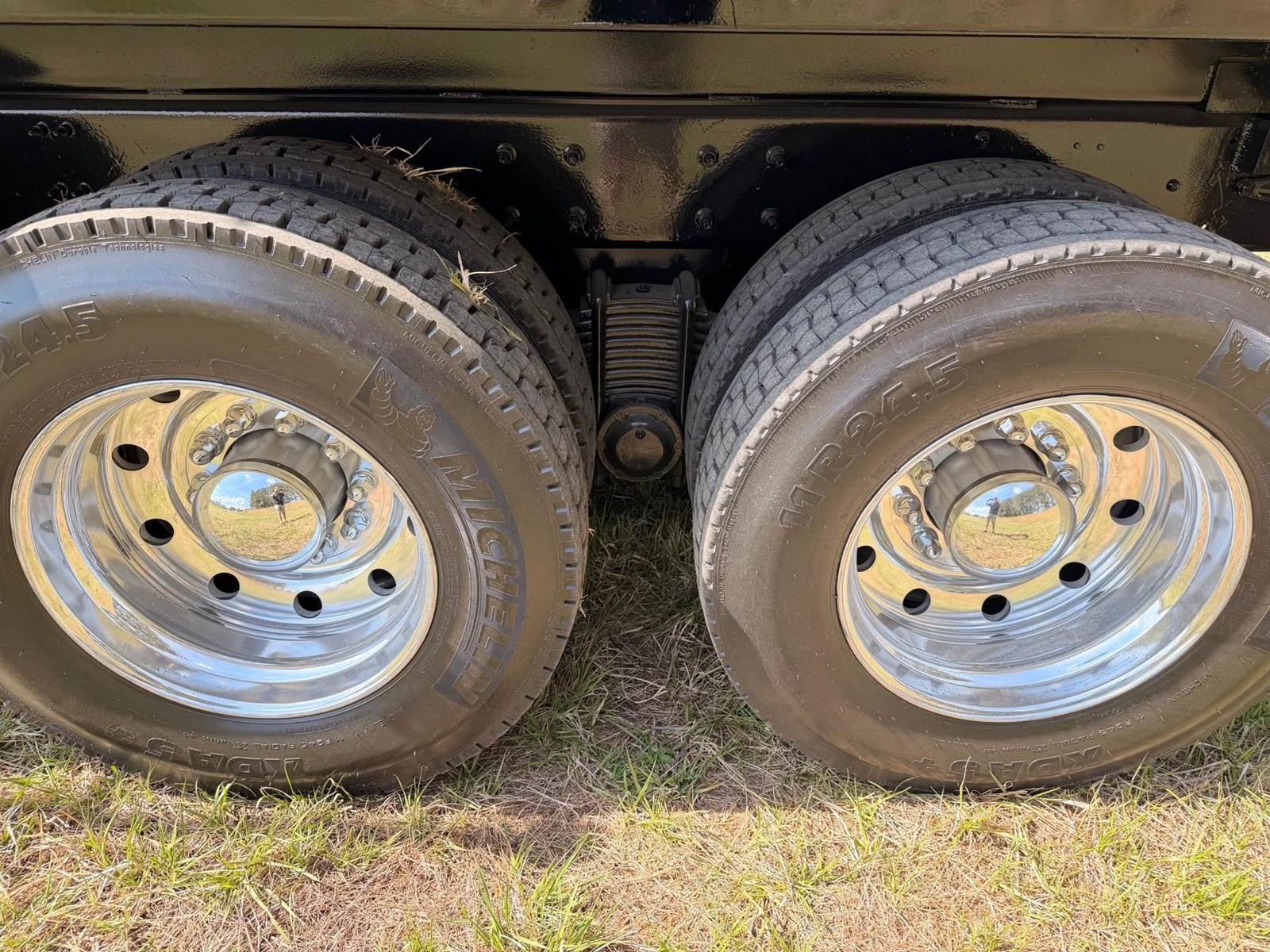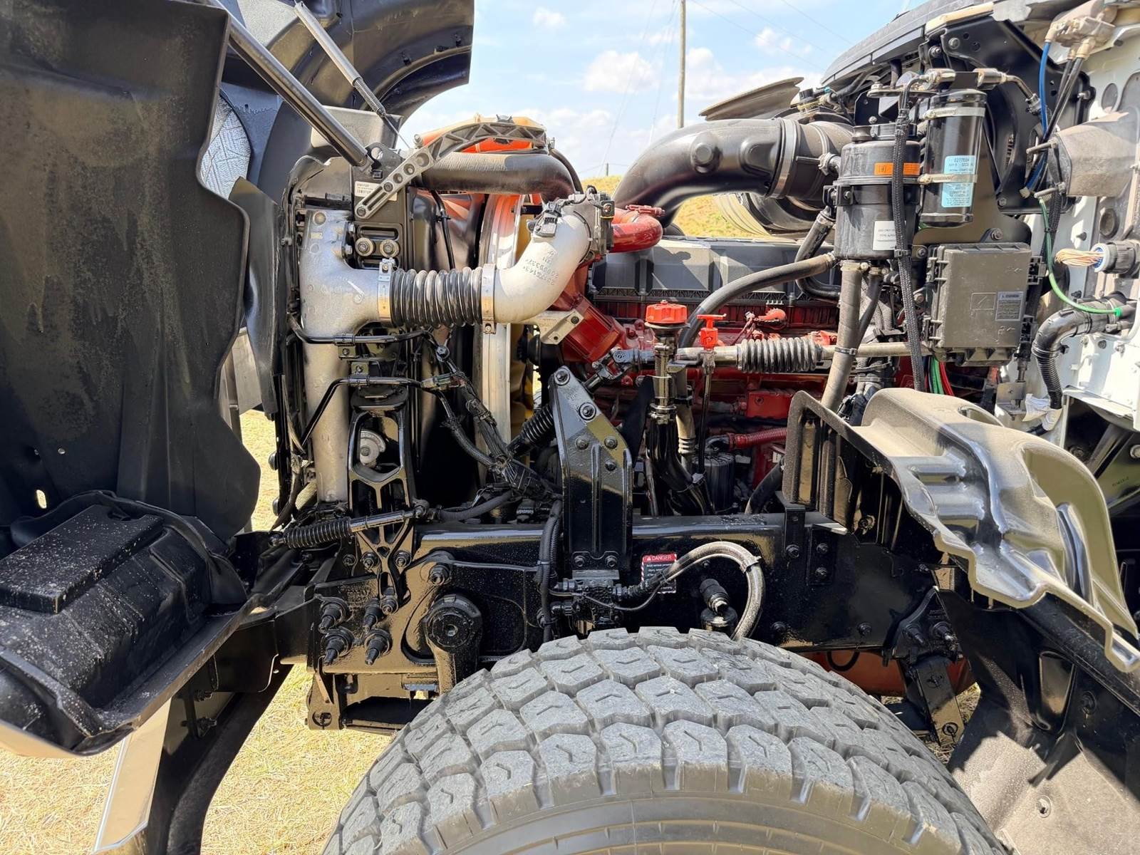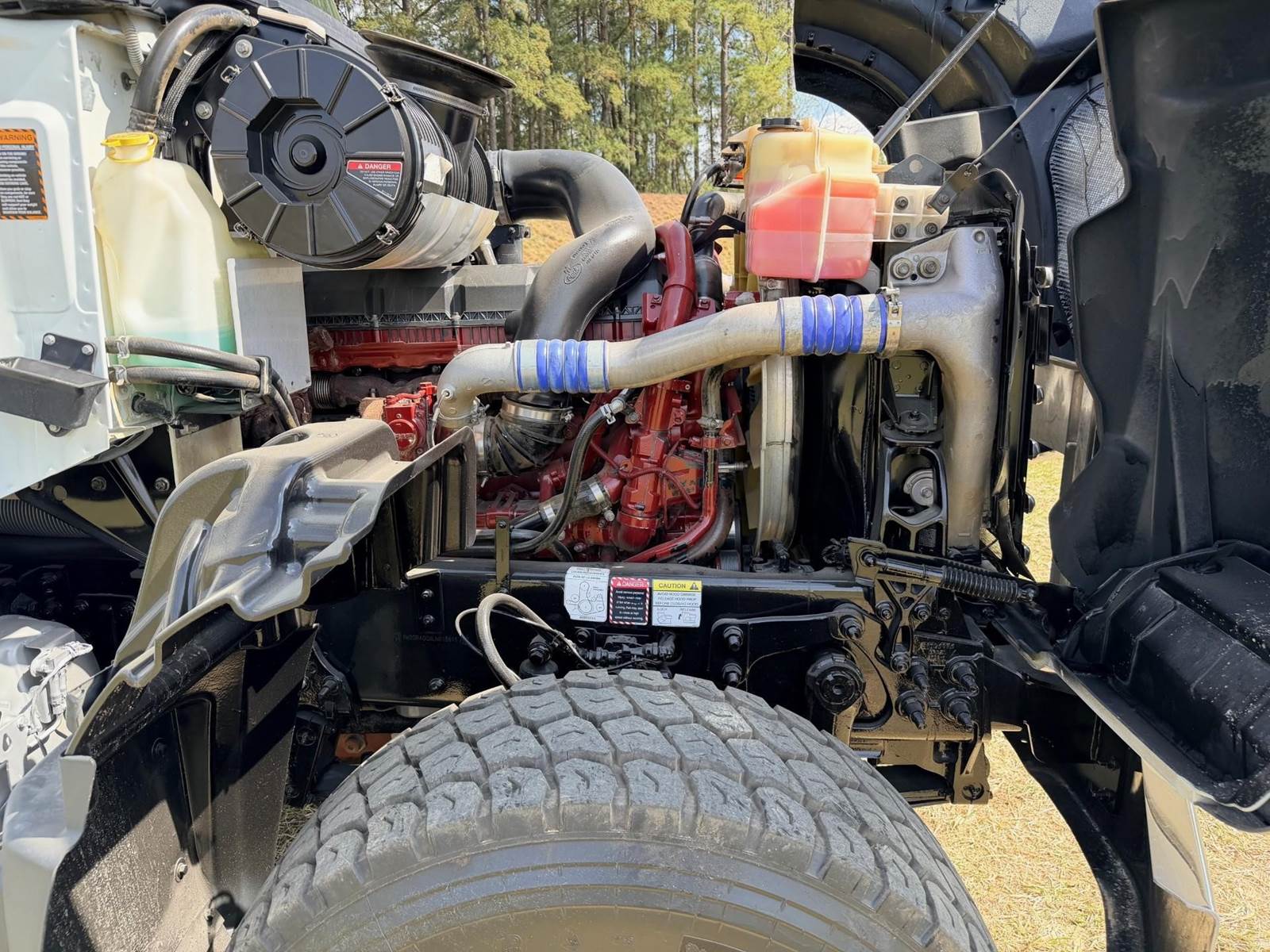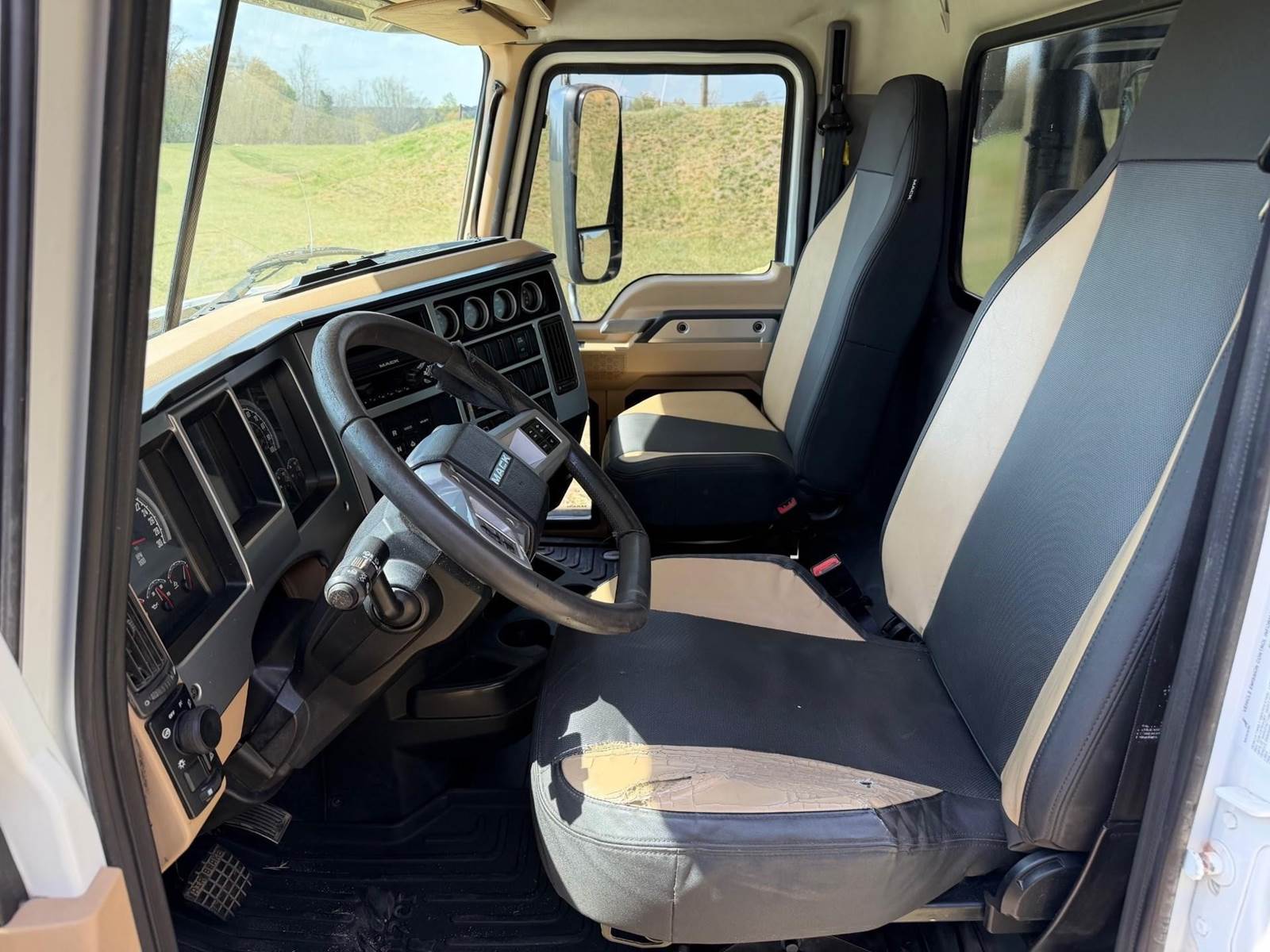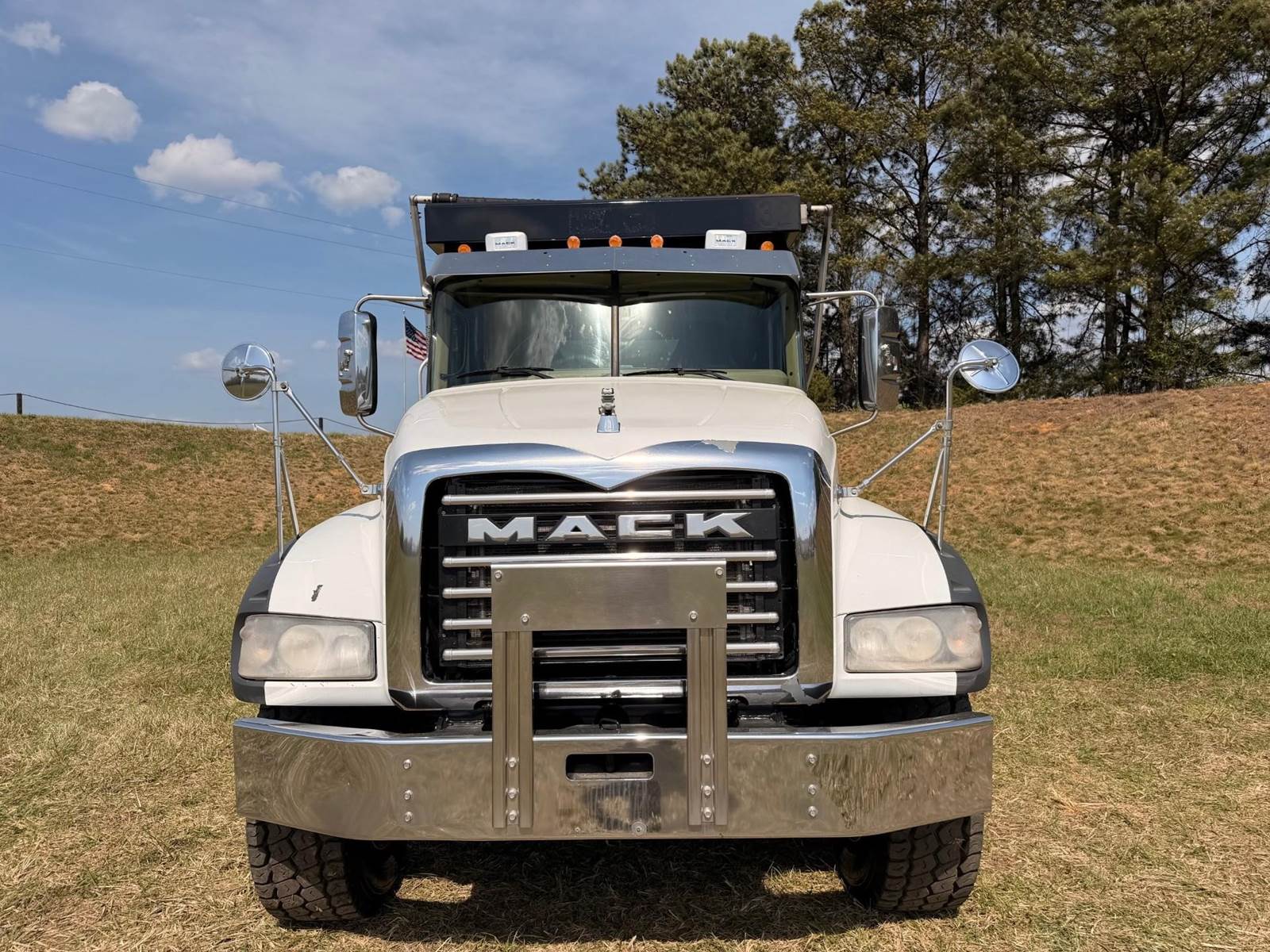 Triaxle, 17' Double A Steel Dump w/50" Sides, High Lift Gate, MP8 Mack 455 HP, Allison Automatic, 3.98 Ratio, 3 Stage Engine Brake, Camelback, Double Frame, 20K FA, 46K RA, Steerable L/A, 230" WB, 21'4" Bridge, Diff Lock, Wheel Lock, Electric Tarp, Air/High Lift Tailgate, Bed Vibrator, P/S, A/C, AM/FM CD Bluetooth, Heated Mirrors, Cruise, Tilt/Tele Wheel, Power Windows, Locks, and Mirrors, High Back Seats, 125 Gallon Aluminum Fuel Tank, 385/65R22.5 Steer Tires on Aluminum Wheels, 11R24.5 Drive Tires on All Aluminum Wheels, Chrome Bumper