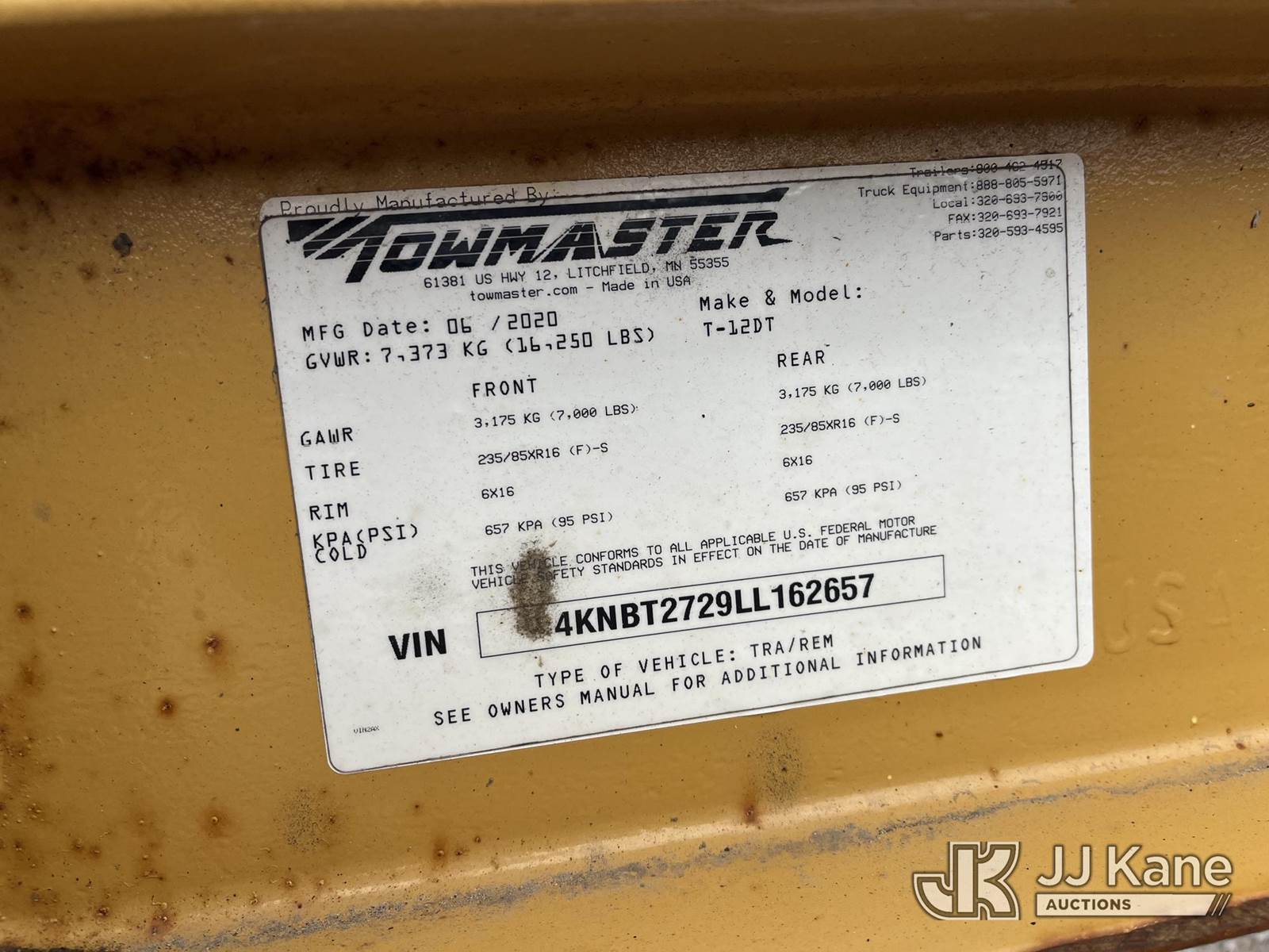 2020 Monroe Towmaster T-12DT T/A Tilt Deck Tagalong Equipment Trailer, with 20ft x 6.5ft level deck between wheels & 2ft dove tail, (Deck & Rust Damage) This is a Titled Item NOTE: This unit is being sold AS IS/WHERE IS via Timed Auction and is located in Smock, PA. For pre-sale questions, please contact Alaina White @ 724-562-2575 or Alaina.White@JJKane.com. JJ Kane Smock, PA yard is open for inspection on the Friday and Monday before the sale date from 8:00 am to 3:00 pm. REMOVAL: All items must be removed by 10 calendar days after the sale, Monday - Friday (Excluding Holidays). (Buyer is responsible for removal. Assistance by consignor or JJ Kane Auctioneers is not assured.)