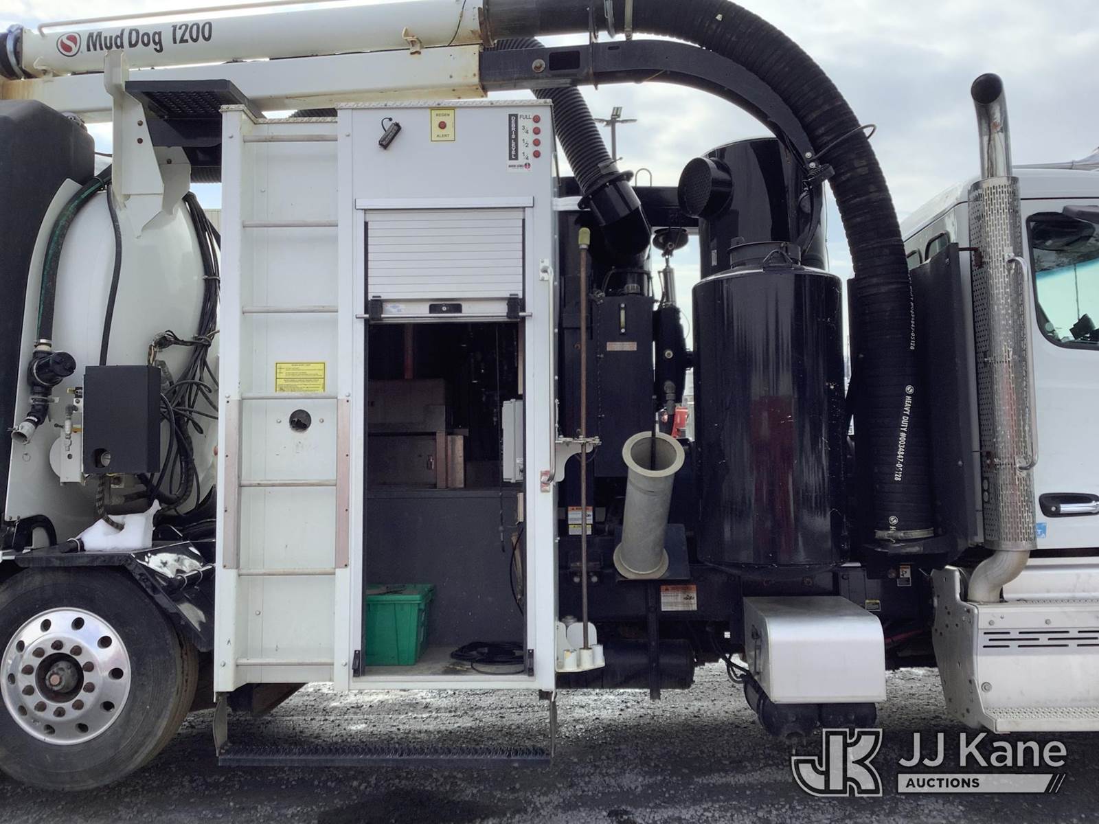 Mud dog MD1200, Hydro Excavator mounted on 2020 Peterbilt 377 Vacuum Excavation Truck, 11.9L L6 Diesel, Auto, A/C, (87,138 miles) (Runs & Moves, Check Engine Light On, Vacuum Conditions Could Not Be Verified, Leak At PTO Pump, Damaged Remote, Inop LED Light Bar At Rear, Hose & Fittings Disconnected From Rear Gate, Damaged Frame Of Gate Rim, Damaged Cover For Water Line Port, Inop Pressure Gauge At Water Pump, Inop Hot Water Heater) (Reads 7,008 hours) This is a Titled Item NOTE: This unit is being sold AS IS/WHERE IS via Timed Auction and is located in Frederick, MD. Inspection & preview days for this location are by appointment only, item is located at 1434 Hughes Ford Rd Frederick, MD 21701 and hours of operations are 7am. to 3:30pm . For pre-sale questions, please contact Kevin Waggoner at (707) 210-4879 or Kevin.Waggoner@JJKane.com. (Buyer is responsible for removal. Assistance by consignor or JJ Kane Auctions is not assured.)