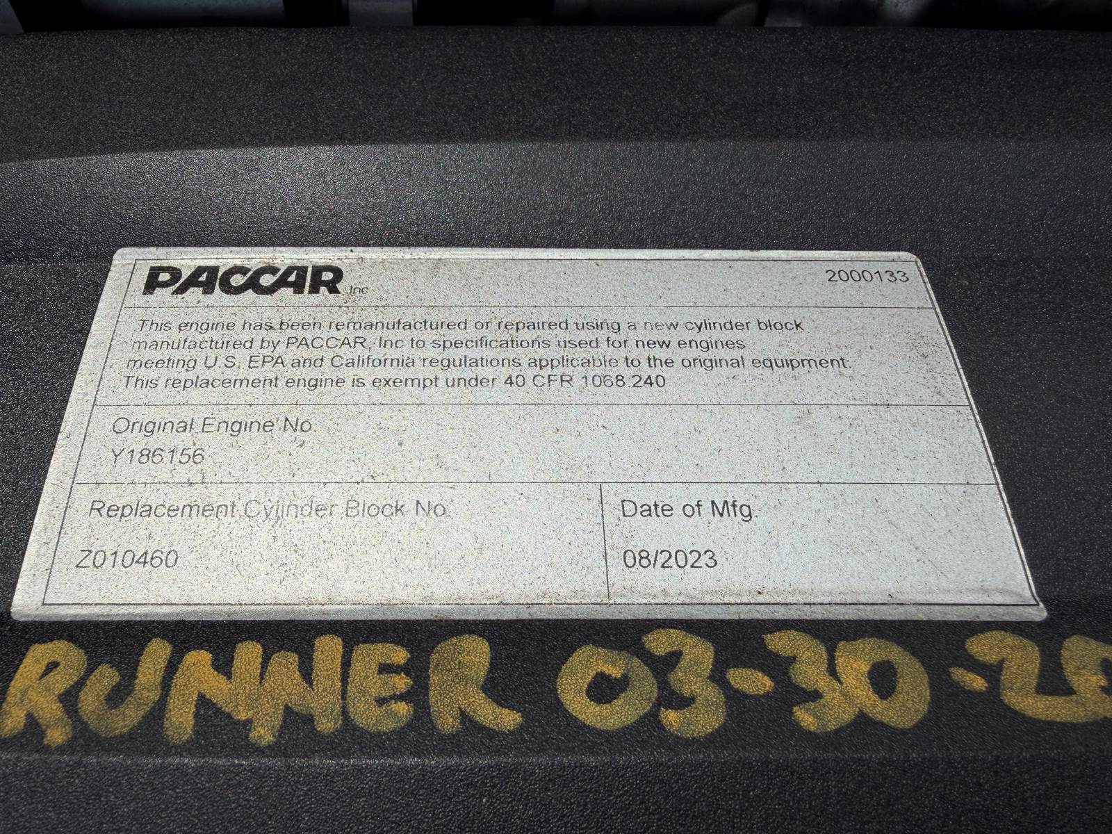 (OEM REMAN/ RUN TESTED/ FULLY INSPECTED) 2020 Paccar MX-13 Diesel Engine (EPA17), OEM REMAN Serial # Z006907, Serial # Y140121, Displacement...