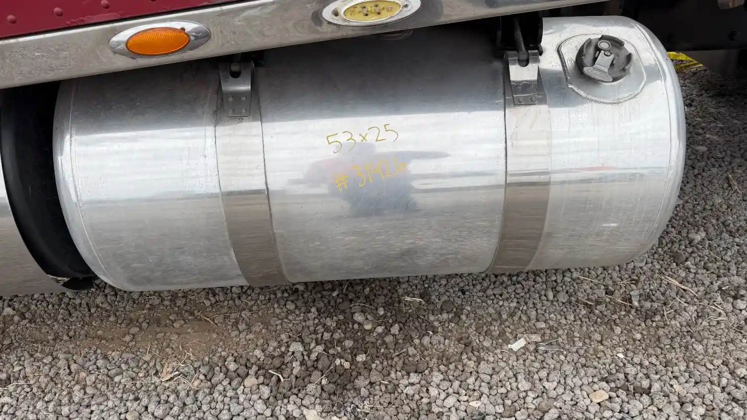 GOOD USED LH FUEL TANK ASSY 53X25, Dimensions: 53X25, Material: Aluminum, Fuel Tank Shape: Round