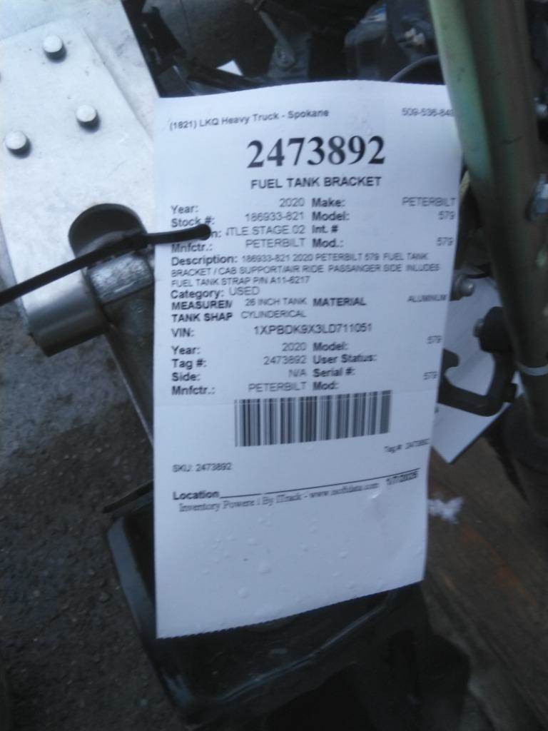 186933-821 2020 PETERBILT 579 FUEL TANK BRACKET / CAB SUPPORT/AIR RIDE PASSANGER SIDE INLUDES FUEL TANK STRAP P/N A11-6217