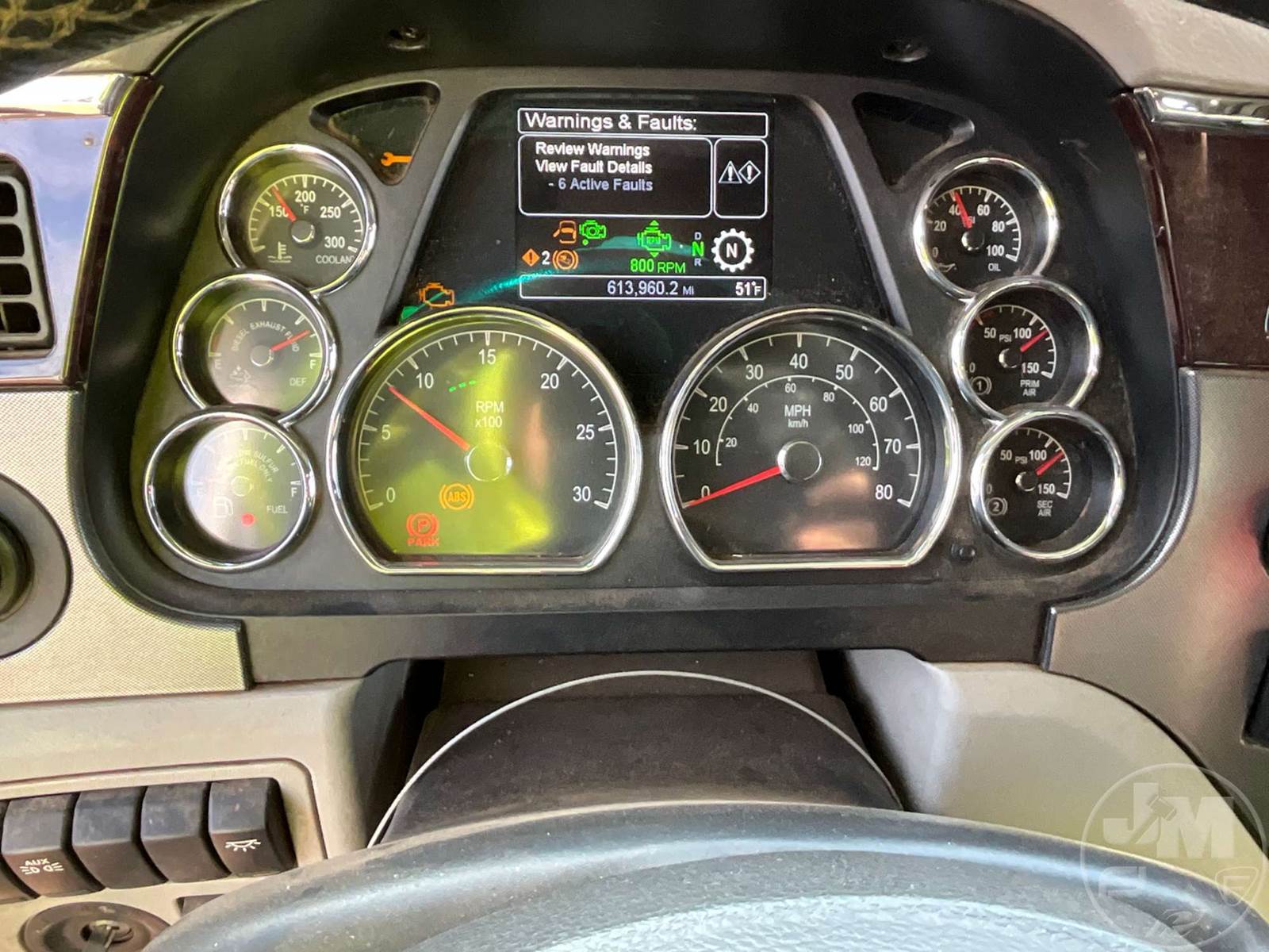 TANDEM AXLE TRUCK TRACTOR, PACCAR, MC13, HP 455, AUTOMATIC, AIR RIDE SUSPENSION, DRUM, 218 " WB, C/A: 84, 13.2K FRONT, 40K REARS, 53200 GVWR, A/C, AIR DRIVERS SEAT, DUAL AIR SEATS, CRUISE CONTROL, NAVIGATION, POWER WINDOWS, POWER DOOR LOCKS, POWER MIRRORS, ENGINE BRAKE, DIFF LOCK, SLEEPER SIZE 64", REFRIGERATOR, ALUM DISC FRONT & OUTSIDE REAR WHEELS, AIR SLIDE FIFTH WHEEL, 295/75R22.5 TIRES, ODOMETER READS: 613960