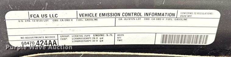 2020 RAM 1500 Ext. Cab pickup truck, VIN: 1C6RR7FT5LS100134, Engine, Displacement: 5.7L, Cylinders: 8, Fuel type: Gas, HP: 395,...