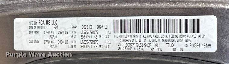 VIN: 1C6RR7FT0LS100137