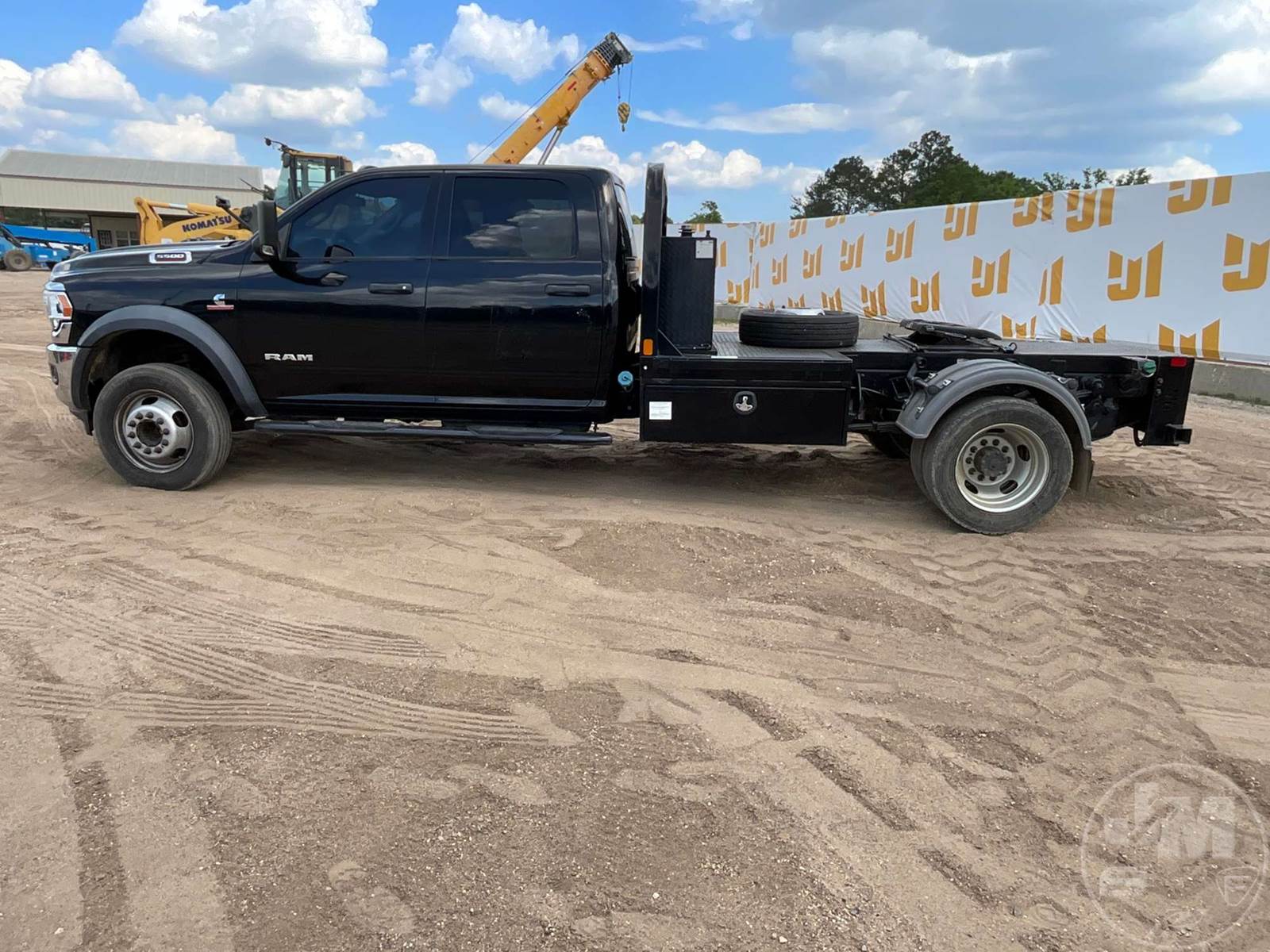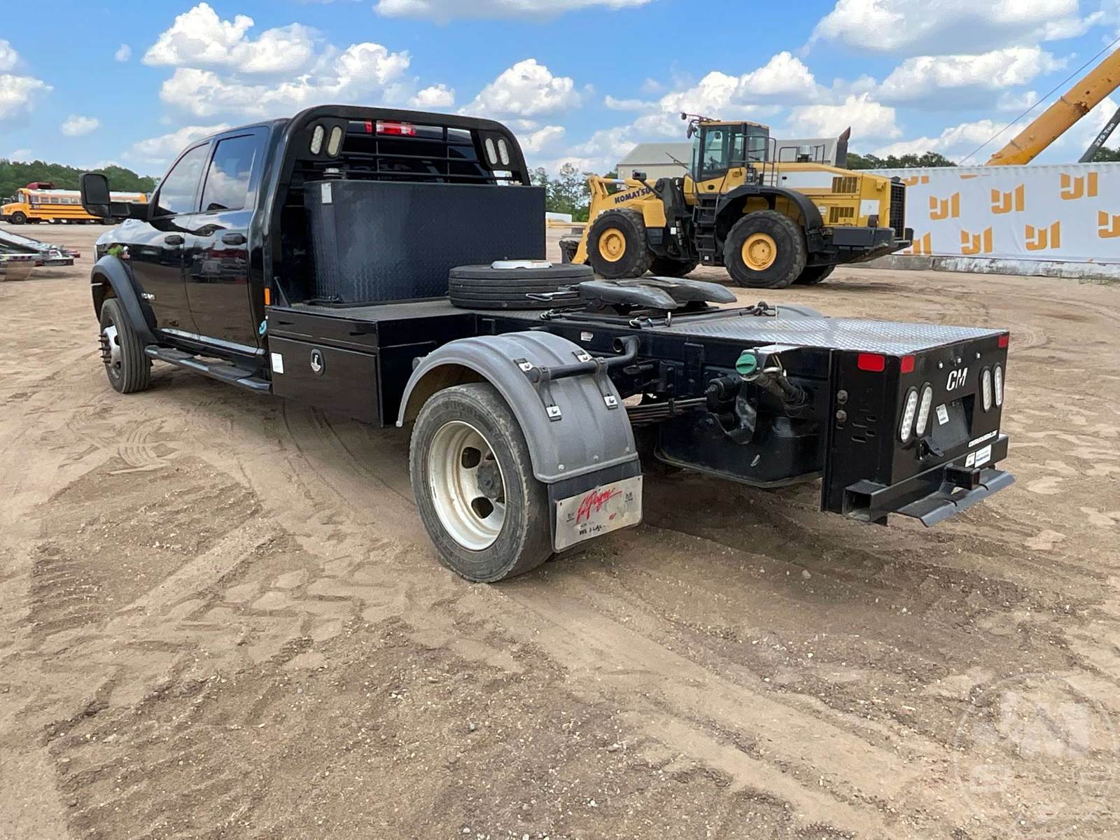 SINGLE AXLE CREW CAB 4X4 FLATBED TRUCK, STEEL BED, CUMMINS, 6.7 TURBO, AUTOMATIC, 225/70R19.5 TIRES, HAS 5TH WHEEL PLATE, ODOMETER READS: 189351