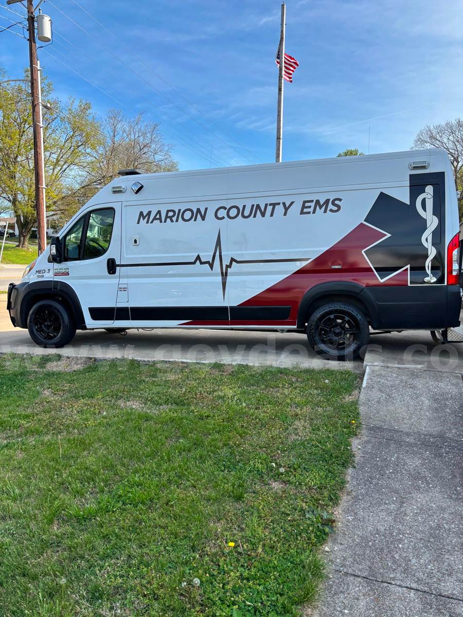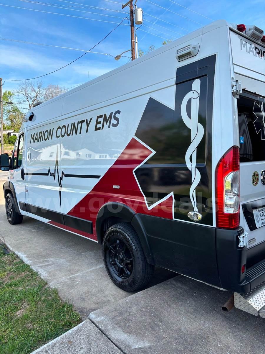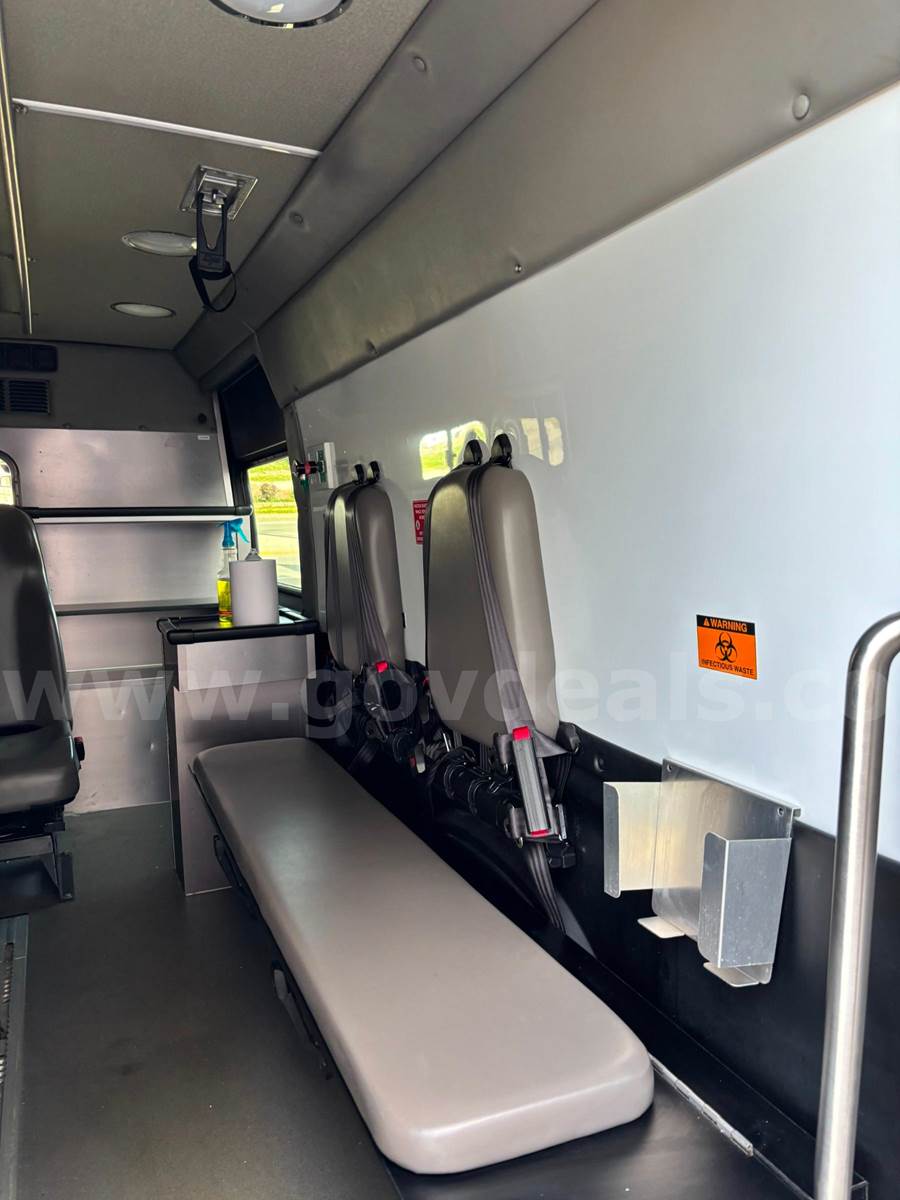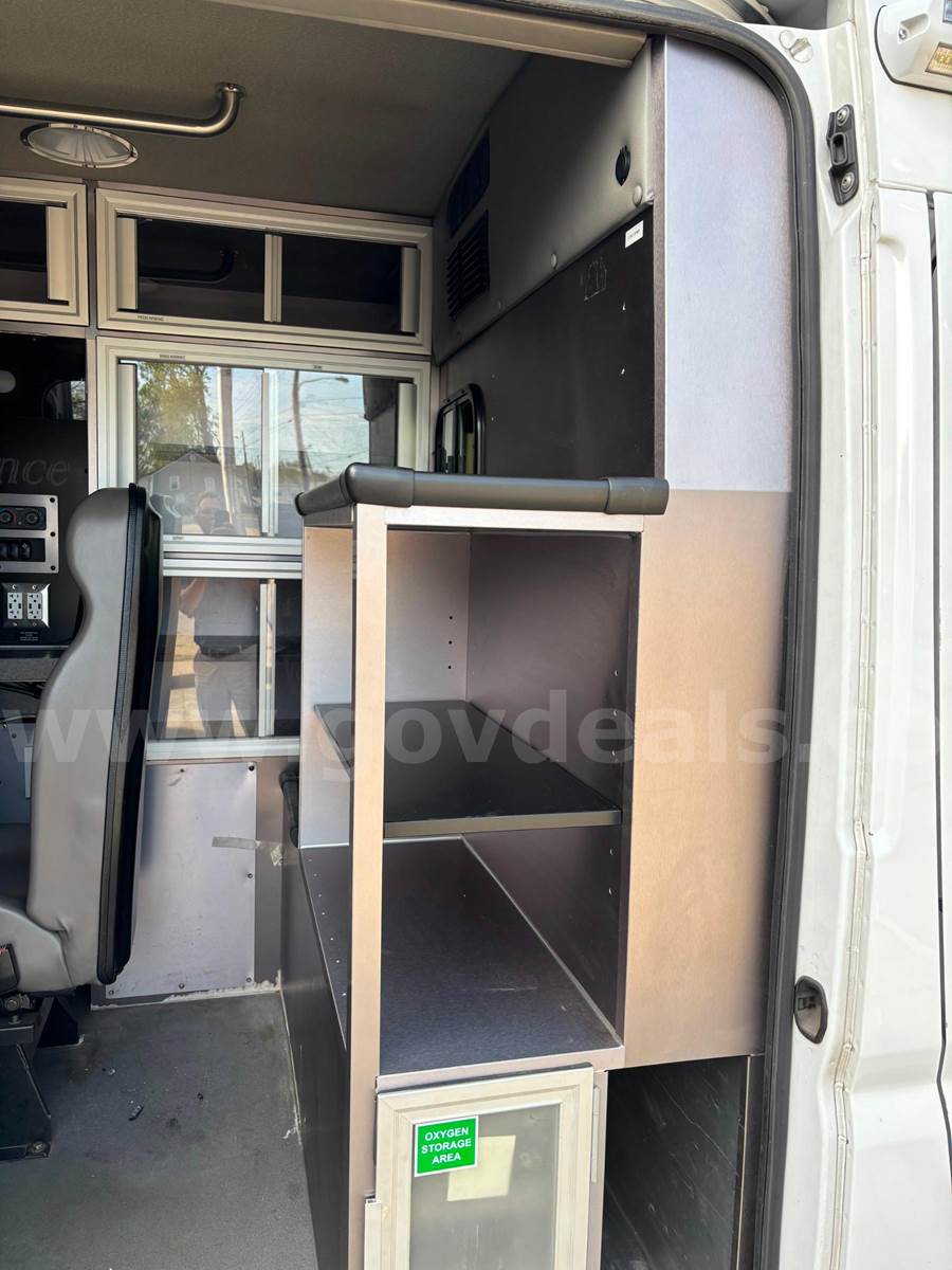 2020 RAM Promaster Ambulance, 3.6L V6. Vehicle starts, runs, and drives. Gas engine is operable. Automatic transmission is operable. Exterior is white, red, and black. No cracked glass. Interior is in good shape. AC/Heat works well. Interior height of rear compartment is 72".