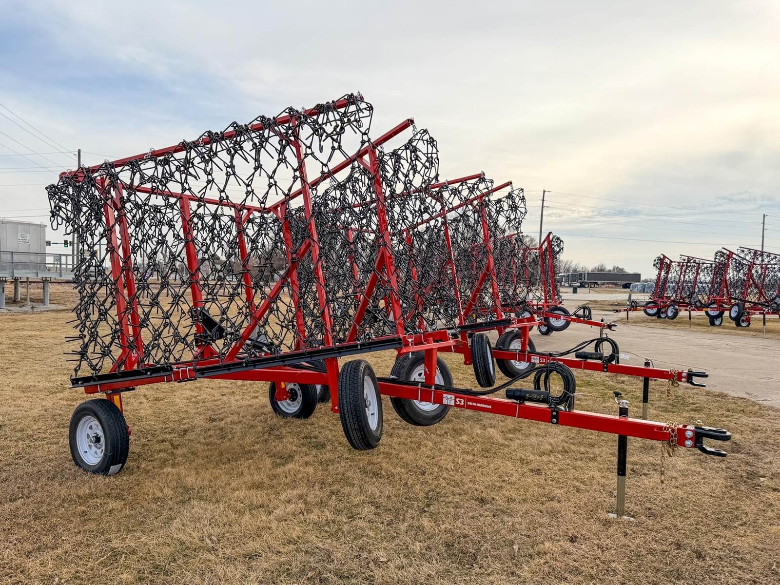Enjoy $0 Down Financing with No Payments for 6 Months, Affordable Nationwide Delivery, and Unbeatable Prices! New Delta 32 Harrow with a 32' working width, hydraulic lift, hydraulic fold, cold formed, 1/2" thick two-way 15" flexible tines with extra long bolt-through spindles, adjustable floating pull bars, reinforced axles, and a 1" solid steel hydraulic cylinder mount. Optional hydraulic wing forward option. The ideal harrow for landowners, arena operators, grounds keepers and contractors!