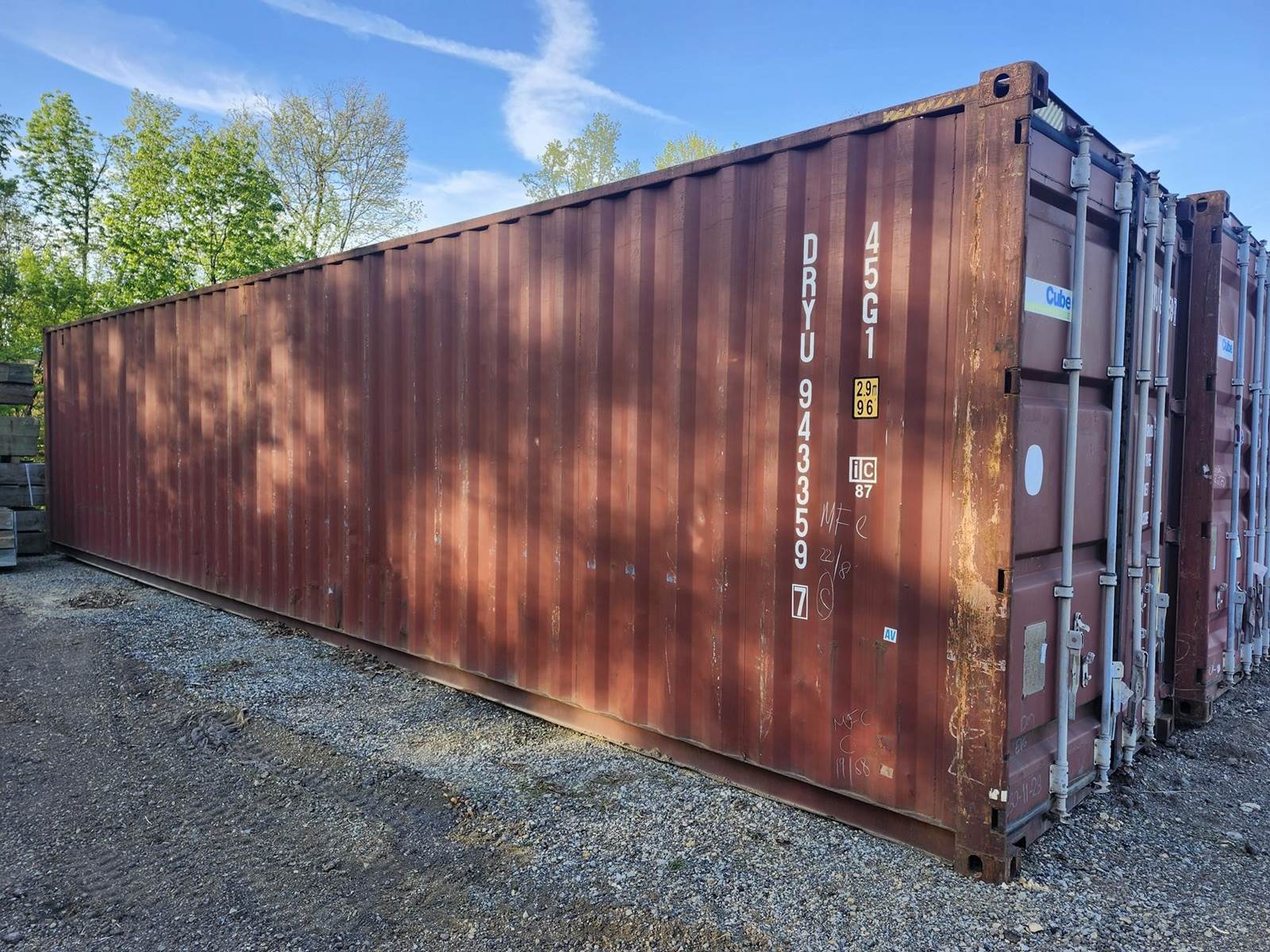 A SeaCube 45G1 is a 40-foot High Cube (HC) dry storage shipping container designed for, international multimodal transport of non-perishable goods. Offers a high interior capacity, often around 76.2 m³ to 76.4 m³ (approx. 2,698 cu. ft.). The "High Cube" designation provides an extra foot of height compared to standard dry containers (which are 8'6" tall), allowing for more volume. Constructed from durable, corrosion-resistant corten steel with double doors at one end. Suitable for light, voluminous, or bulky cargo, such as auto parts, consumer goods, and industrial equipment.