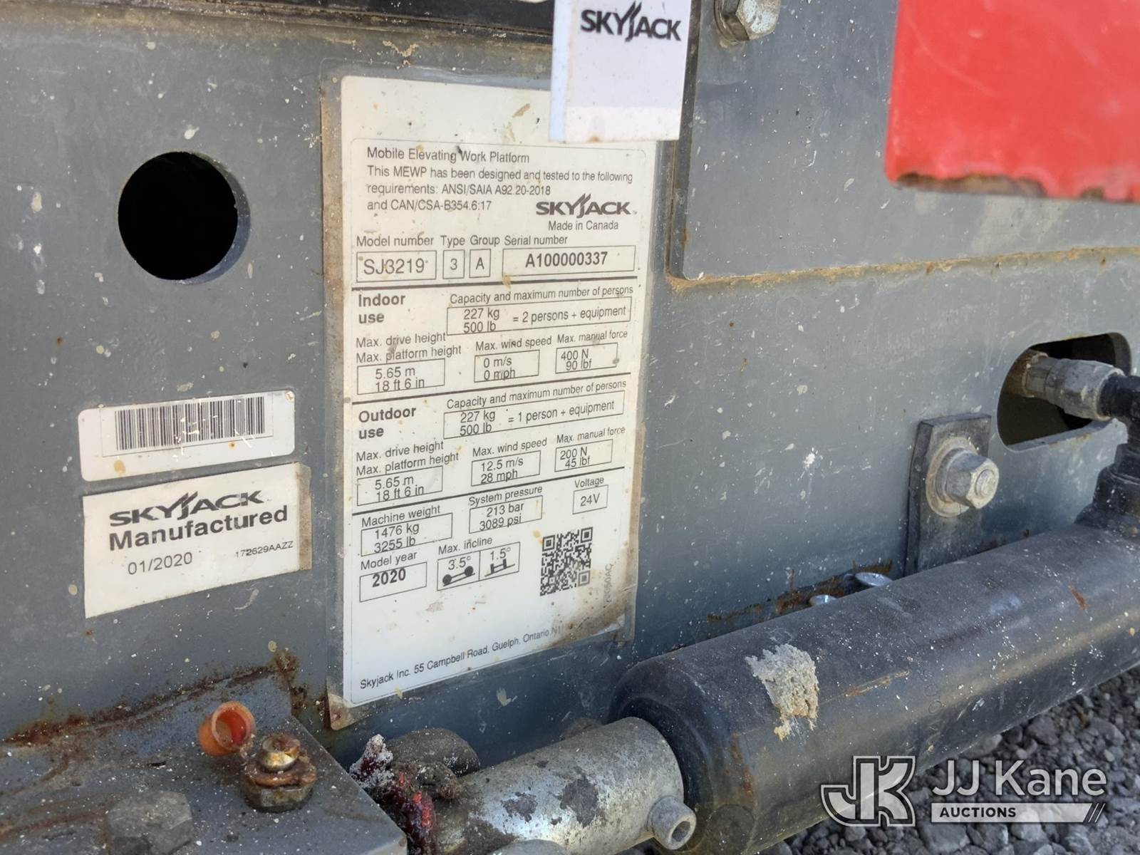2020 SkyJack 3219 Self-Propelled Scissor Lift, s/n A100000337, electric, (Runs, Moves & Operates) NOTE: This unit is being sold AS IS/WHERE IS via Timed Auction and is located in Graysville, AL. Inspection & preview days for this unit are by appointment only; please contact us at contact@jjkane.com or 84-Go-JJKane for more details. Alabama Auctioneer Michael Whitebread - License # 5592 (Buyer is responsible for removal. Assistance by consignor or JJ Kane Auctions is not assured.)