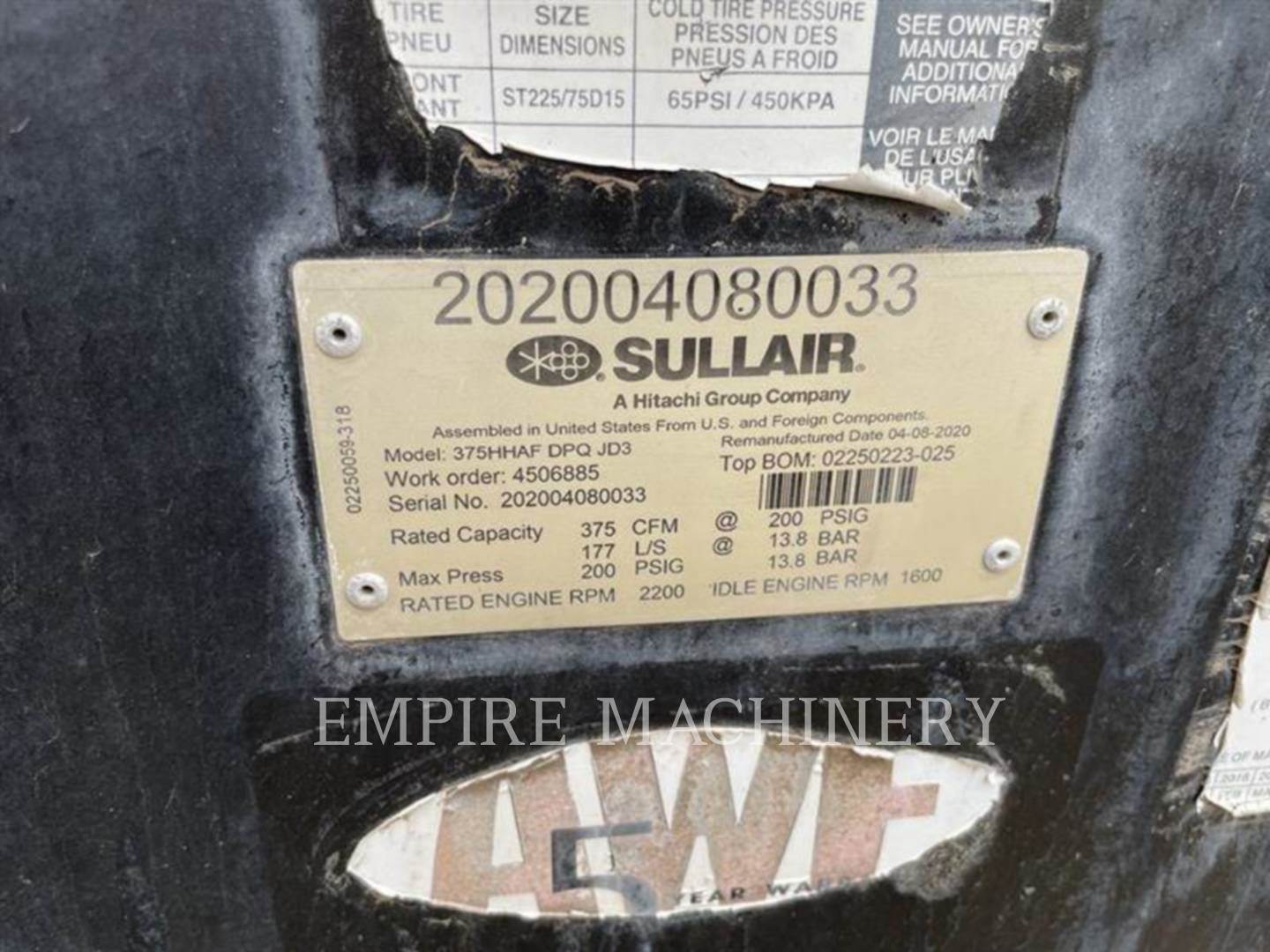 2020 Sullair DPQ375HHAF Air Compressor