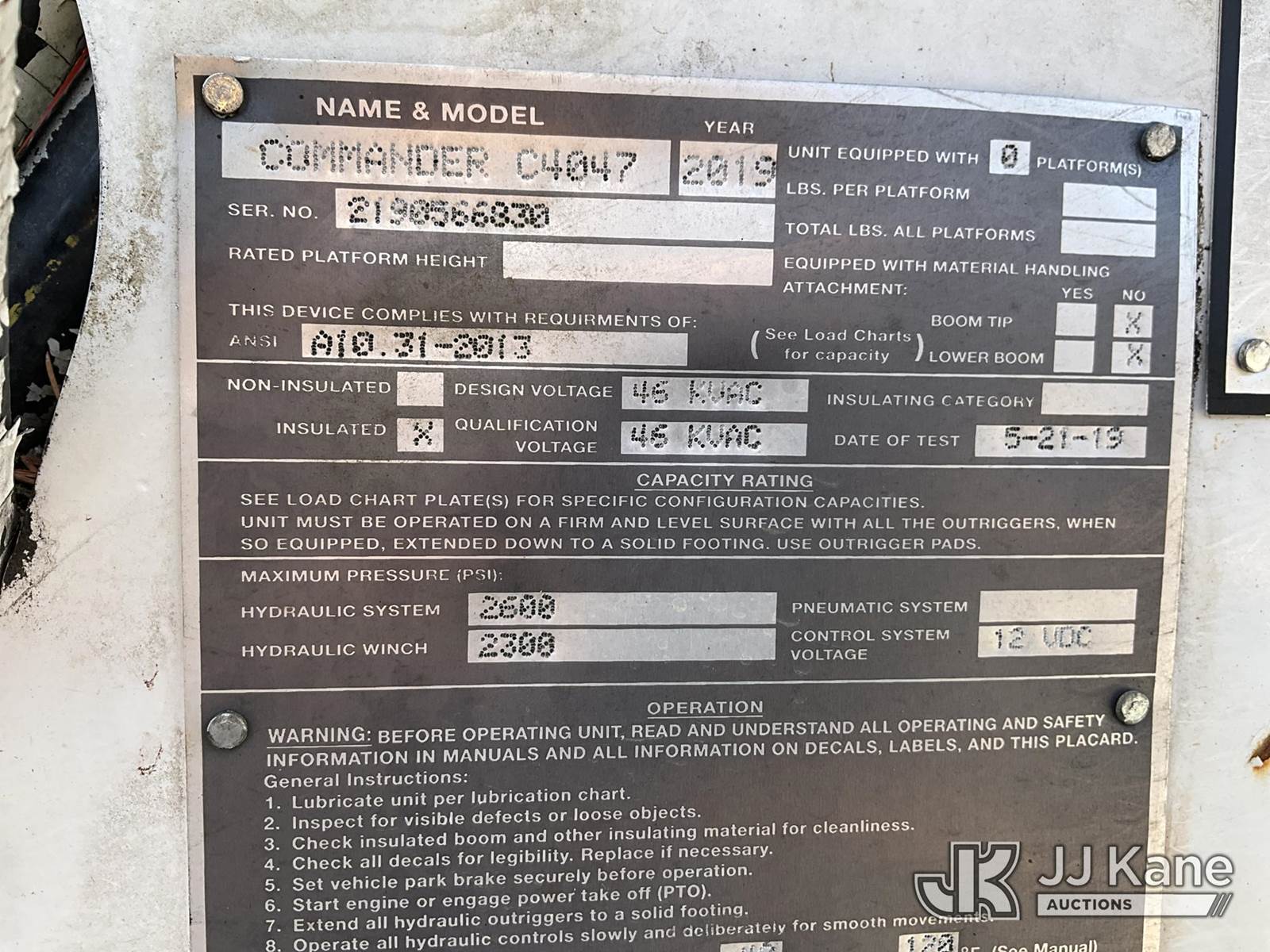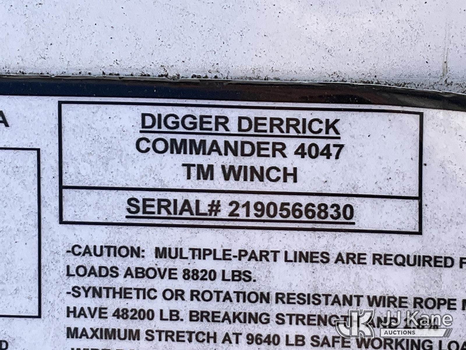 Telelect Commander C4047, 23,660 Lb Digger Derrick s/n 2190566830, with 47 ft sheave height, 2 spd digger, heel winch, pole grabs & riding console, rear mounted on 2020 Freightliner M2 106 Utility Truck, Cummins 6.7L diesel, Auto, A/C, with front winch, (59,082 miles) (Runs, Moves & Upper Operates) (Unit Operated During Inspection, When Stowing The Unit It Blew A Hyd Line, DO NOT OPERATE) This is a Titled Item NOTE: This unit is being sold AS IS/WHERE IS via Timed Auction and is located in China Grove, NC. Inspection & preview days for this unit are the 2 business days prior to the first day of items closing for this auction, item is located at 820 E NC Hwy 152 China Grove, NC 28023 and hours of operations are 8a-4p. For pre-sale questions, please contact Office Staff @ (704) 674-1113. (Manuals provided in cab) (Buyer is responsible for removal. Assistance by consignor or JJ Kane Auctions is not assured.)
