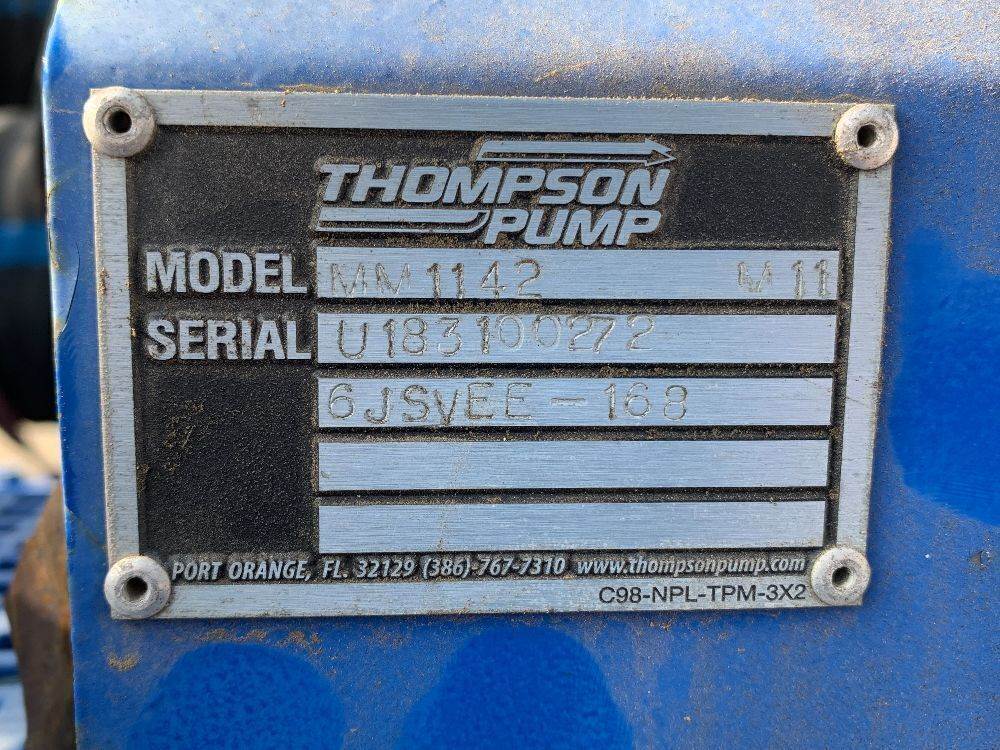 2020 THOMPSON 6NS SOLID VACUUM PUMP, Deutz diesel, 4" pump, portable, 327 hours indicated. s/n:1T9PH1217LP634446