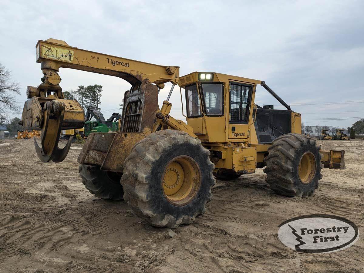 Well-maintained Tigercat 620E with 9,209 hours, rated 7/10 cosmetic and mechanical. Powered by a Fiat N67 Tier 4F engine that starts easy and runs strong, paired with a smooth hydrostatic transmission. Machine is structurally clean and straight with dry cylinders, solid pins, and no visible leaks. Equipped with Tigercat grapple, winch, and blade, plus working AC, heat, radio, lights, and reverse alarm. Recent service completed at 9209 hours including engine oil, axle oils, and filters. A solid, job-ready skidder in good condition for its hours.
