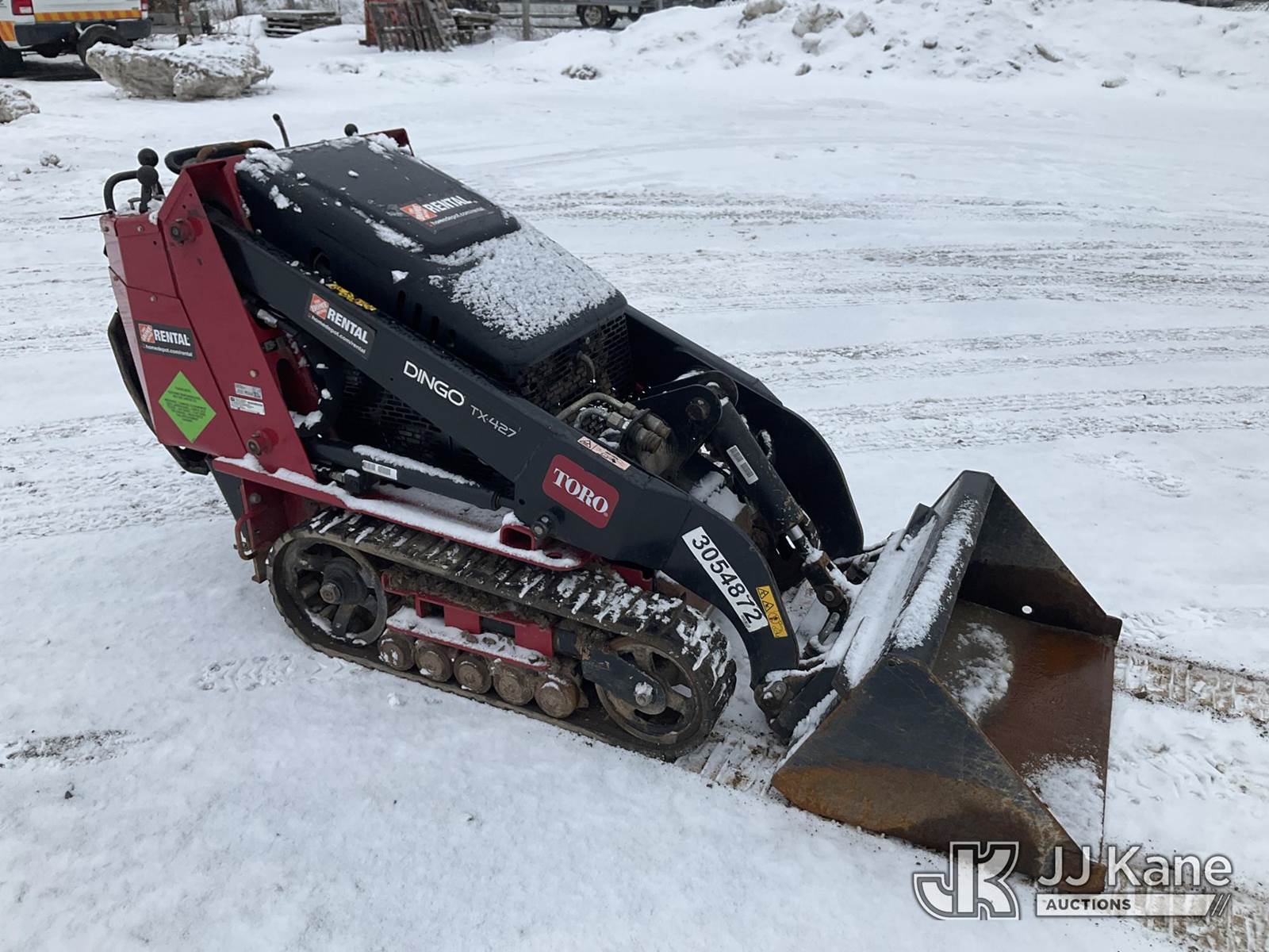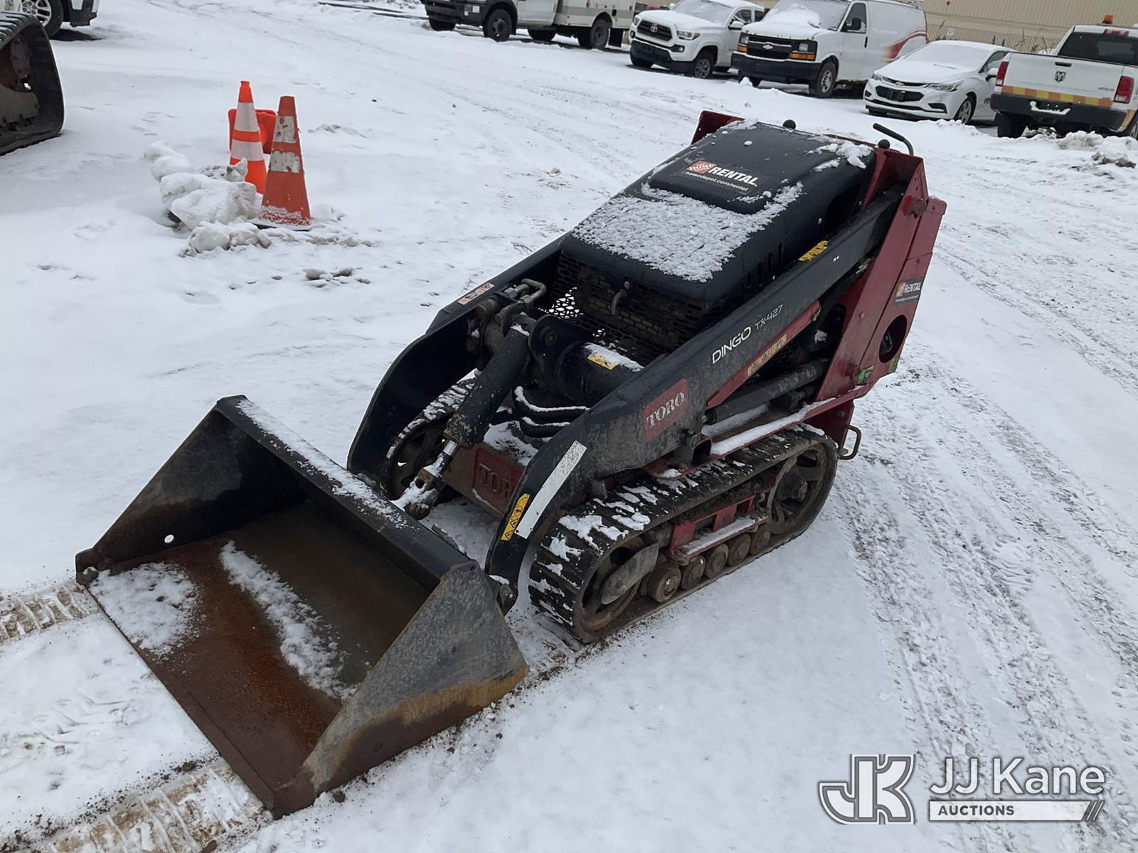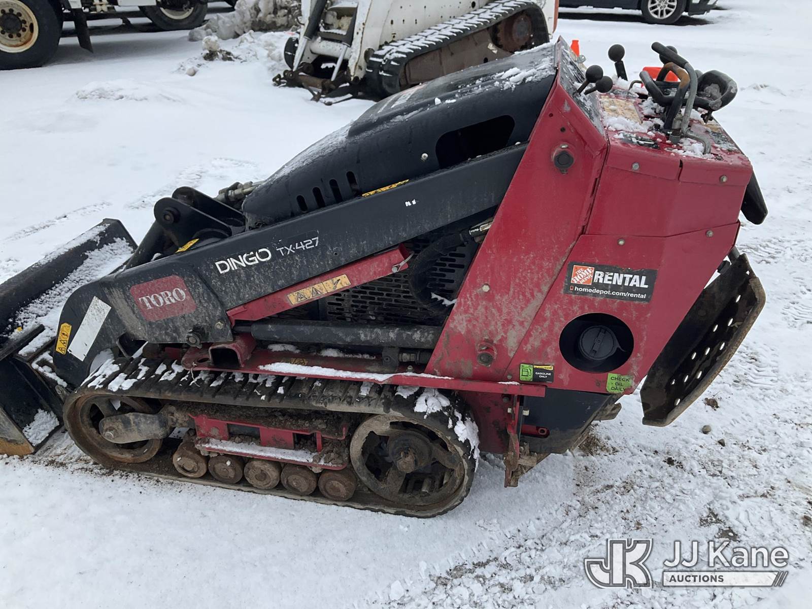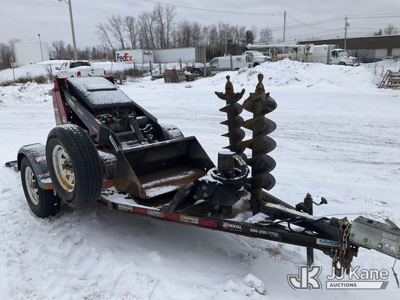2020 Toro Dingo TX-427 Stand-Up Crawler Skid Steer Loader, s/n 407098162, Kohler Hydraulic Driven, electric, with Auger Attachment, (2) Auger Bits, Rubber Tracks, Sold with support trailer: id 1576248 (Runs, Moves & Operates) (Reads 873 hours) NOTE: This unit is being sold AS IS/WHERE IS via Timed Auction and is located in Rome, NY. Inspection & preview days for this unit are the 2 business days prior to the first day of items closing for this auction, item is located at 5835 Success Dr Rome, NY 13440 and hours of operations are 8a-4p. For pre-sale questions, please contact Ryan Jackson @ (315) 749-3790 or Ryan.Jackson@jjkane.com. (Buyer is responsible for removal. Assistance by consignor or JJ Kane Auctions is not assured.)