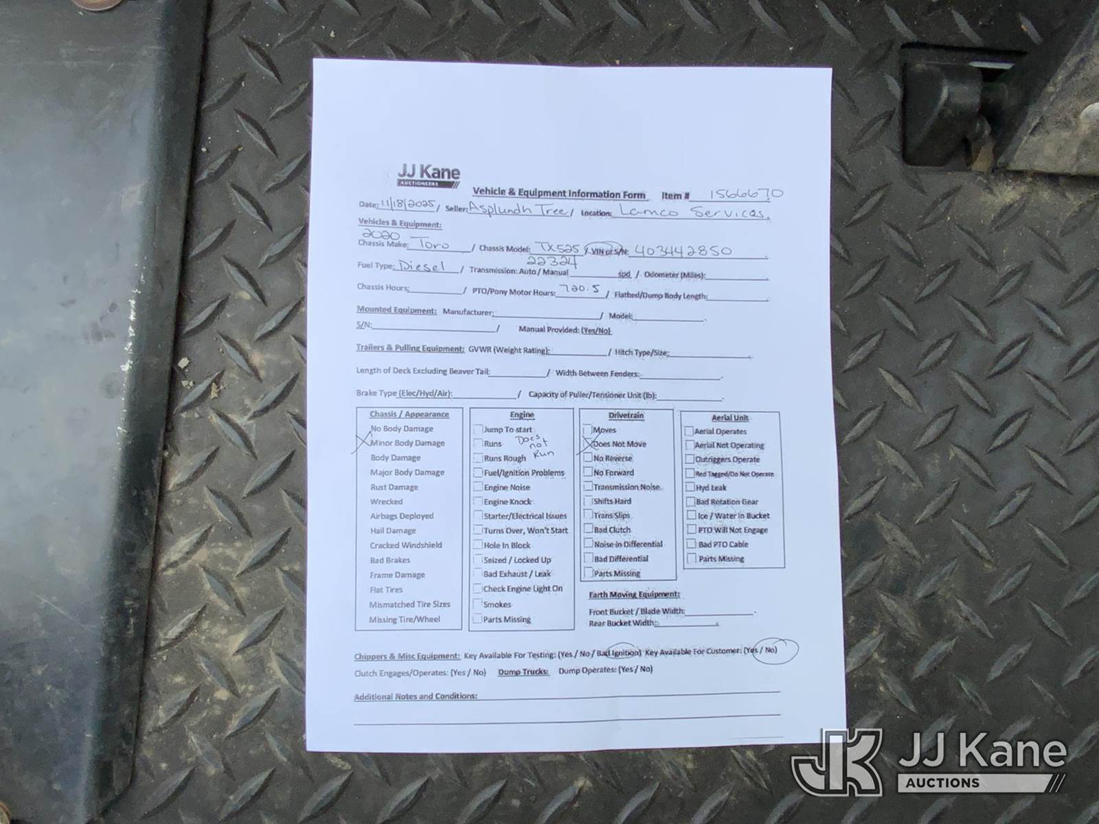 2020 Toro Dingo TX525 Wide Track Walk-Behind Crawler Skid Steer Loader, s/n 403442850, diesel, Hydrostatic, with rubber tracks, (Not Running, Condition Unknown, No Loader Bucket) (Seller States: Bad Engine) (Reads 720 hours) NOTE: This unit is being sold AS IS/WHERE IS via Timed Auction and is located in Graysville, AL. Inspection & preview days for this unit are by appointment only; please contact us at contact@jjkane.com or 84-Go-JJKane for more details. Alabama Auctioneer Michael Whitebread - License # 5592 (Buyer is responsible for removal. Assistance by consignor or JJ Kane Auctions is not assured.)