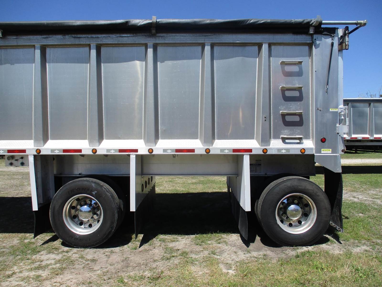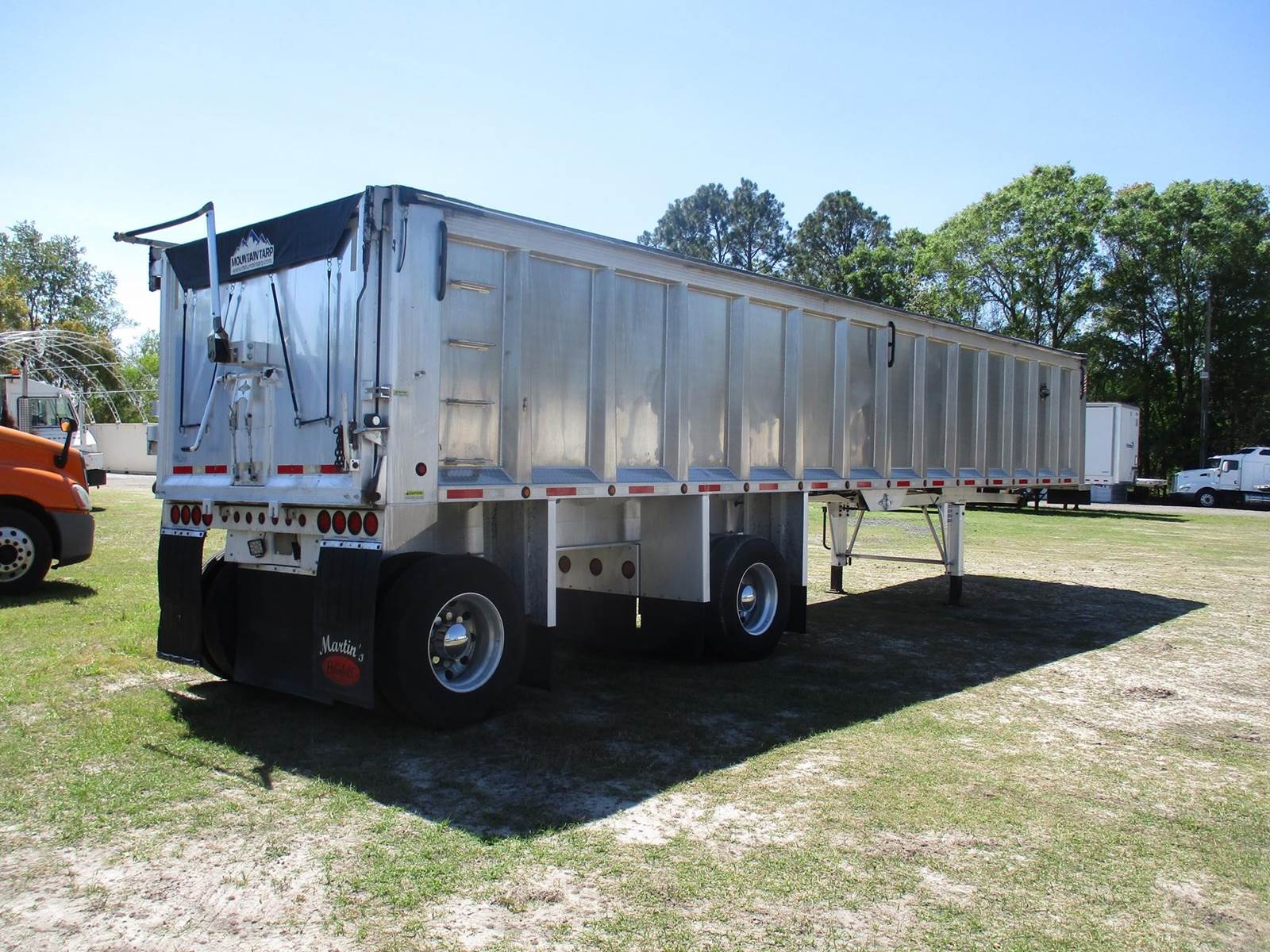 2020 Trailstar 40 Ft End Dump Trailer, 102" Wide, 66" Inside Height, 10' 2" Spread Axle With Air Front Lift Axle, 36 Inch Drop Down Fenders, Smooth Panel Tailgate, Top Hinge, Side Swing And Grain/Coal Door, Air Ride With Dump Valve, Weight Gauge, Recently Installed Electric Mountain Tarp, 22.5 Aluminum Wheels, Jost Aluminum 2 Speed Landing Gear.