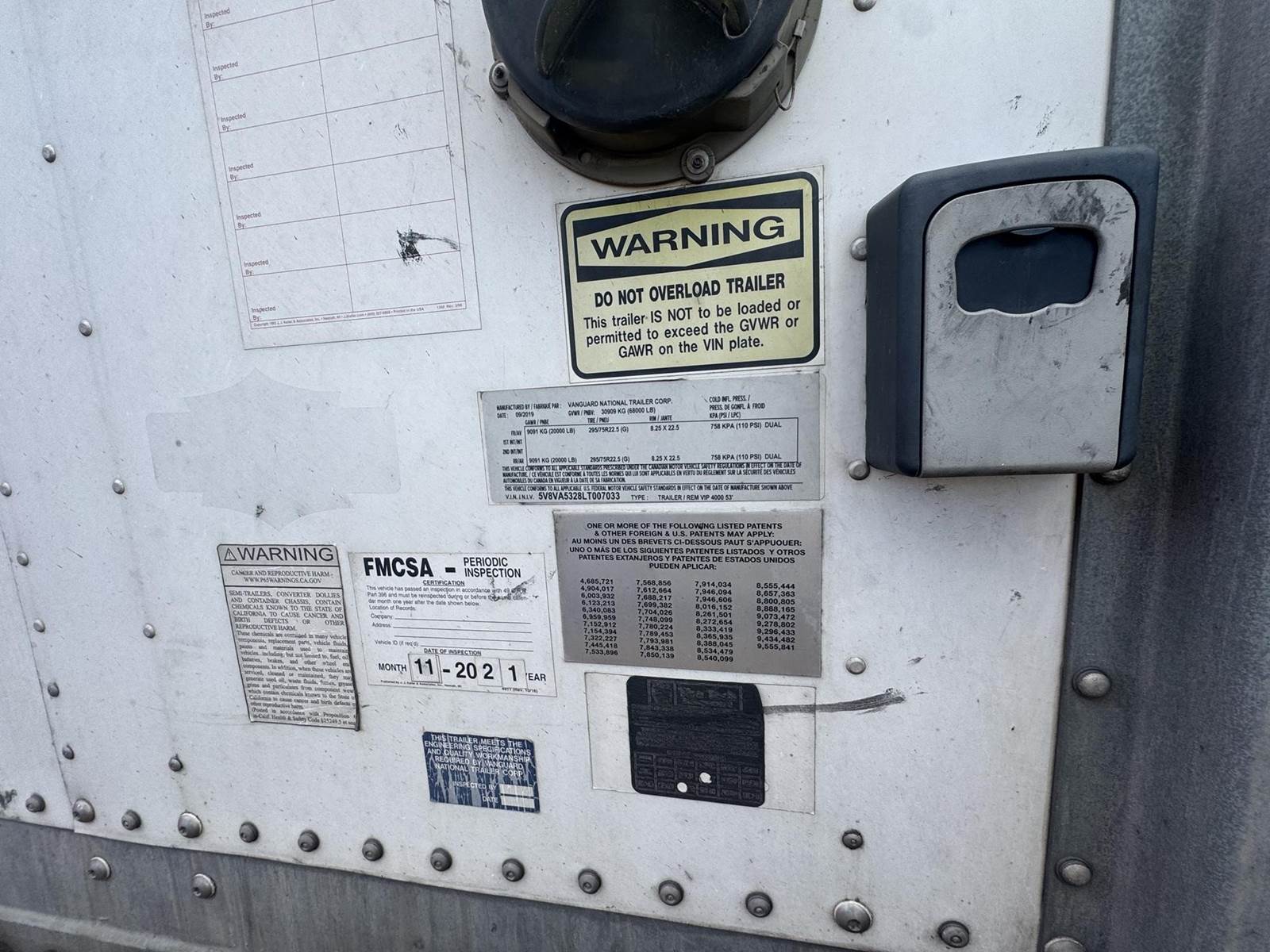 2020 Van Guard 53’ X 102: Dry Van Trailer– – $17,499
