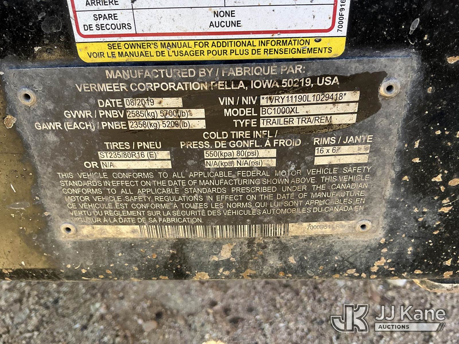 2020 Vermeer BC1000XL Chipper (12in Drum), Deutz diesel, (Runs) (Seller States: Needs Engine Replacement) (Reads 926 hours) This is a Titled Item NOTE: This unit is being sold AS IS/WHERE IS via Timed Auction and is located in Fort Lupton, CO. Inspection & preview days for this unit are the 2 business days prior to the first day of items closing for this auction, item is located at 2105 Northland Dr Fort Lupton, CO 80621 and hours of operations are 8a-4p. For pre-sale questions, please contact Dakota Hoffman @ (720) 621-0786. Dealer License Number 47109. (Buyer is responsible for removal. Assistance by consignor or JJ Kane Auctions is not assured.)
