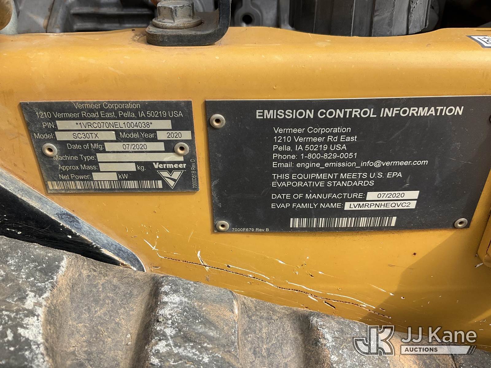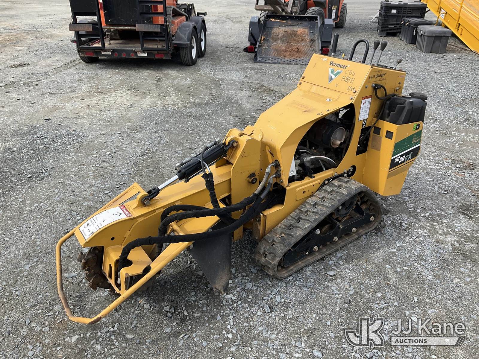2020 Vermeer SC30TX Walk-Behind Stump Grinder, s/n 1VRC070NEL1004038, Kohler gas, Hydrostatic, with carbide teeth, rubber tracks, support trailer 1581132, To Sell With 1581132 (Equipment and trailer price will be split out on invoice to reflect 80/20, equipment to trailer price ratio for tax purposes) (Runs, Moves & Operates ) (Reads 461 hours) NOTE: This unit is being sold AS IS/WHERE IS via Timed Auction and is located in China Grove, NC. Inspection & preview days for this unit are the 2 business days prior to the first day of items closing for this auction, item is located at 820 E NC Hwy 152 China Grove, NC 28023 and hours of operations are 8a-4p. For pre-sale questions, please contact Office Staff @ (704) 674-1113. (Buyer is responsible for removal. Assistance by consignor or JJ Kane Auctions is not assured.)