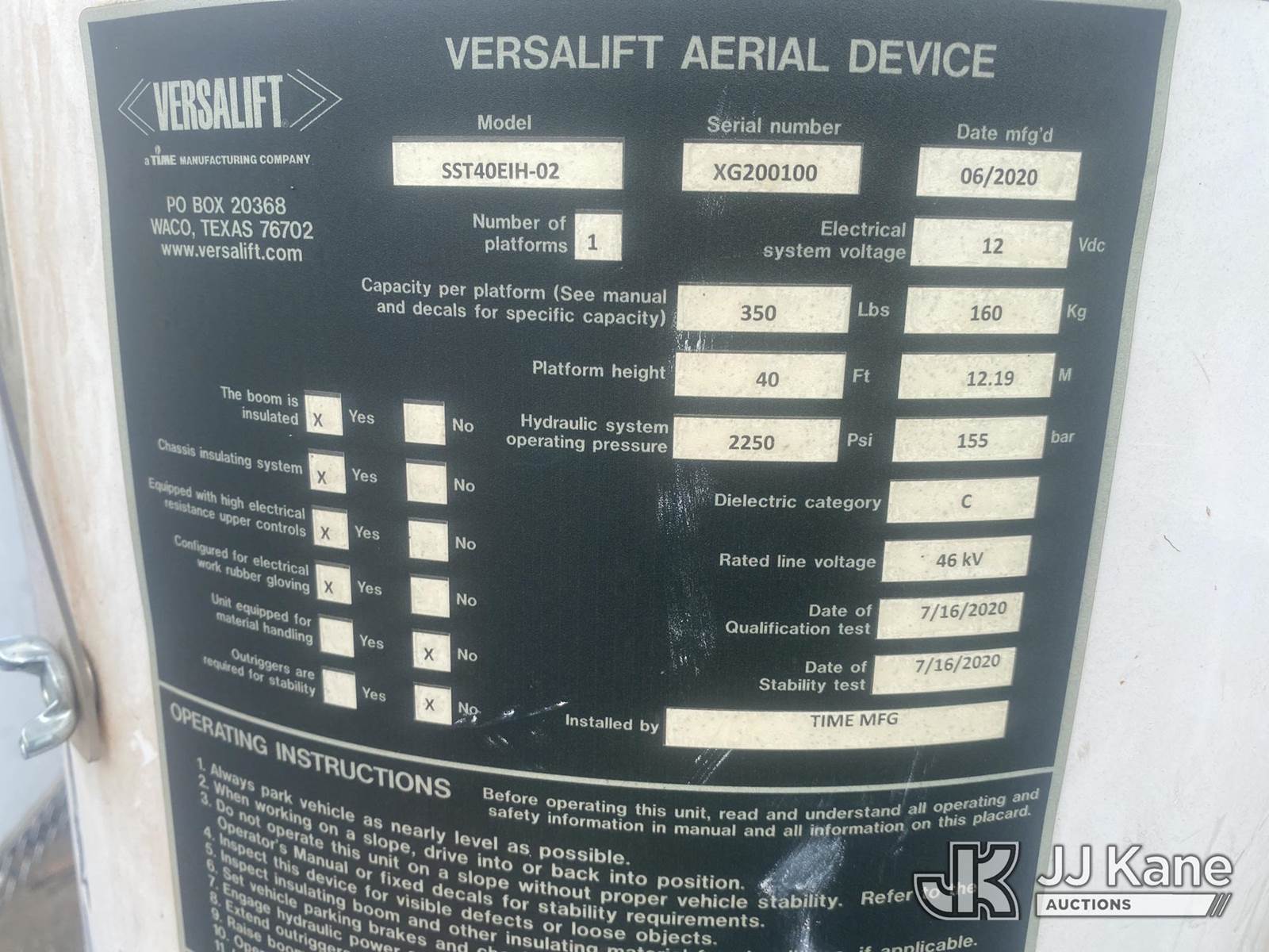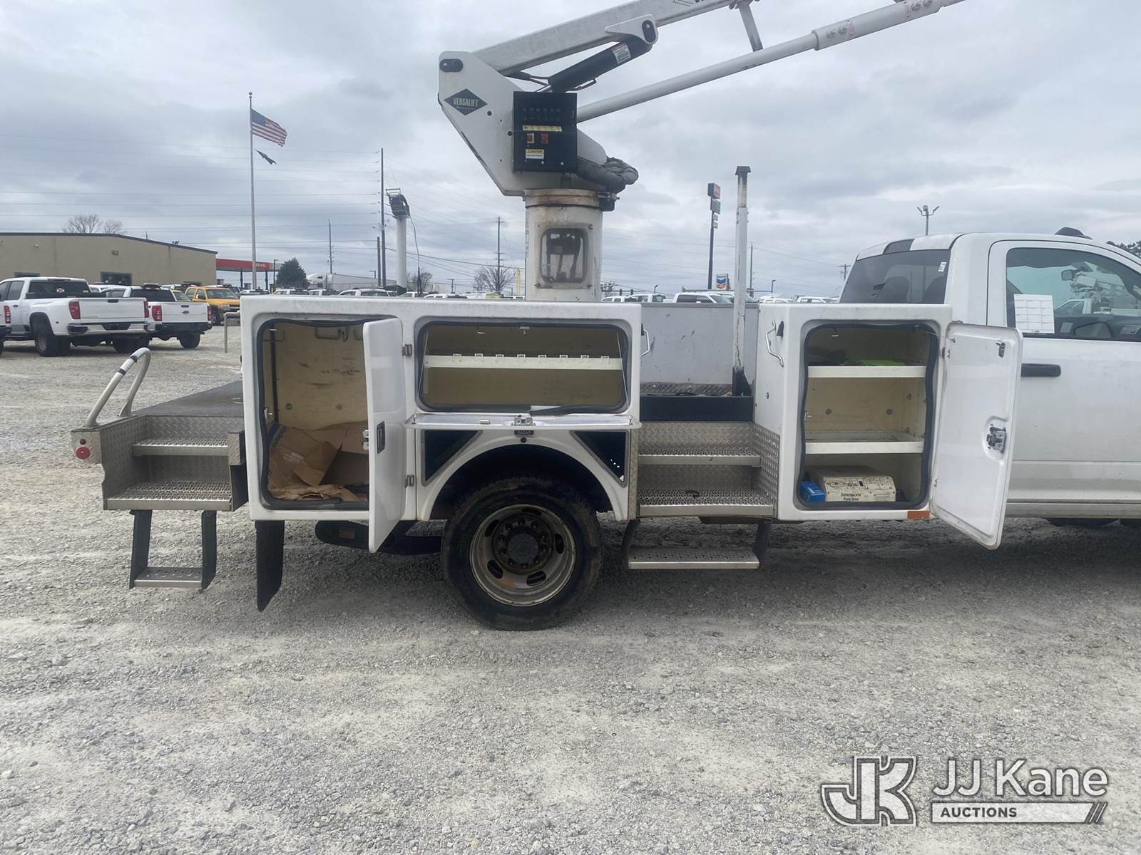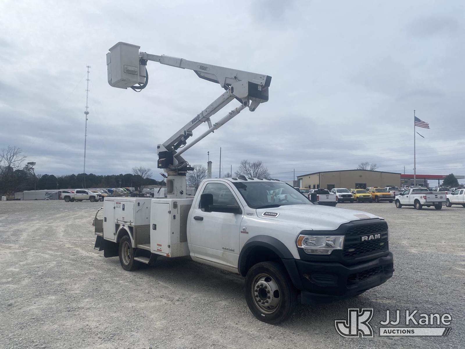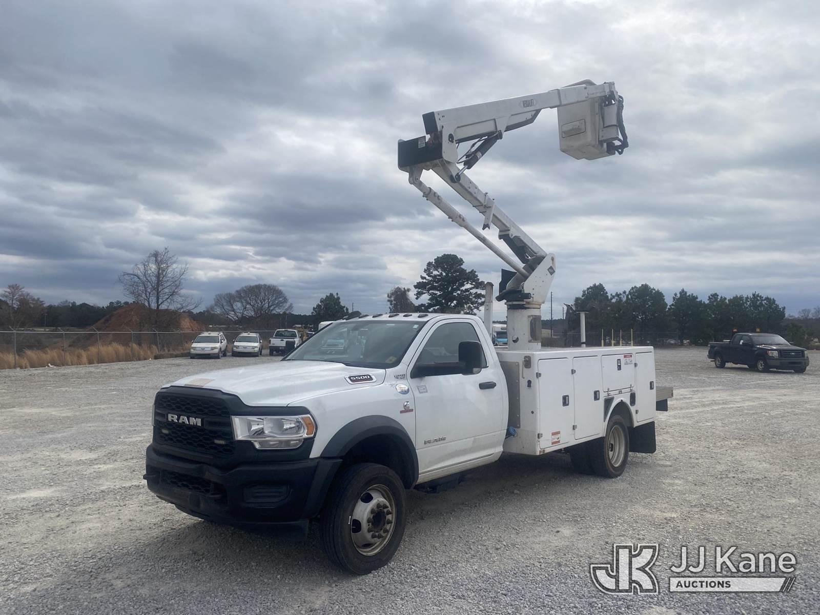 Versalift SST40EIH-02, 45 ft, Articulating & Telescopic Bucket Truck s/n XG200100, with single-man bucket, center mounted on 2020 RAM 5500 4x4 Service Truck, Cummins 6.7L diesel, Auto, A/C, (95,390 miles) (Runs, Moves & Upper Operates) (Front Bumper Damage) (Reads 5,165 hours) This is a Titled Item NOTE: This unit is being sold AS IS/WHERE IS via Timed Auction and is located in Villa Rica, GA. Inspection & preview days for this unit are the 2 business days prior to the first day of items closing for this auction, item is located at 100 Liberty Rd Villa Rica, GA 30180 and hours of operations are 8a-4p. For pre-sale questions, please contact Office Staff @ (470) 590-8453. (Missing manuals, See Auction Company for Manufacturers Information to obtain manuals) (Buyer is responsible for removal. Assistance by consignor or JJ Kane Auctions is not assured.)