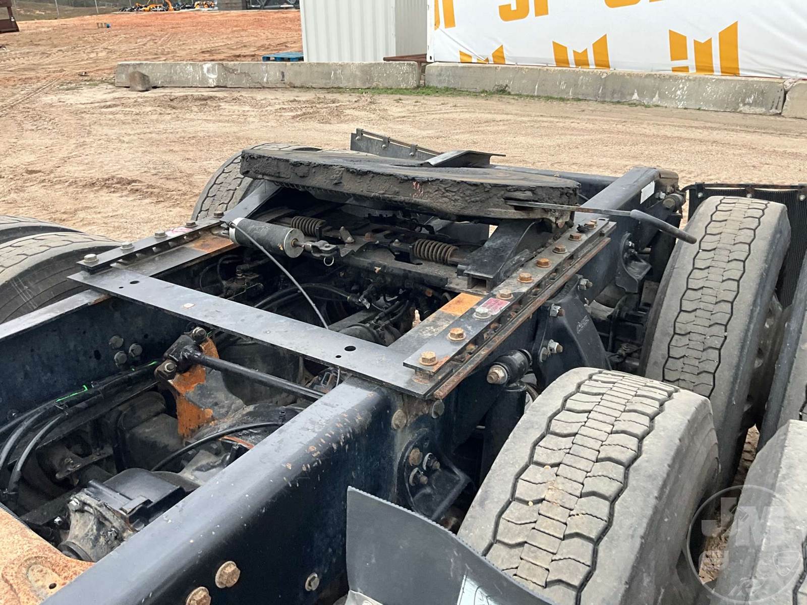 TANDEM AXLE DAY CAB TRUCK TRACTOR, DETROIT, DD13, 450 HP, EATON FULLER, AUTOMATIC, AIR RIDE SUSPENSION, DRUM, 196 " WB, C/A: 114", 12K FRONTS, 40K REARS, 52000 LBS GVWR, AIR SLIDE FIFTH WHEEL, A/C, DUAL AIR SEATS, CRUISE CONTROL, POWER WINDOWS, POWER MIRRORS, ENGINE BRAKE, DIFF LOCK, PTO, AIR RIDE CAB, ALUM DISC WHEELS, 295/75R22.5 TIRES, ODOMETER READS: 545308