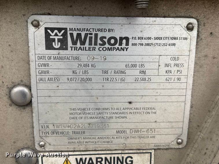 2020 Wilson DWH-651 grain trailer
