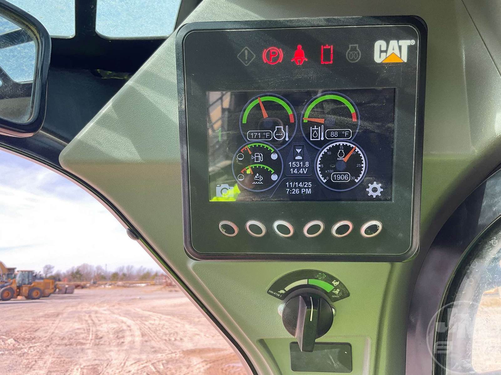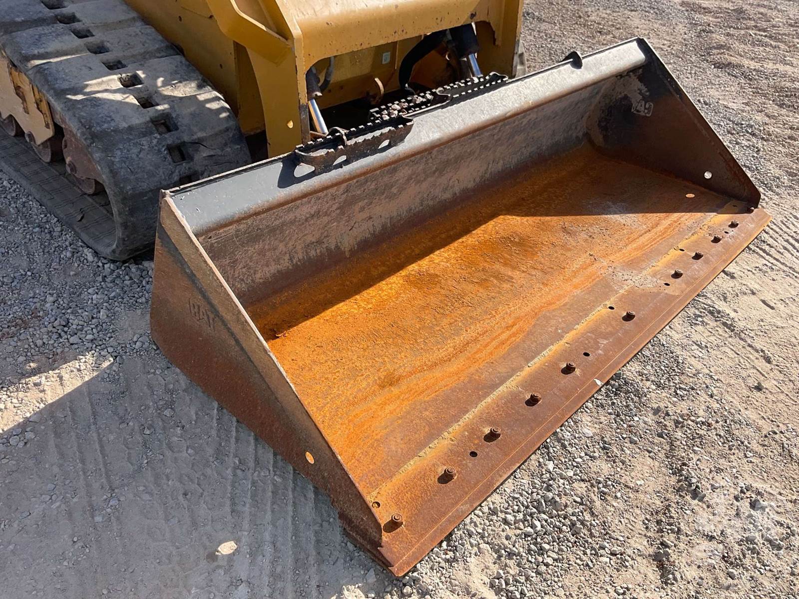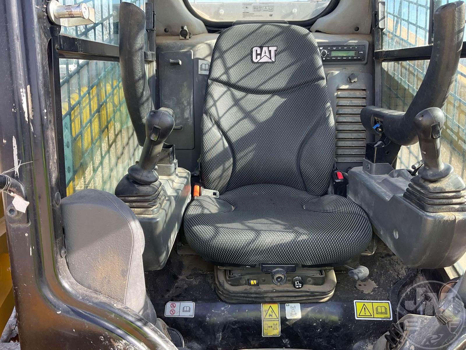 CATERPILLAR MULTI TERRAIN LOADER, CAB, AC, RADIO, REAR VIEW CAMERA, AUX HYDRAULICS, HYDRAULIC COUPLER, 2 SPEED, HAND CONTROLS, 84", SMOOTH BUCKET, 18", RUBBER TRACKS, CATERPILLAR, HOUR METER READS: 1531