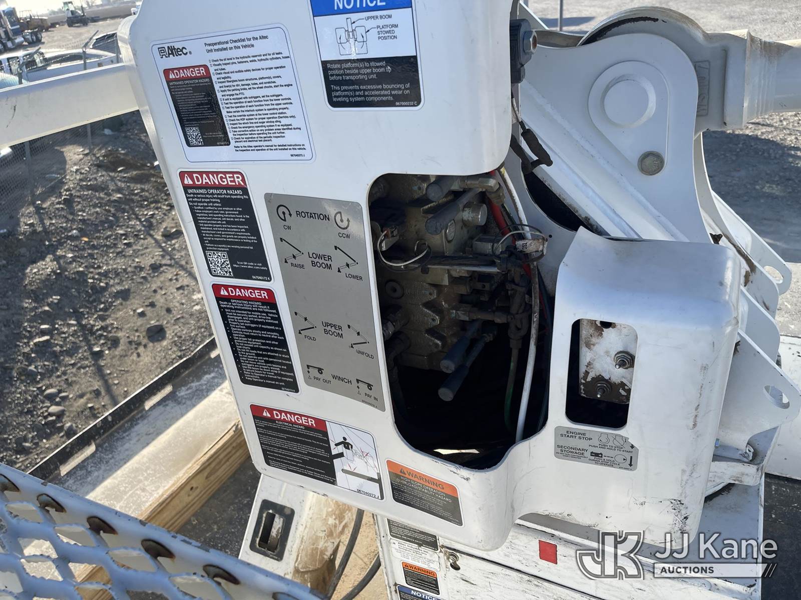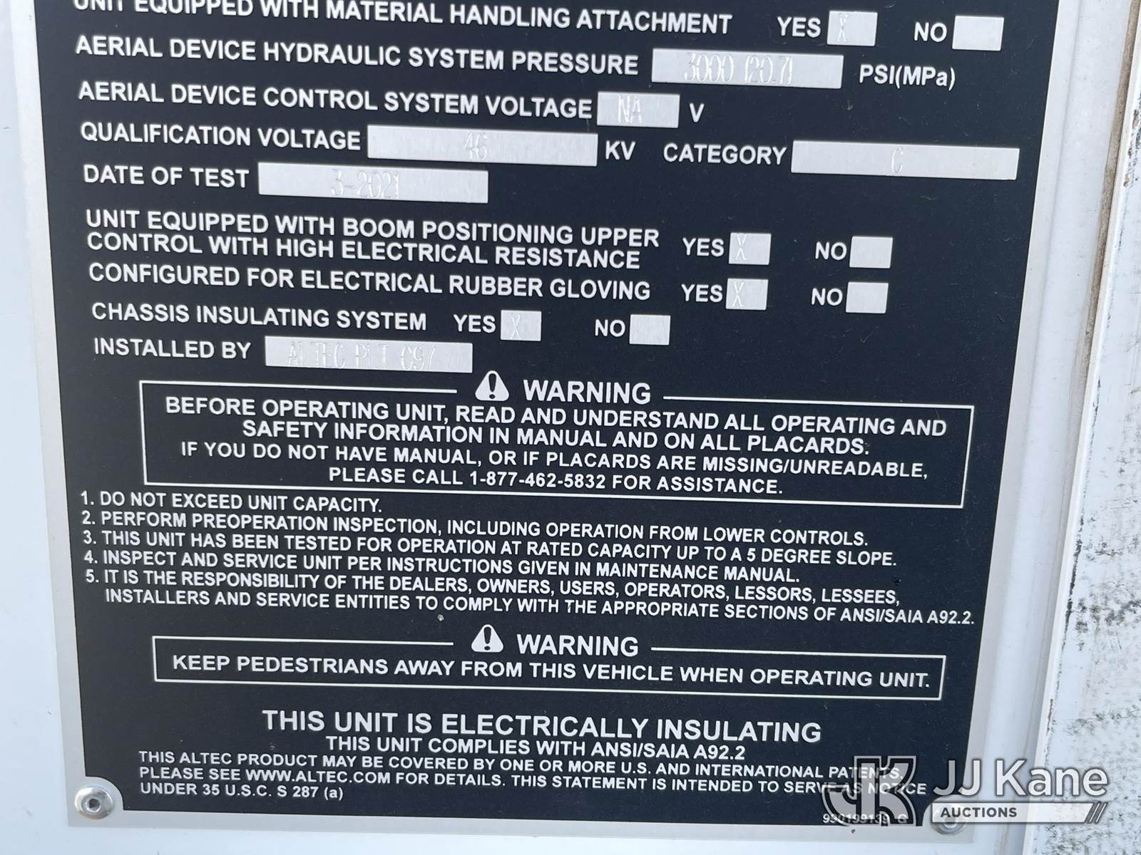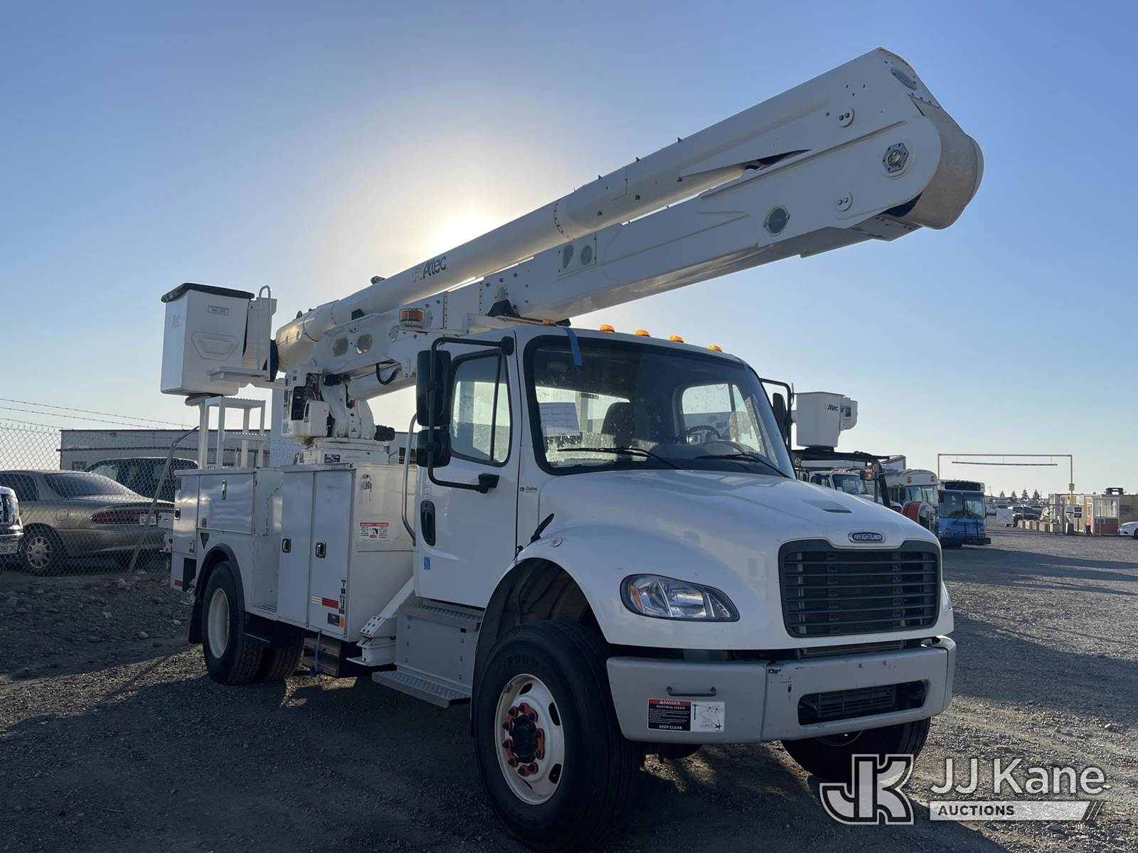 Altec AA55-MH, 59 ft, Articulating Material Handling Bucket Truck s/n 0121FH9783, with two man bucket, material handler, 4 hyd outriggers, rear mounted on 2021 Freightliner M2 106 Utility Truck, Cummins Auto, diesel, A/C, (55,320 miles) (Runs, Does Not Move, Upper Operates) (Drive Shaft Disconnected, Fan/Pulley/Belt Removed, Check Engine Light On) (Bidding Restricted to Licensed Vehicle Dealers Only), May be subject to ARB Regulations This is a Titled Item NOTE: This unit is being sold AS IS/WHERE IS via Timed Auction and is located in Dixon, CA. Inspection & preview days for this unit are the 2 business days prior to the first day of items closing for this auction, item is located at 8668 Sparling Ln Dixon, CA 95620 and hours of operations are 8a-4p. For pre-sale questions, please contact JJ Kane Staff at (707) 678-8060 (dixon@jjkane.com). Dealer License Number 45696. (Manuals provided in cab) (Buyer is responsible for removal. Assistance by consignor or JJ Kane Auctioneers is not assured.)