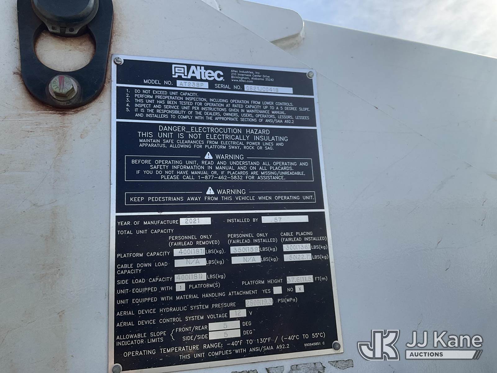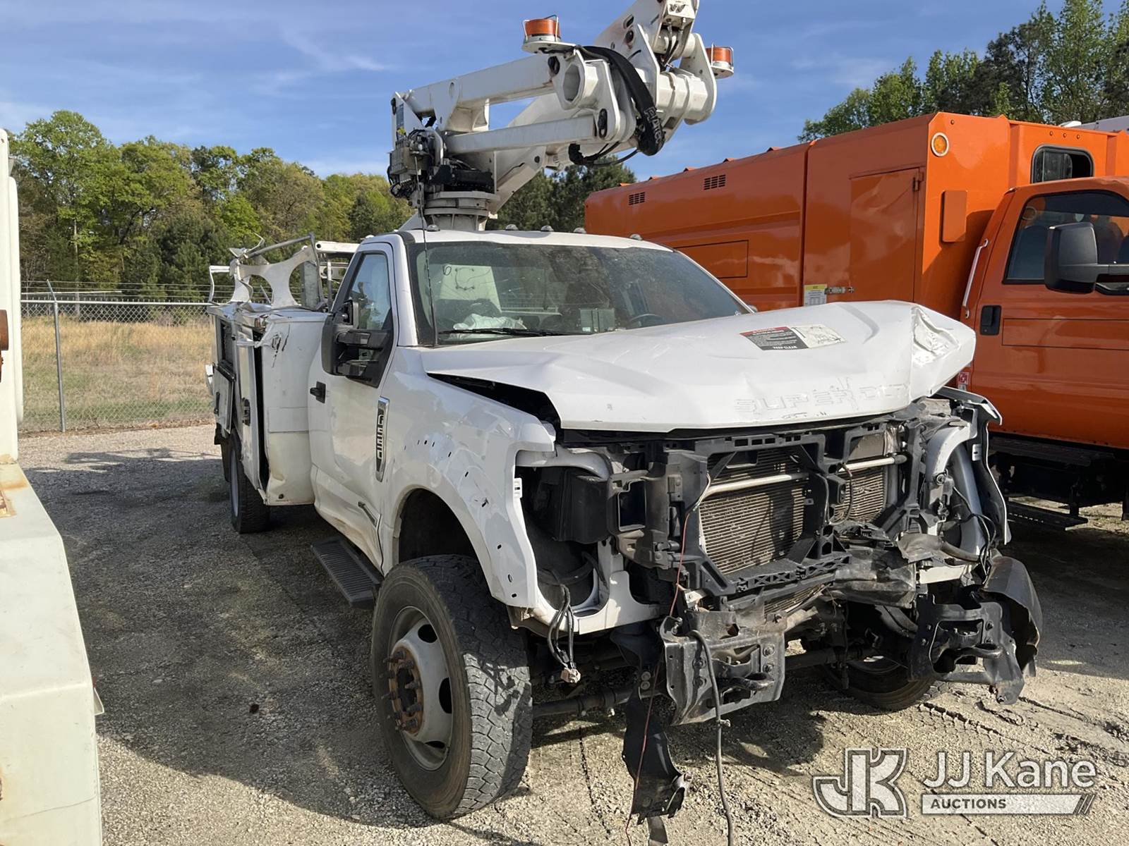Altec AT238-P, 42 ft, Telescopic Cable Placing Bucket Truck s/n 0821JC0418, with single-man basket, mounted behind cab on 2021 Ford F-550 Regular Cab DRW 4WD Service Truck, 6.7L V8 OHV 16V DIESEL Auto, A/C, True Mileage Unknown (**Dealer Only** (Not Running, Chassis Condition Unknown, Airbags Deployed, Windshield Cracked, Hood Does Not Open)(Upper Condition Unknown, **Note** This item has been removed from service due to the listed safety repairs that were not completed. The safety items below must be completed by an approved upper OEM facility before the unit can return to service: UNIT WRECKED; REQUIRES MAJOR UNIT DAMAGE INSPECTION; COMPLETE ANY REQUIRED TESTING AND REPAIRS AFTER INSPECTIONS ARE COMPLETED.) (Bidding Restricted to Licensed Vehicle Dealers Only), This is a Titled Item NOTE: This unit is being sold AS IS/WHERE IS via Timed Auction and is located in Chester, VA. Inspection & preview days for this unit are the 2 business days prior to the first day of items closing for this auction, item is located at 13301 Great Coastal Dr Chester, VA 23836 and hours of operations are 7am-3pm. For pre-sale questions, please contact Doug Caton @ 804-807-4574. (Missing manuals, See Auction Company for Manufacturers Information to obtain manuals) (Buyer is responsible for removal. Assistance by consignor or JJ Kane Auctions is not assured.)