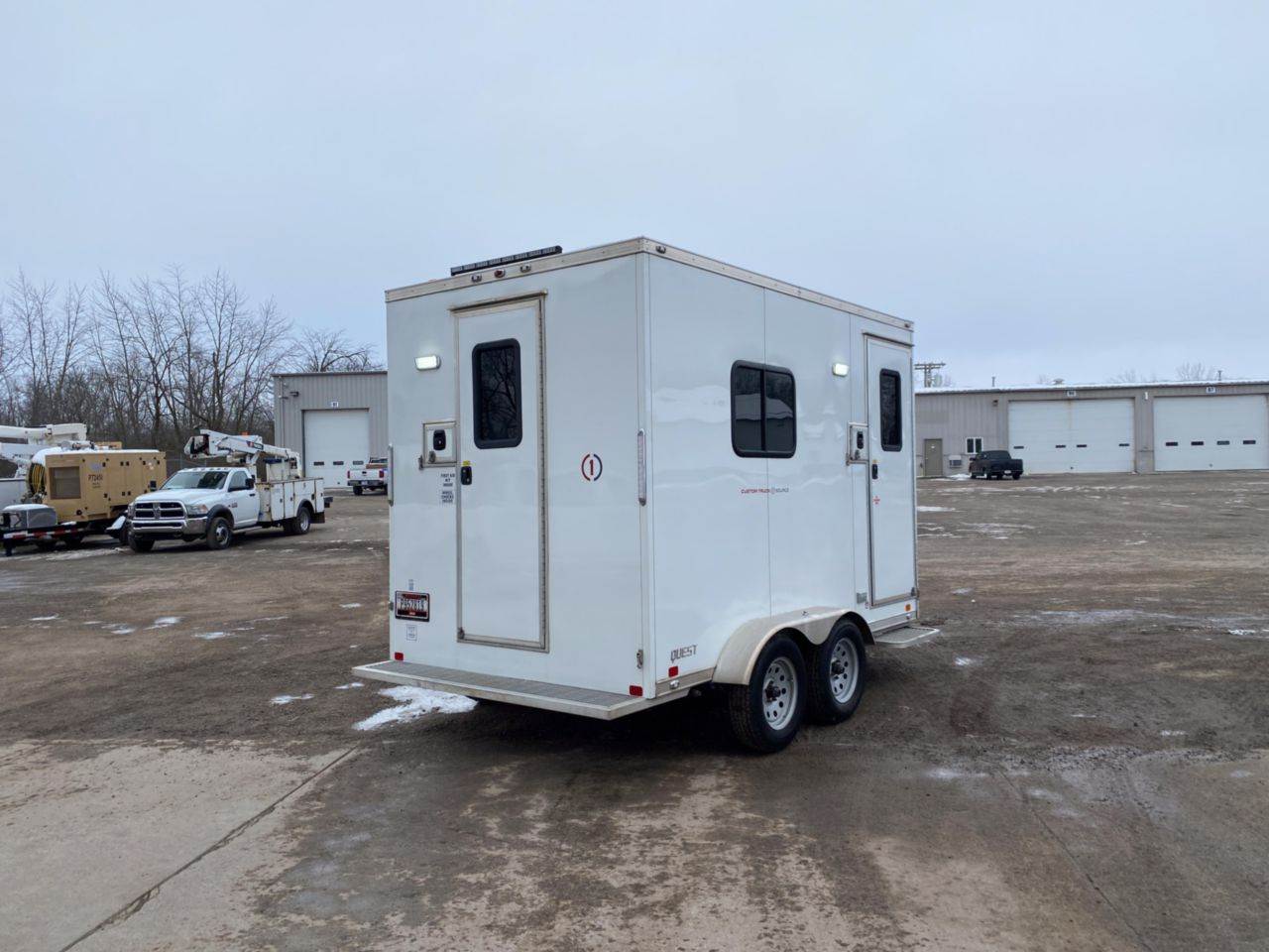 ATC 7X12 Cable Splicing Trailer, 7,700 L.B. GVWR, 4 Wheel Electric Brakes, 2'5/16" Trailer Ball, Cummins Gas Powered Generator, 2-28" Entrance Doors W/Slam Latch and Tinted Windows, 2-16" Access Doors W/Brush Seals, Manual Roof Vent W/Cover, Screwless Aluminum Walls and Ceiling Package, Standard Fiber Optic Cabinet Package. Black Laminate Countertops. Unit sold as-is where-is in Bluffton IN. Inspection completed by a non-bias, qualified, 3rd party. Additional findings, videos, and photos can be found on the circle inspection icon below. Financing and transportation available