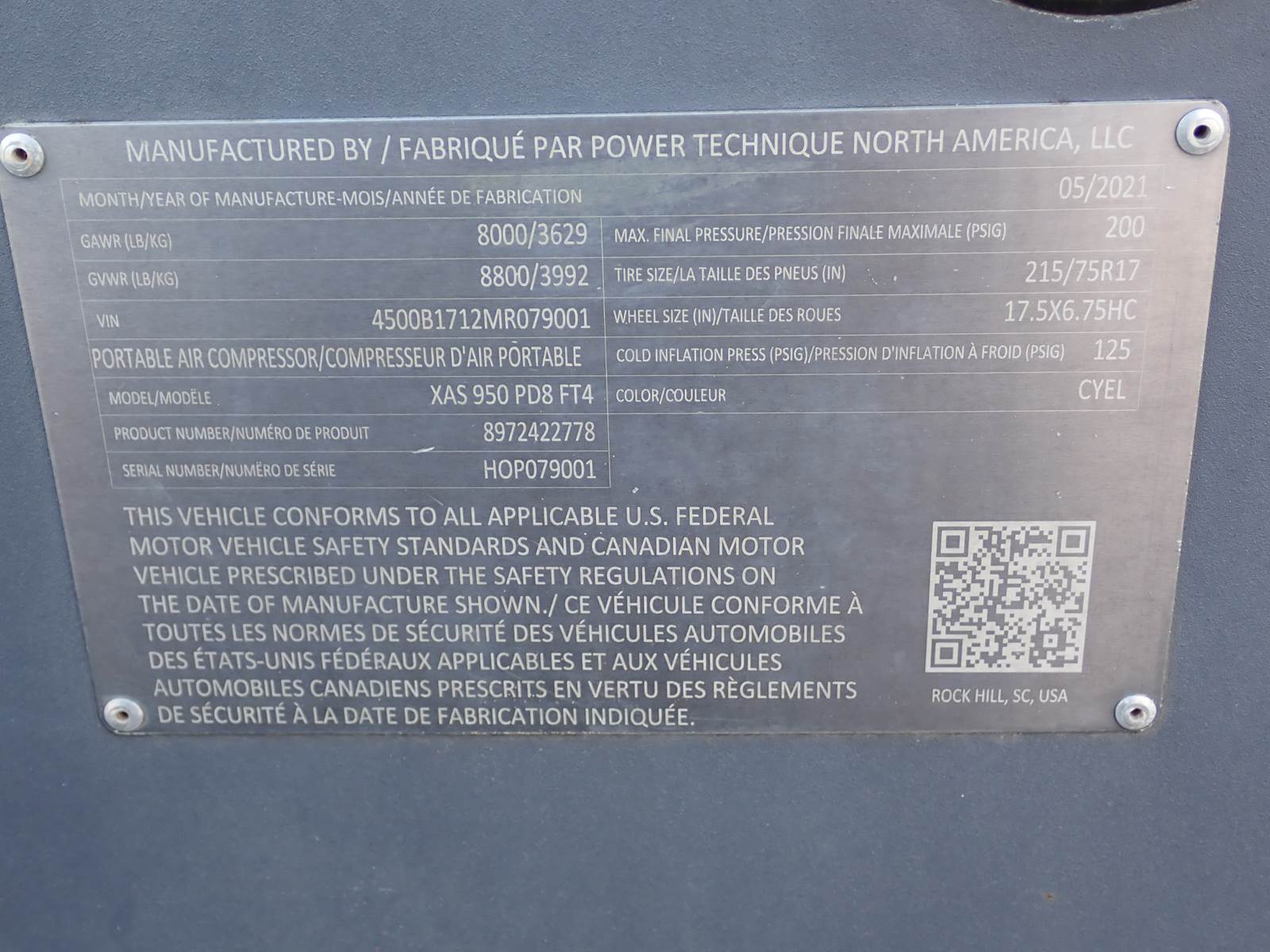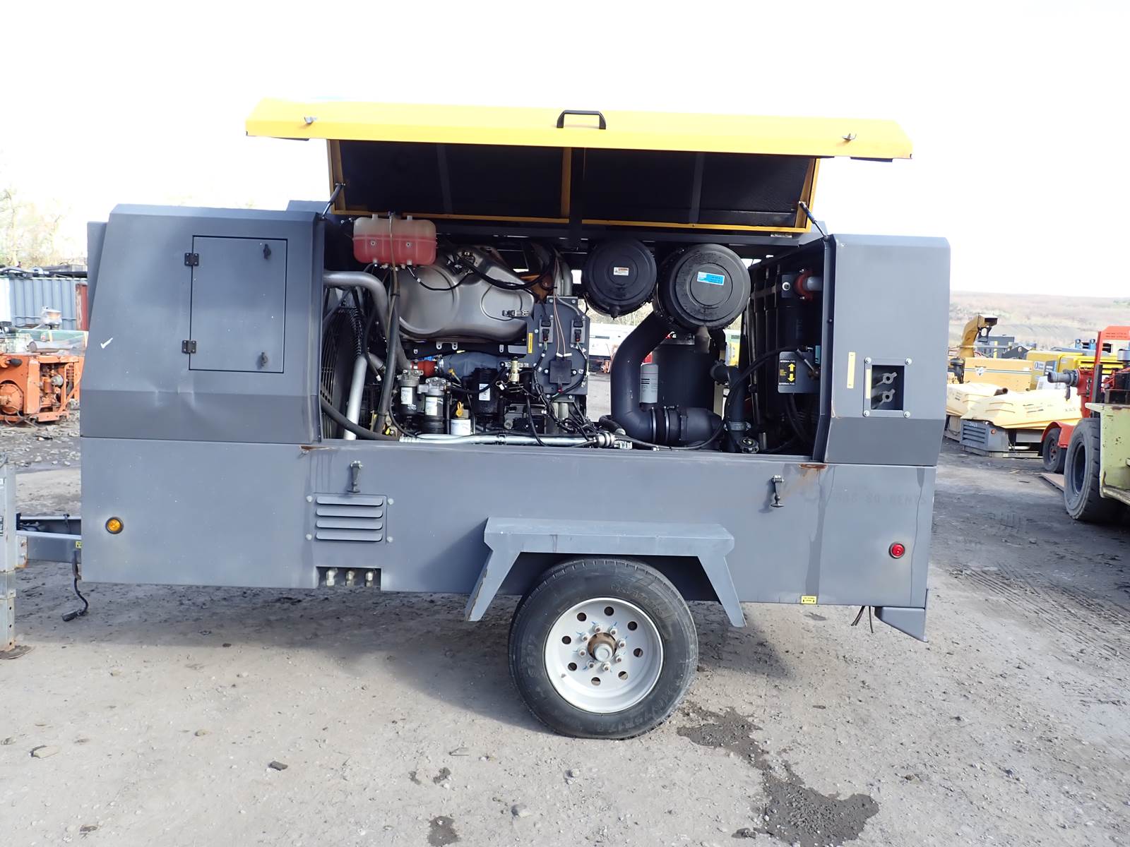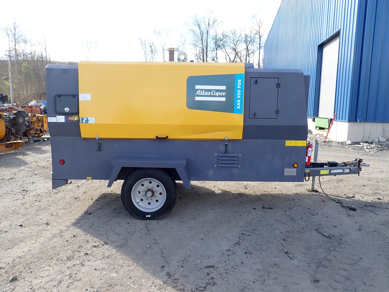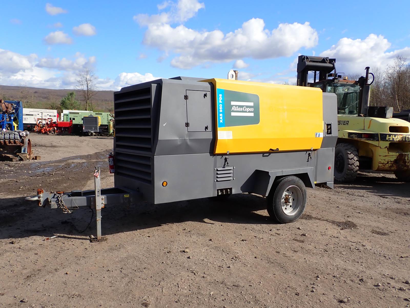2021 Atlas Copco XAS950 PD8 FT4 air compressor, CAT C7.1/Perkins 1206F turbo diesel engine, 1221 hours, trailer mounted, towable, standard and aftercooled/instrument quality air circuits, 4 air outlets, selectable pressure settings, RENTAL FLEET MAINTAINED, FULLY OPERATIONAL AND IN EXCELLENT RUNNING CONDITION. COMPRESSOR IS RATED 950 CFM AT 100 PSI, 900 CFM AT 150 PSI AND 750 CFM AT 200 PSI -- EXTREMELY VERSATILE UNIT AT ANY PRESSURE SETTING YOU NEED! EXTREMELY NICE COMPRESSOR HERE -- WILL DO ANY JOB YOU NEED -- TIER 4 COMPLIANT FOR THOSE JOBS THAT REQUIRE IT, SLICK PACKAGE, SINGLE AXLE TRAILER FOR EASY TOWING -- DON'T MISS THIS ONE !!