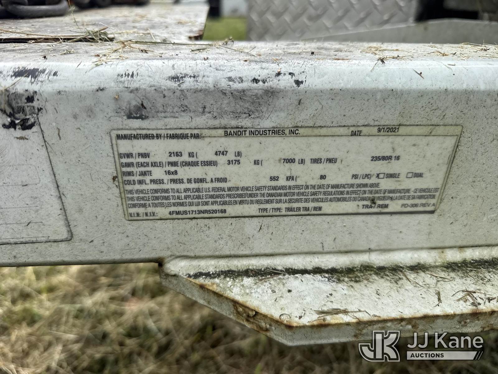 2021 Bandit 200UC Chipper (12in Disc), s/n 4FMUS1713NR520168, gas (No Title) (Not Running, Condition Unknown, Body Damage) (Buyer Must Load) NOTE: This unit is being sold AS IS/WHERE IS via Timed Auction and is located in Wakefield, VA. For more information & removal arrangements please contact Kyle Hayes @ 804-895-5391. (Buyer is responsible for removal. Assistance by consignor or JJ Kane Auctioneers is not assured.)