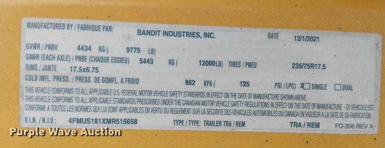 2021 Bandit Intimidator 18XP wood chipper