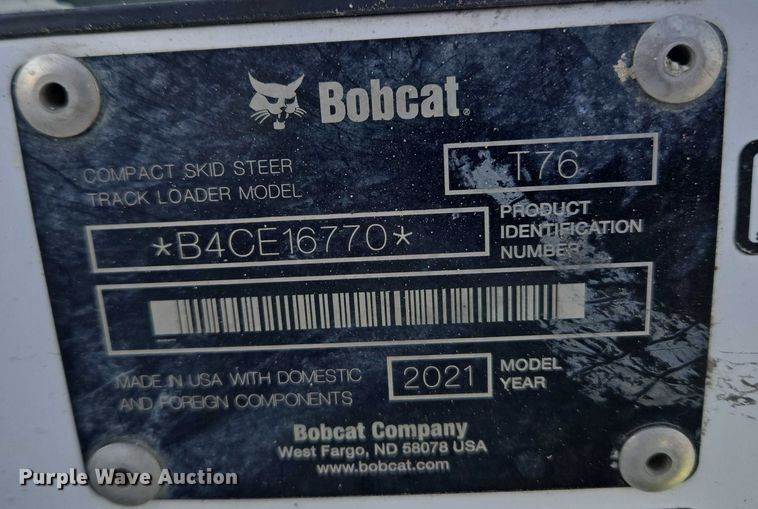 2021 Bobcat T76 tracked skid steer loader